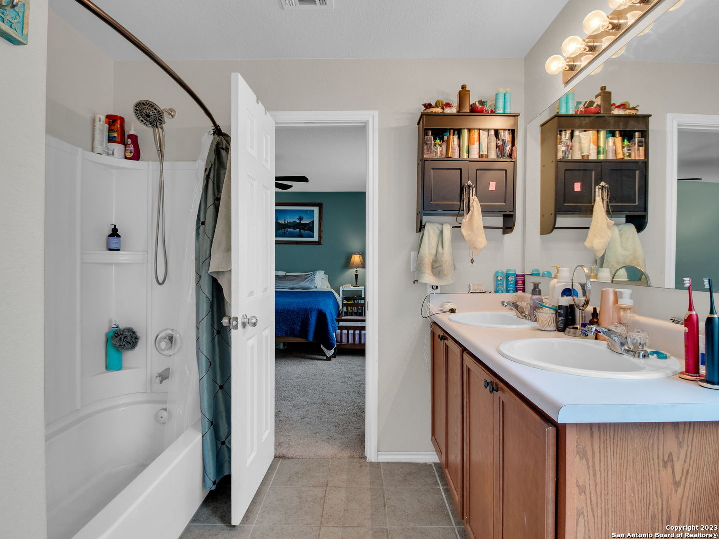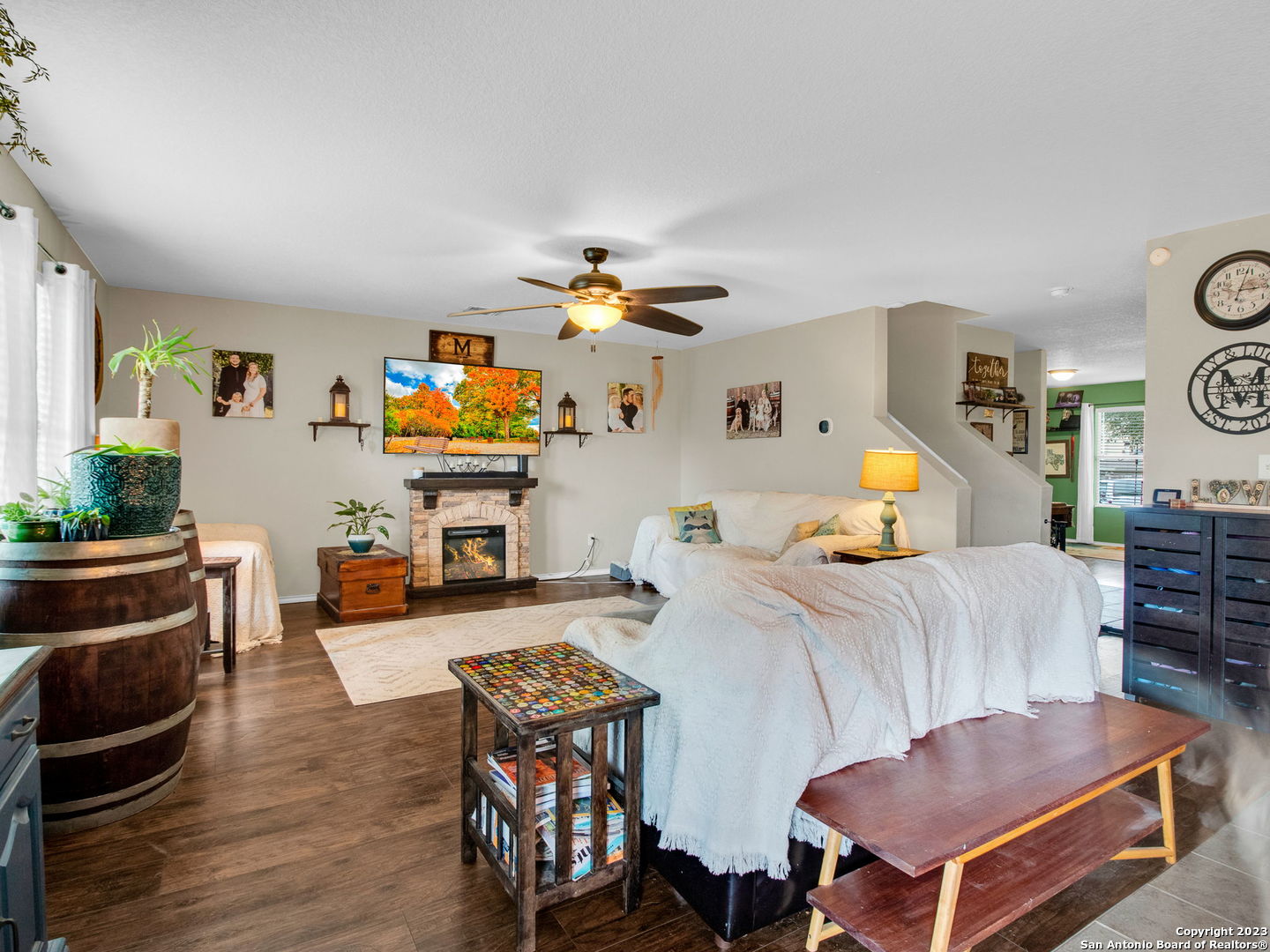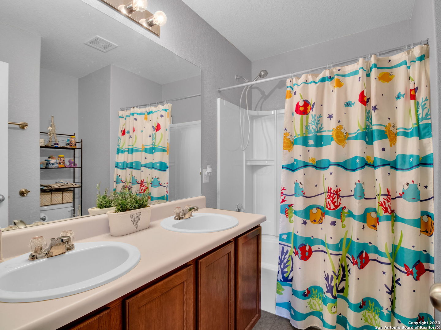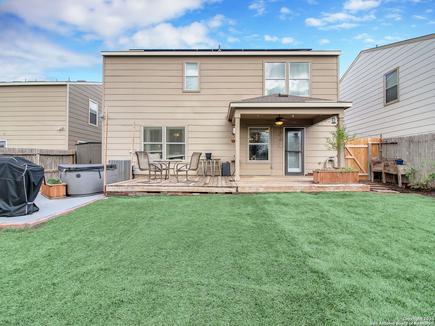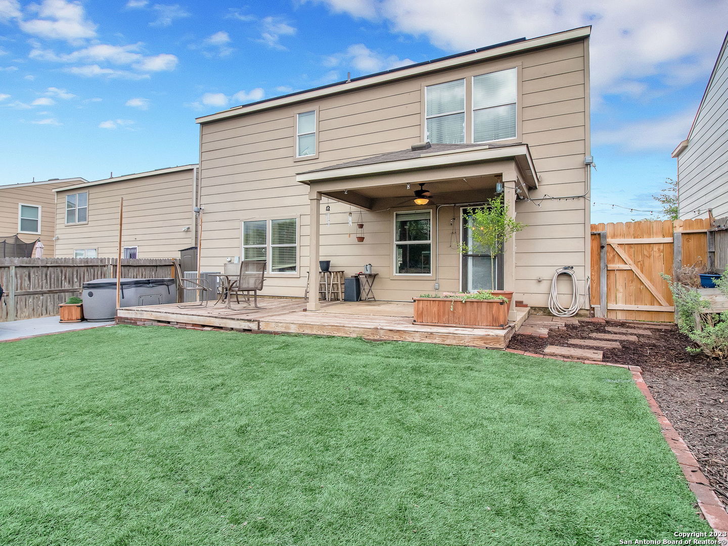 Agents please verify all measurements.*** Buyer will need to pay for the new Survey. ****OPEN HOUSE 7/8 1-4pm ****BEAUTIFUL 2 STORY HOME IN FAST GROWING AREA OF SAN ANTONIO * FLOOR PLAN OFFERS A GREAT OPEN AREA BETWEEN ISLAND KITCHEN, DINING & LIVING ROOM* ALL APPLIANCES CONVEY WITH KITCHEN * GAMEROOM & ALL BEDROOMS UPSTAIRS * LARGE MASTER BEDROOM FEATURES FULL BATH WITH DOUBLE VANITY & OPEN CLOSET * SPACIOUS SECONDARY BEDROOMS * WATER SOFTNER, WINDOW BLINDS, REFRIGERATOR AND OUTSIDE SHED CONVEY WITH THE PROPERTY *GREAT BACKYARD WITH COVERED PATIO, LOCATED CLOSE TO LOOP 1604, HWY 90, LACKLAND AFB, GREAT SHOPPING & SWISD SCHOOLS. GREEN BELT! BEAUTIFUL COMMUNITY POOL/PLAYGROUND. All upgrades in additional documents. UPGRADES: A/C THERMOSTAT (2019) LIGHT FIXTURES INSIDE AND OUT, NEW COUNTERTOPS(2022) NEW KITCHEN SINK(2022), NEW DISHWASHER(2022)NEW OUTDOOR ELECTRICAL(2022),CEMENT PAD(2022),TURFF IN BACKYARD(2022) HARD WOOD FLOORING DOWNSTAIRS(2021), BACK STORM DOOR(2021), ARBOR(2021), WOODEN DECK(2020) ALL FANS REPLACED (2020), AC UNITED MAINTAINED, SOLAR INSTALLED (2019), WIRED FOR ADT+AT&T