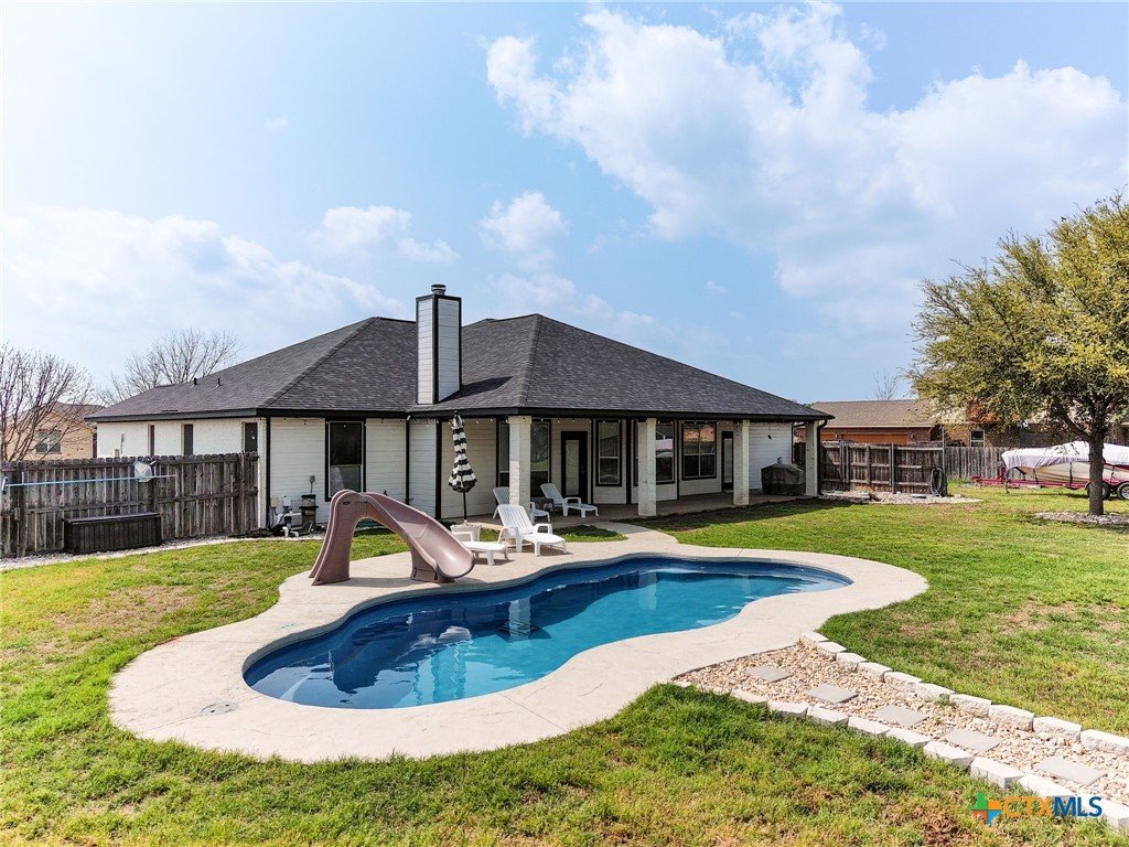 This home is equipped with an 2.99% interest rate Assumable loan. Imagine having a cool drink while you relax and sunbathe beside your stunning inground pool. This is what your summer days will look like in this beautiful Texas gem! This home welcomes you from the moment you enter as you step upon pristine vinyl plank flooring and are greeted by a glance into a picturesque dining room illuminated by an abundance of natural light. Continuing on, you can appreciate the open floorplan setting perfectly creating an ambiance designed for entertaining the masses. To the left you will find the premiere suite which encompasses the entire left wing of this abode and also grants you access to the house-length covered patio. The expansive en-suite features a spa-like whirlpool tub and a separate shower. Across the estate you’ll find three secondary bedrooms with one that is more set aside that can create an atmosphere ideal for a home office. Need room for an RV or boat? The extended gate will allow for easy access for storing and movement. With NO HOA and minutes from Fort Cavazos, convenience is paramount, Welcome to 3911 Walden Creek Xing, book your tour today!!