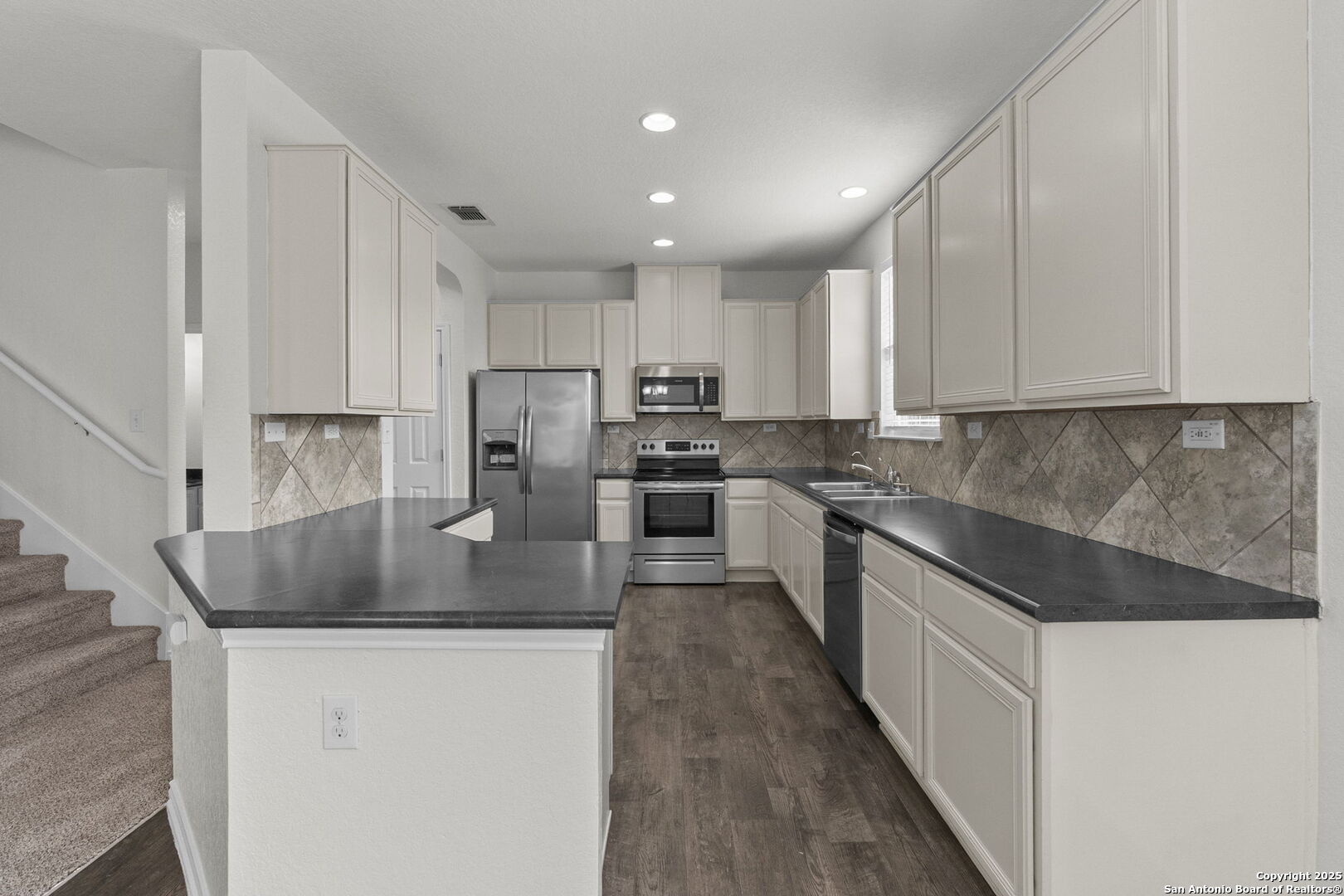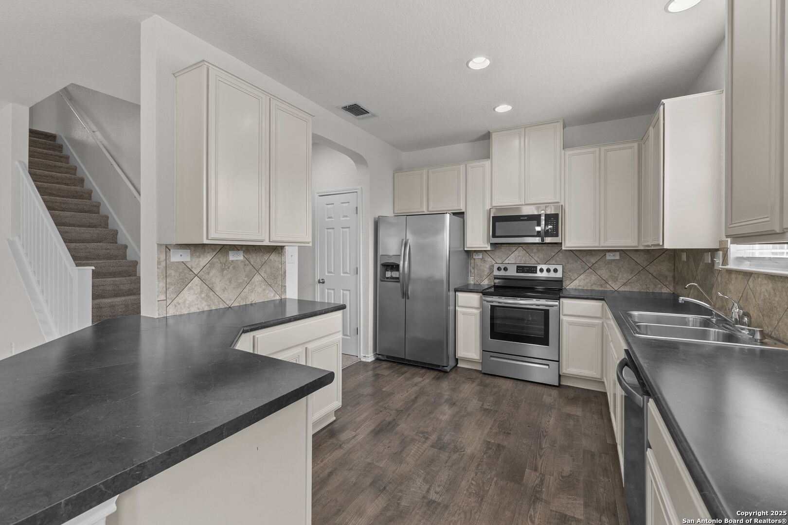 Welcome to this beautifully maintained 3 bedroom, 2.5 bathroom home in New Braunfels, just south of I-35, offering both convenience and comfort. From the moment you arrive, you'll appreciate the charming brick exterior, spacious driveway, and inviting curb appeal. Step inside to a bright and open floor plan designed for both everyday living and entertaining. The main level features a generous living area filled with natural light, seamlessly connecting to the dining room and kitchen. The kitchen is the heart of the home, complete with stainless steel appliances, ample cabinet space, sleek countertops, and a breakfast bar. A half bath downstairs adds convenience for guests. All bedrooms are thoughtfully located upstairs for privacy. The spacious primary suite feels like a true retreat, featuring a large walk-in closet and an ensuite bath with dual sinks. Two additional bedrooms and a full bathroom provide plenty of space for family, guests, or even a home office. Out back, you'll love the covered patio overlooking the fully fenced yard, perfect for simply unwinding after a long day. With mature trees in the front yard and a private backyard, this home provides both charm and functionality. Ideally located in New Braunfels near schools, shopping, dining, and with quick access to I-35, you'll enjoy the best of small-town charm with an easy commute to San Antonio or Austin. This move-in ready home has been well cared for and is ready for its next owner. Don't miss your chance to make it yours!