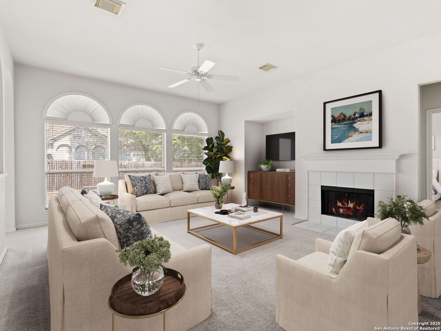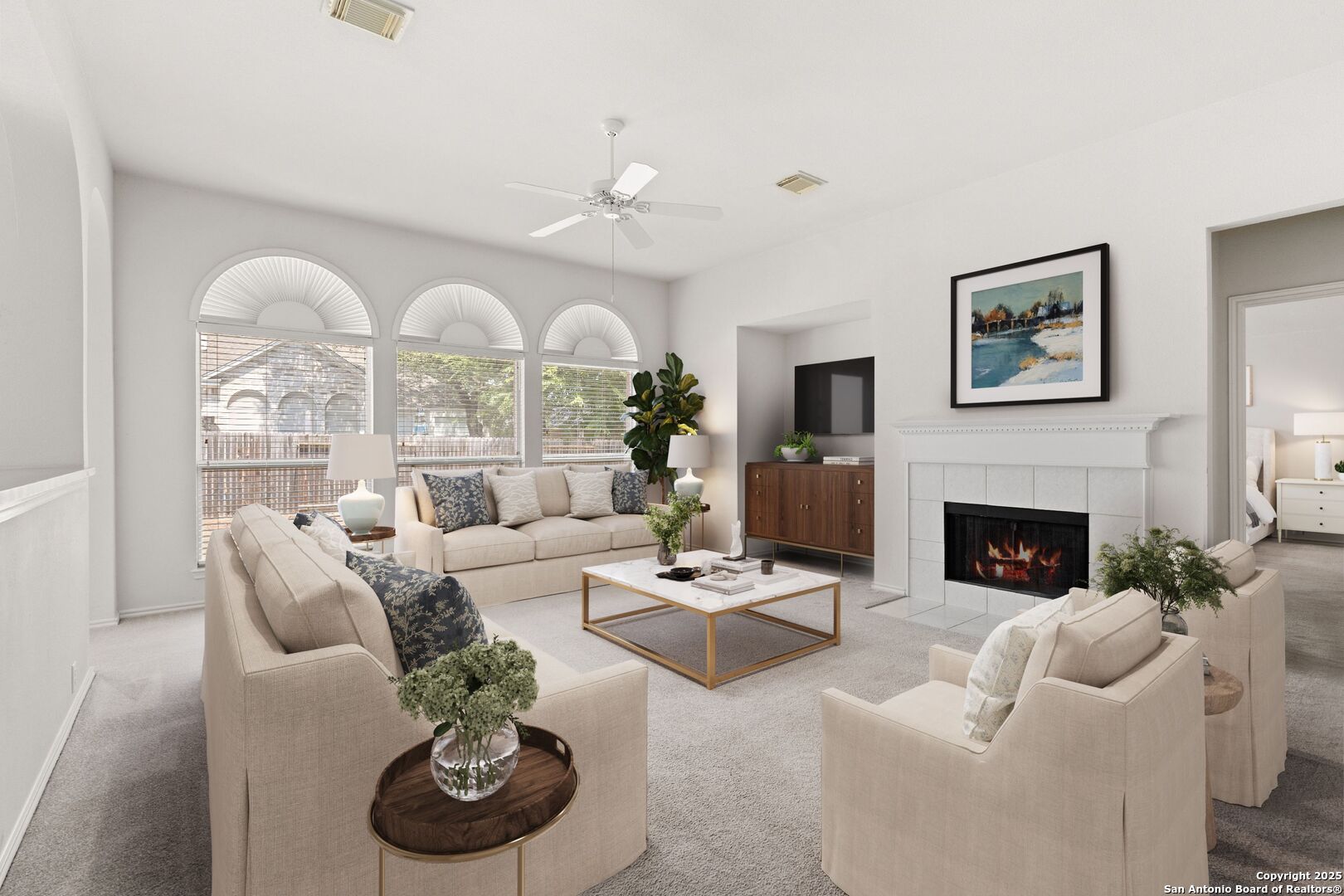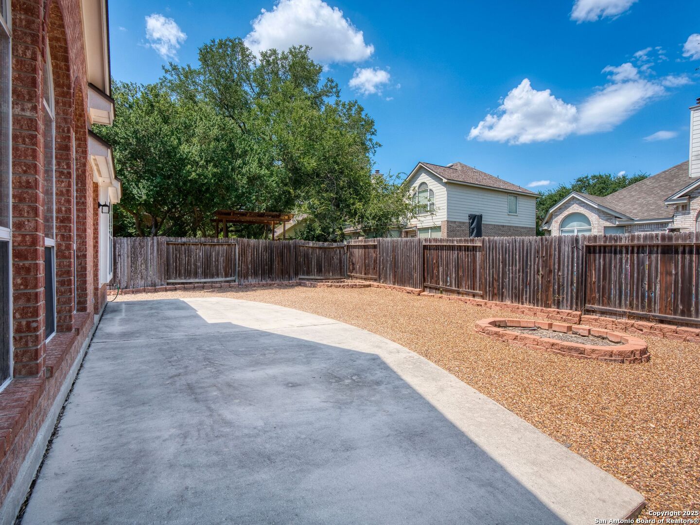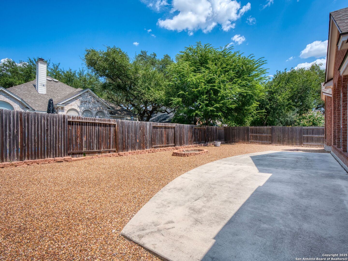 Meticulously maintained and move-in ready, this inviting single-story home sits on a beautifully landscaped lot with full xeriscaping for easy upkeep and year-round curb appeal. A classic brick exterior and charming covered porch set the tone for the well-cared-for interior, where abundant natural light fills each space and thoughtful details add a touch of warmth throughout. Inside, the open and airy layout features elegant arched transitions, high ceilings, and classic trim details. The spacious living room centers around a cozy fireplace and overlooks the private backyard, while the adjoining dining area is ideal for gatherings. The bright kitchen offers ample cabinet storage, solid-surface counters, a breakfast bar, and a casual dining nook with backyard views. The large primary suite provides a peaceful retreat with a vaulted ceiling and sitting area, along with a spa-style bath featuring dual vanities, a soaking tub, and a separate shower. Two additional bedrooms and a full bath complete the home's comfortable design, offering flexibility for guests, family, or a home office. This home has been exceptionally cared for, with thoughtful updates that include a new dishwasher (2025), new air conditioner (2024), new water heater (2021), and a new roof (2018)-providing peace of mind for years to come. Outside, the backyard is fully xeriscaped for effortless maintenance, creating a serene setting with a patio and fire pit area-perfect for relaxing evenings or weekend entertaining. Every inch of this property reflects care and pride of ownership, inside and out. Conveniently located near Randolph AFB, I-35, and excellent Schertz-Cibolo schools, this home offers the ideal combination of easy living and timeless appeal-all within minutes of shopping, dining, and parks.