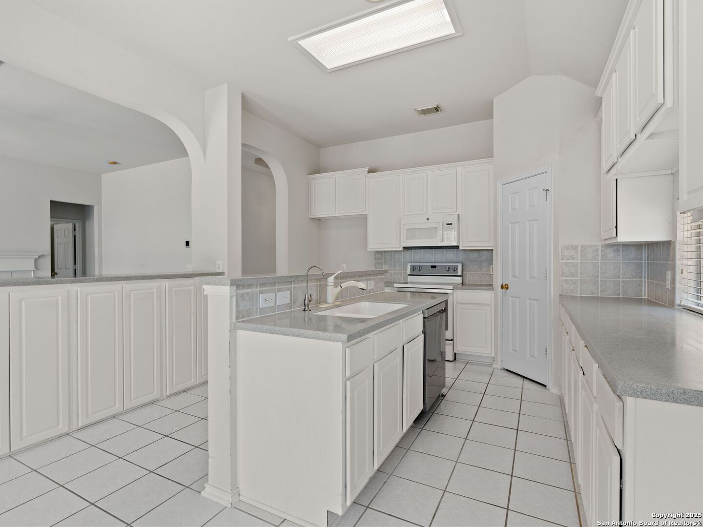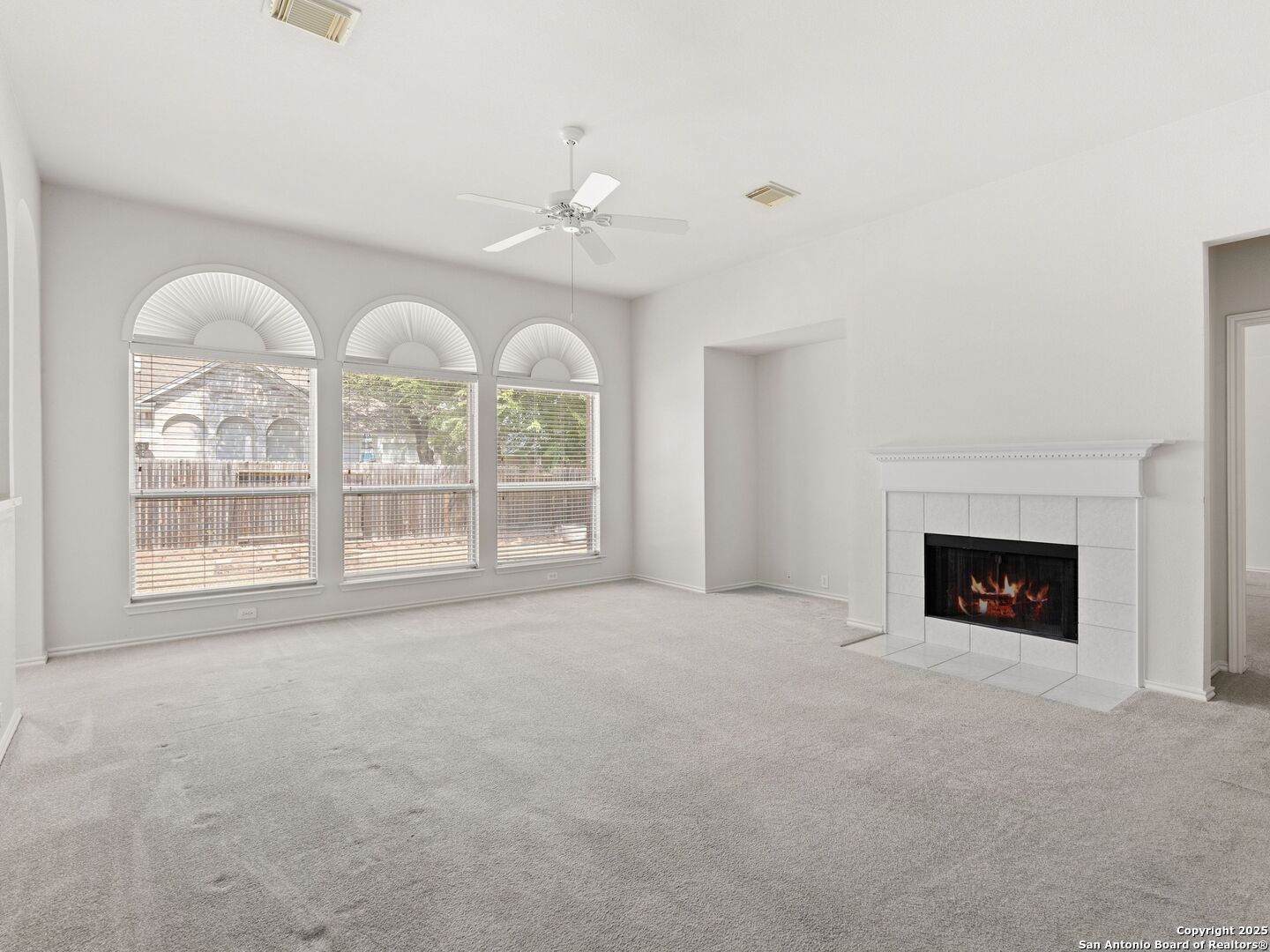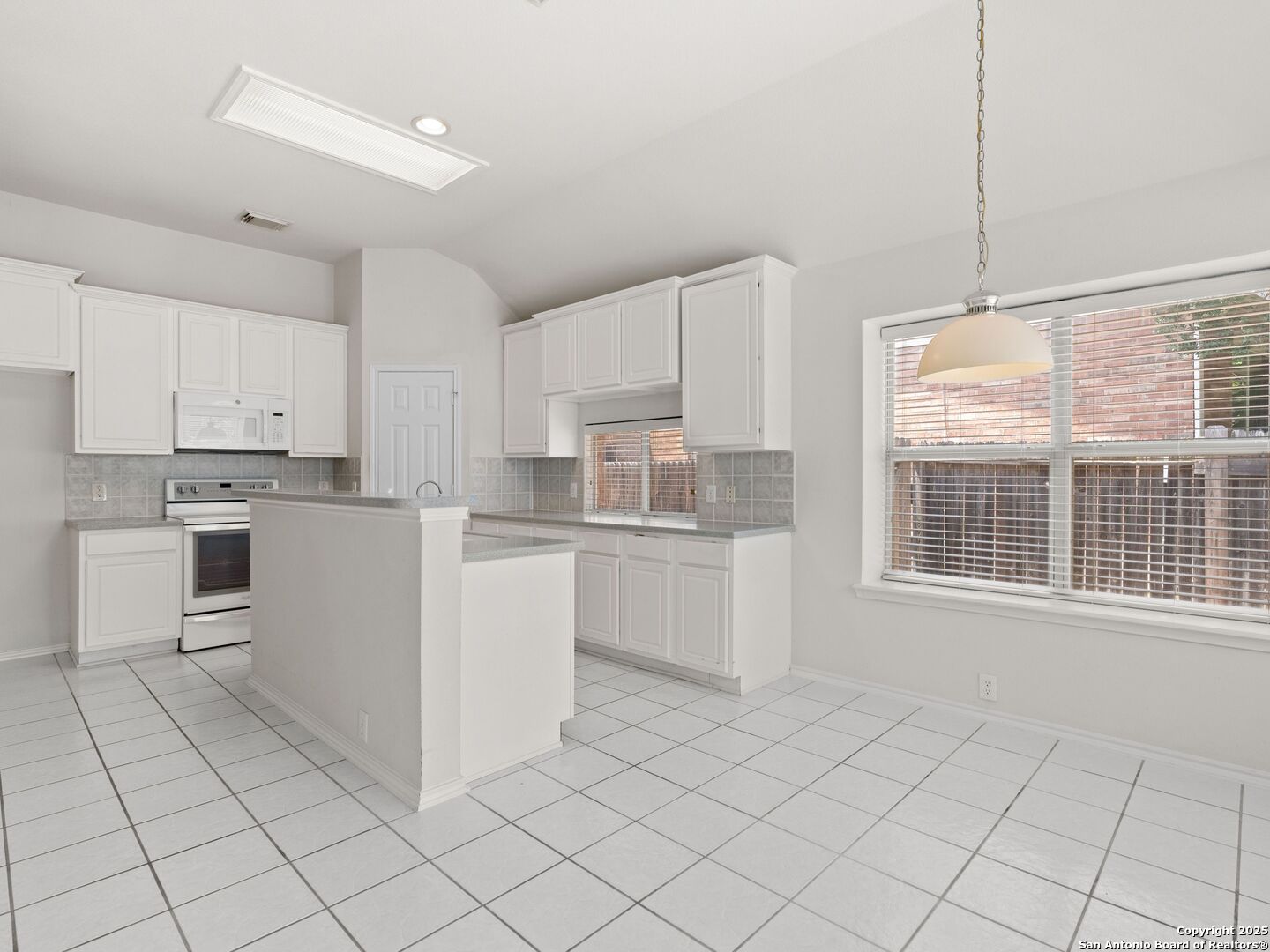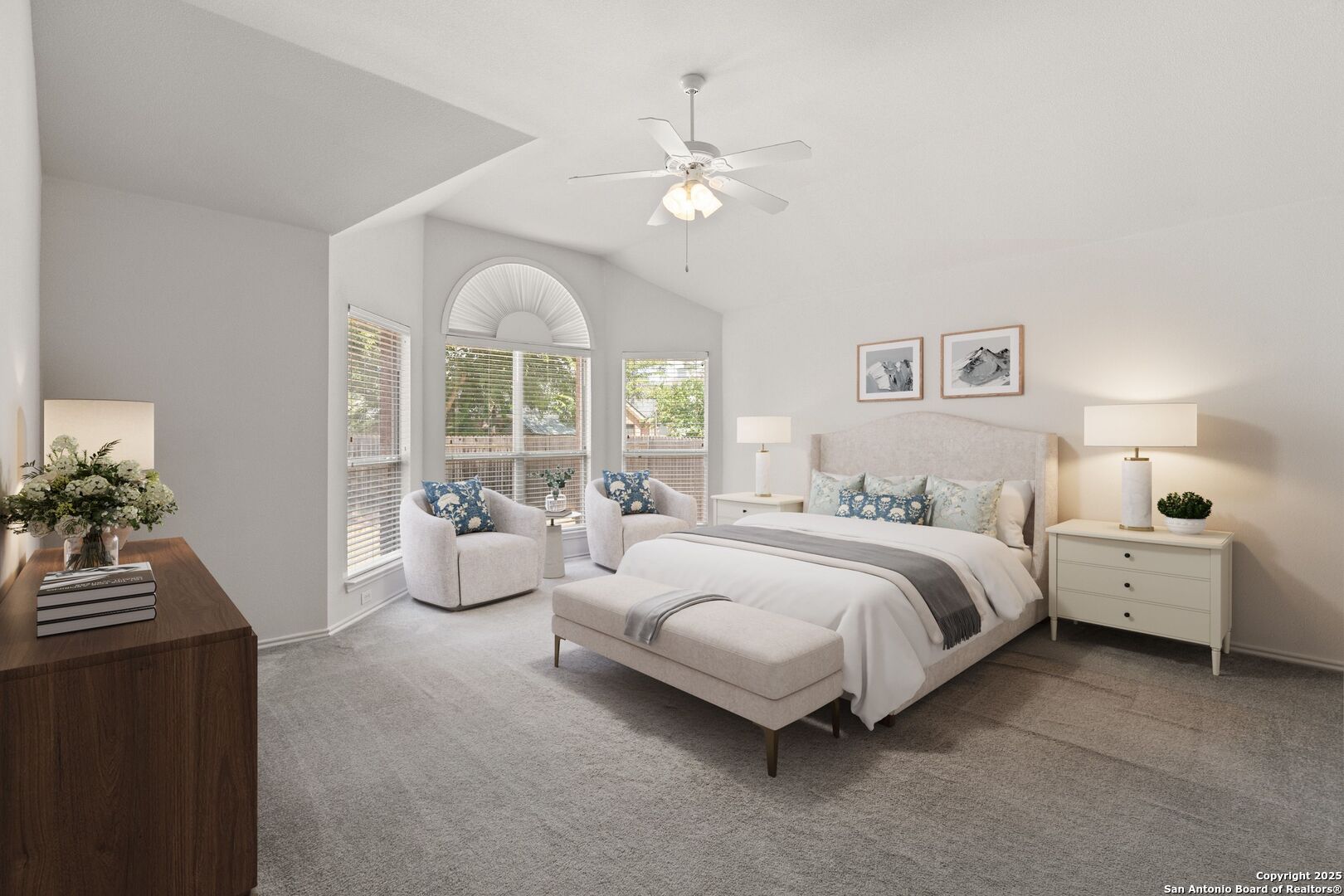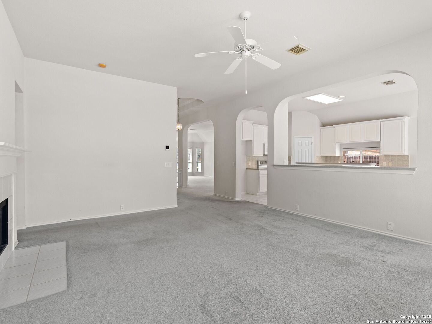 Meticulously maintained and move-in ready, this inviting single-story home sits on a beautifully landscaped lot with full xeriscaping for easy upkeep and year-round curb appeal. A classic brick exterior and charming covered porch set the tone for the well-cared-for interior, where abundant natural light fills each space and thoughtful details add a touch of warmth throughout. Inside, the open and airy layout features elegant arched transitions, high ceilings, and classic trim details. The spacious living room centers around a cozy fireplace and overlooks the private backyard, while the adjoining dining area is ideal for gatherings. The bright kitchen offers ample cabinet storage, solid-surface counters, a breakfast bar, and a casual dining nook with backyard views. The large primary suite provides a peaceful retreat with a vaulted ceiling and sitting area, along with a spa-style bath featuring dual vanities, a soaking tub, and a separate shower. Two additional bedrooms and a full bath complete the home's comfortable design, offering flexibility for guests, family, or a home office. This home has been exceptionally cared for, with thoughtful updates that include a new dishwasher (2025), new air conditioner (2024), new water heater (2021), and a new roof (2018)-providing peace of mind for years to come. Outside, the backyard is fully xeriscaped for effortless maintenance, creating a serene setting with a patio and fire pit area-perfect for relaxing evenings or weekend entertaining. Every inch of this property reflects care and pride of ownership, inside and out. Conveniently located near Randolph AFB, I-35, and excellent Schertz-Cibolo schools, this home offers the ideal combination of easy living and timeless appeal-all within minutes of shopping, dining, and parks.