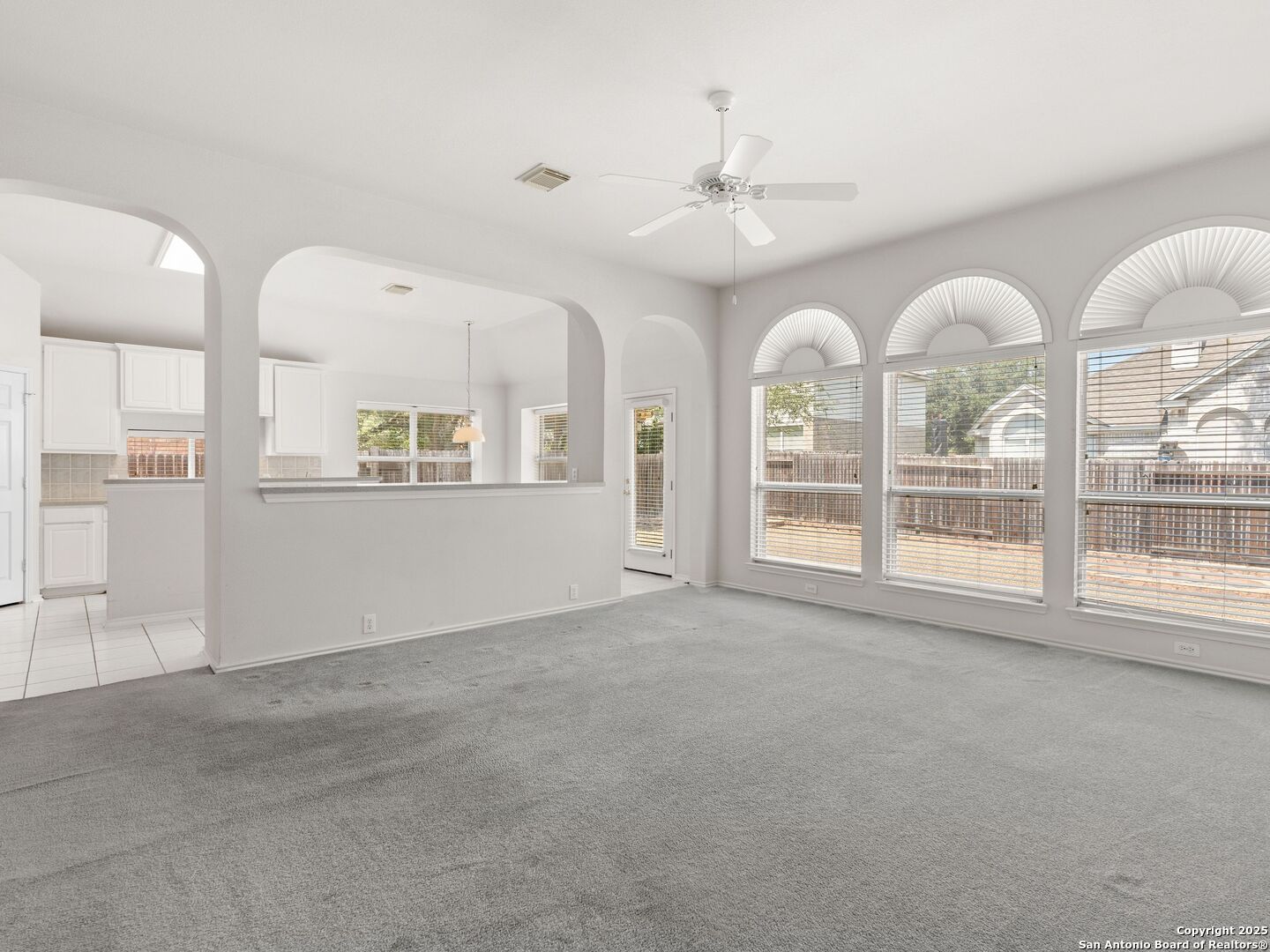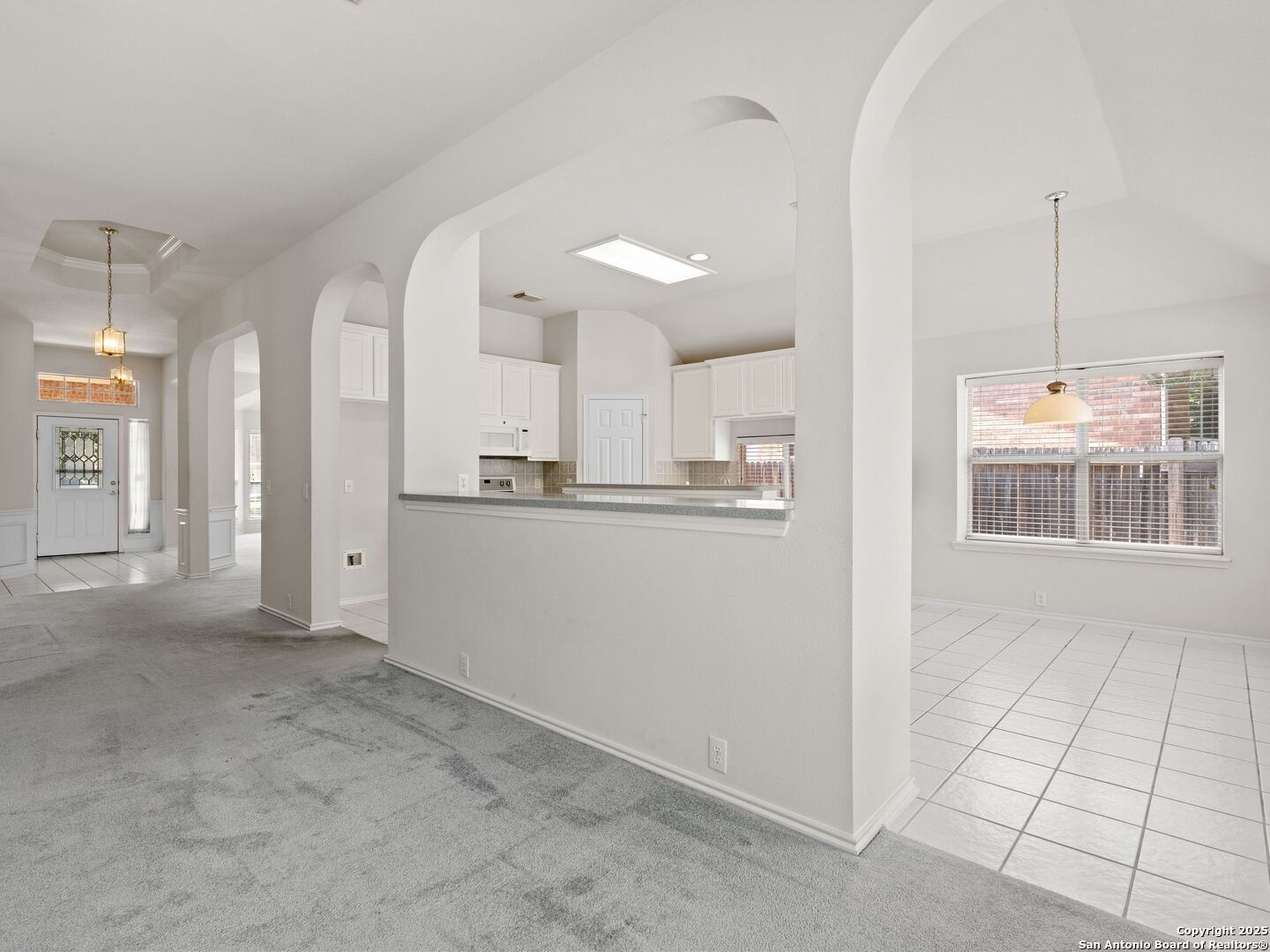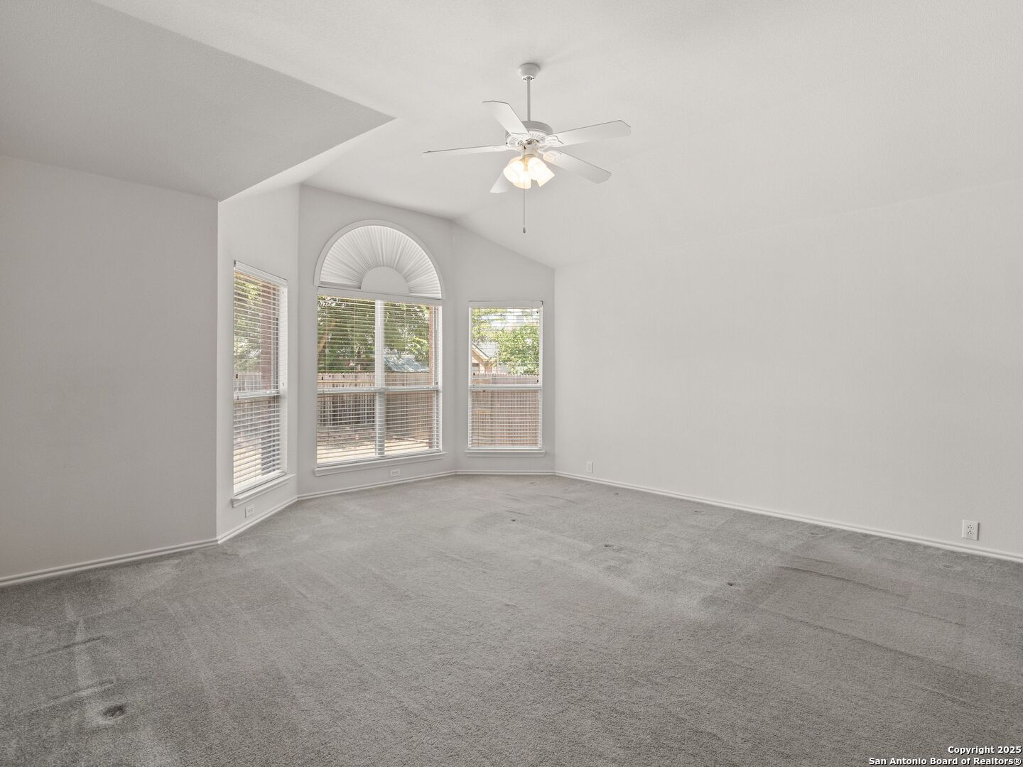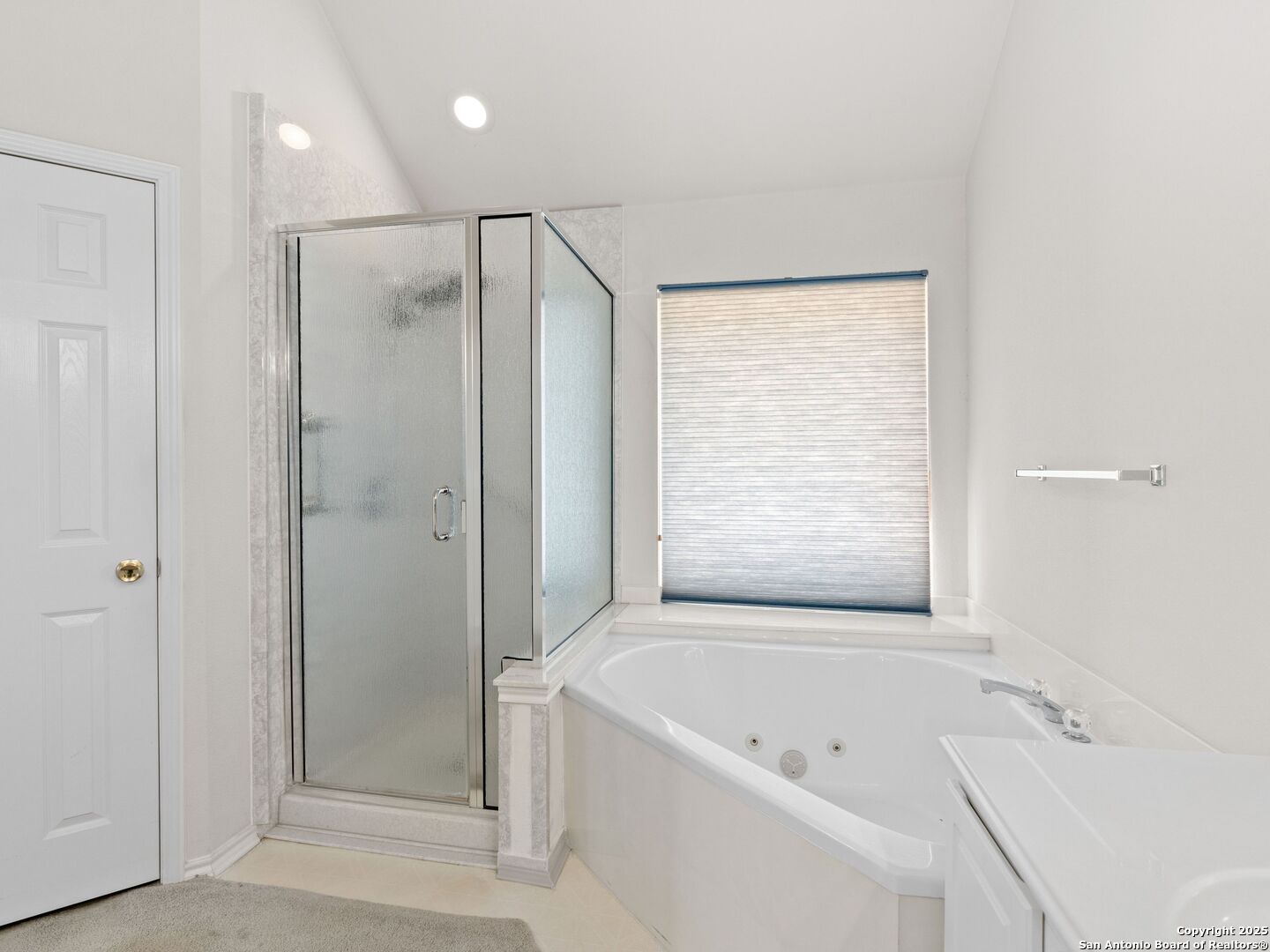 Meticulously maintained and move-in ready, this inviting single-story home sits on a beautifully landscaped lot with full xeriscaping for easy upkeep and year-round curb appeal. A classic brick exterior and charming covered porch set the tone for the well-cared-for interior, where abundant natural light fills each space and thoughtful details add a touch of warmth throughout. Inside, the open and airy layout features elegant arched transitions, high ceilings, and classic trim details. The spacious living room centers around a cozy fireplace and overlooks the private backyard, while the adjoining dining area is ideal for gatherings. The bright kitchen offers ample cabinet storage, solid-surface counters, a breakfast bar, and a casual dining nook with backyard views. The large primary suite provides a peaceful retreat with a vaulted ceiling and sitting area, along with a spa-style bath featuring dual vanities, a soaking tub, and a separate shower. Two additional bedrooms and a full bath complete the home's comfortable design, offering flexibility for guests, family, or a home office. This home has been exceptionally cared for, with thoughtful updates that include a new dishwasher (2025), new air conditioner (2024), new water heater (2021), and a new roof (2018)-providing peace of mind for years to come. Outside, the backyard is fully xeriscaped for effortless maintenance, creating a serene setting with a patio and fire pit area-perfect for relaxing evenings or weekend entertaining. Every inch of this property reflects care and pride of ownership, inside and out. Conveniently located near Randolph AFB, I-35, and excellent Schertz-Cibolo schools, this home offers the ideal combination of easy living and timeless appeal-all within minutes of shopping, dining, and parks.