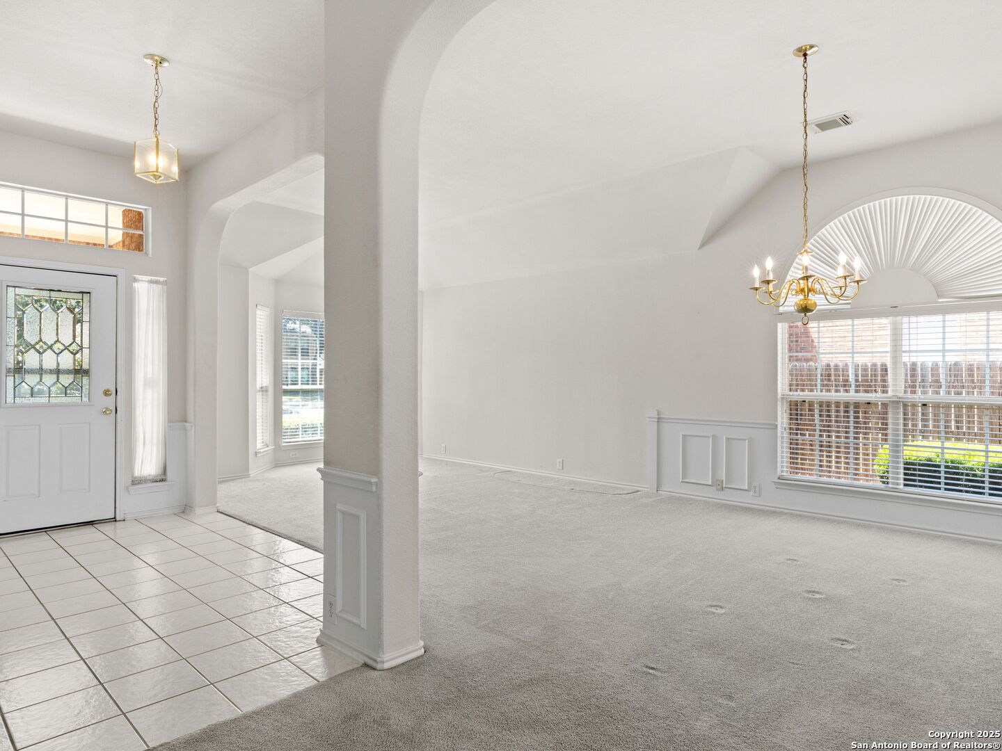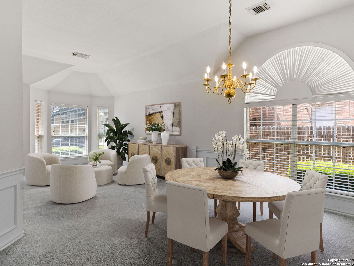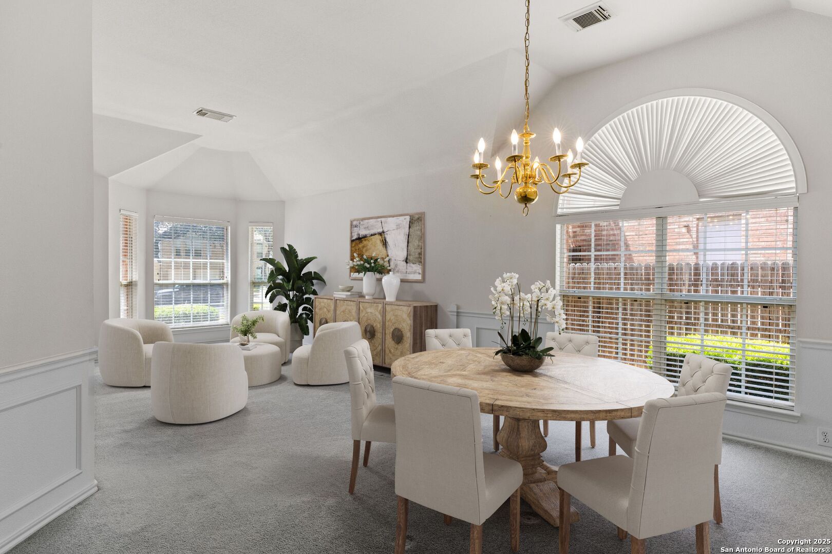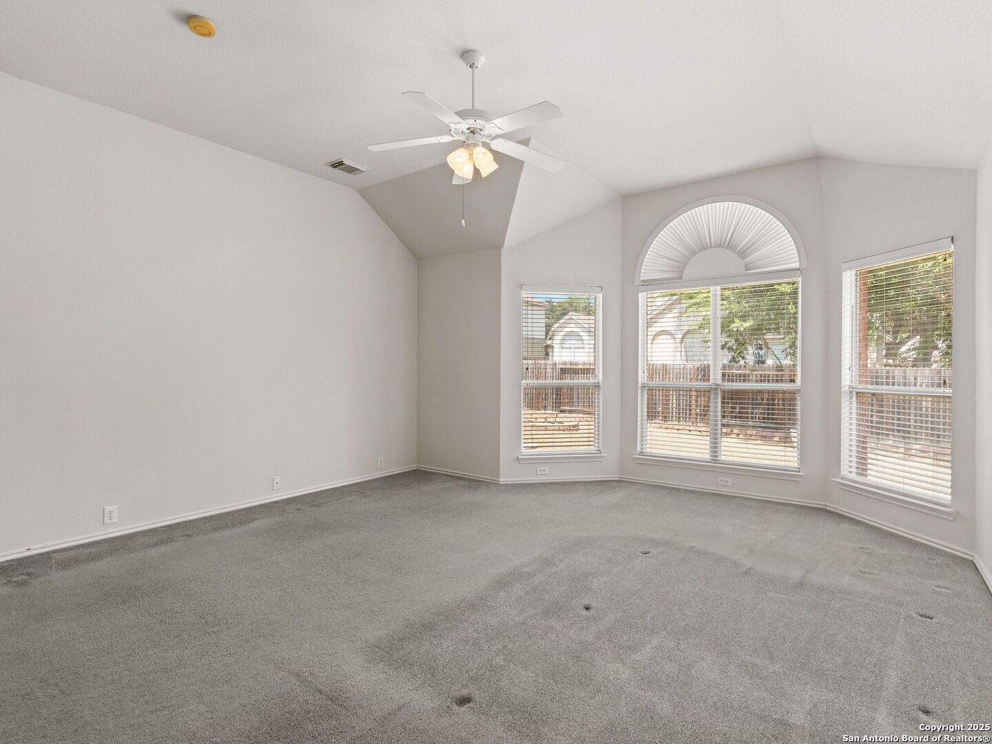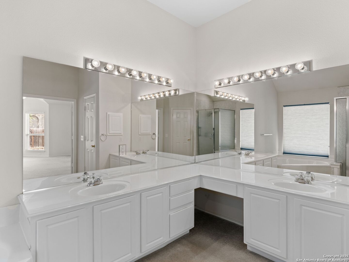 Meticulously maintained and move-in ready, this inviting single-story home sits on a beautifully landscaped lot with full xeriscaping for easy upkeep and year-round curb appeal. A classic brick exterior and charming covered porch set the tone for the well-cared-for interior, where abundant natural light fills each space and thoughtful details add a touch of warmth throughout. Inside, the open and airy layout features elegant arched transitions, high ceilings, and classic trim details. The spacious living room centers around a cozy fireplace and overlooks the private backyard, while the adjoining dining area is ideal for gatherings. The bright kitchen offers ample cabinet storage, solid-surface counters, a breakfast bar, and a casual dining nook with backyard views. The large primary suite provides a peaceful retreat with a vaulted ceiling and sitting area, along with a spa-style bath featuring dual vanities, a soaking tub, and a separate shower. Two additional bedrooms and a full bath complete the home's comfortable design, offering flexibility for guests, family, or a home office. This home has been exceptionally cared for, with thoughtful updates that include a new dishwasher (2025), new air conditioner (2024), new water heater (2021), and a new roof (2018)-providing peace of mind for years to come. Outside, the backyard is fully xeriscaped for effortless maintenance, creating a serene setting with a patio and fire pit area-perfect for relaxing evenings or weekend entertaining. Every inch of this property reflects care and pride of ownership, inside and out. Conveniently located near Randolph AFB, I-35, and excellent Schertz-Cibolo schools, this home offers the ideal combination of easy living and timeless appeal-all within minutes of shopping, dining, and parks.