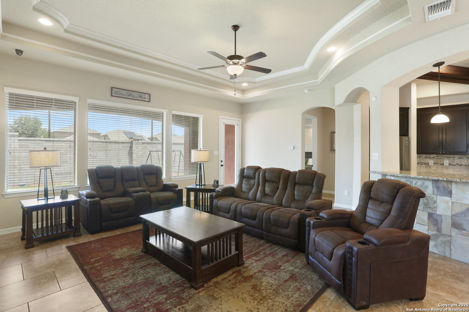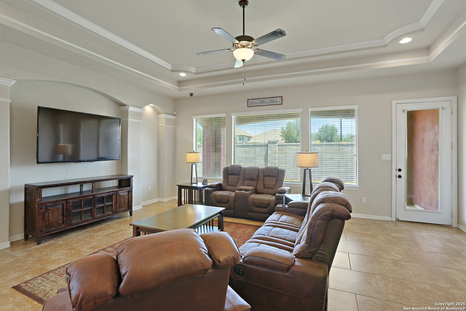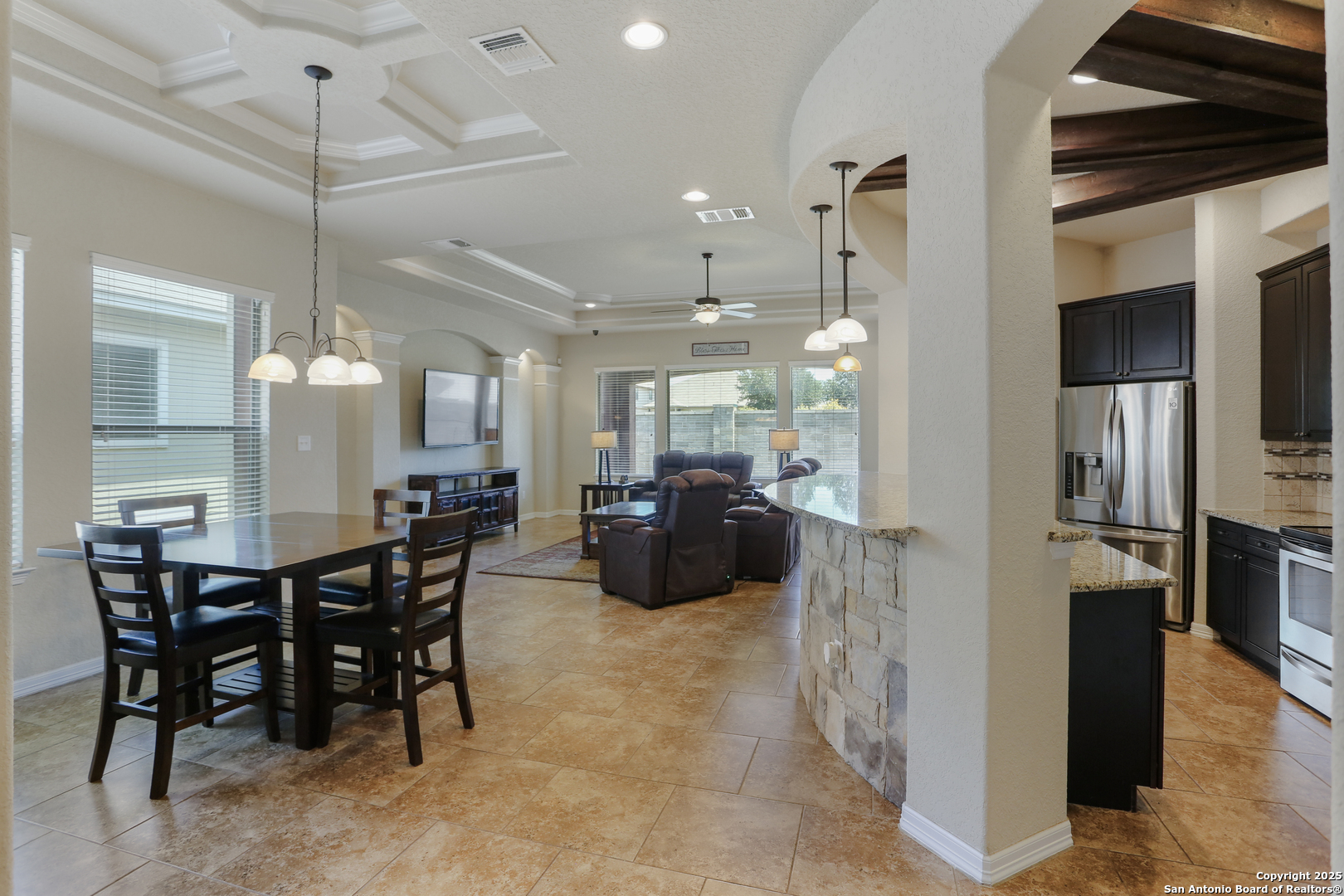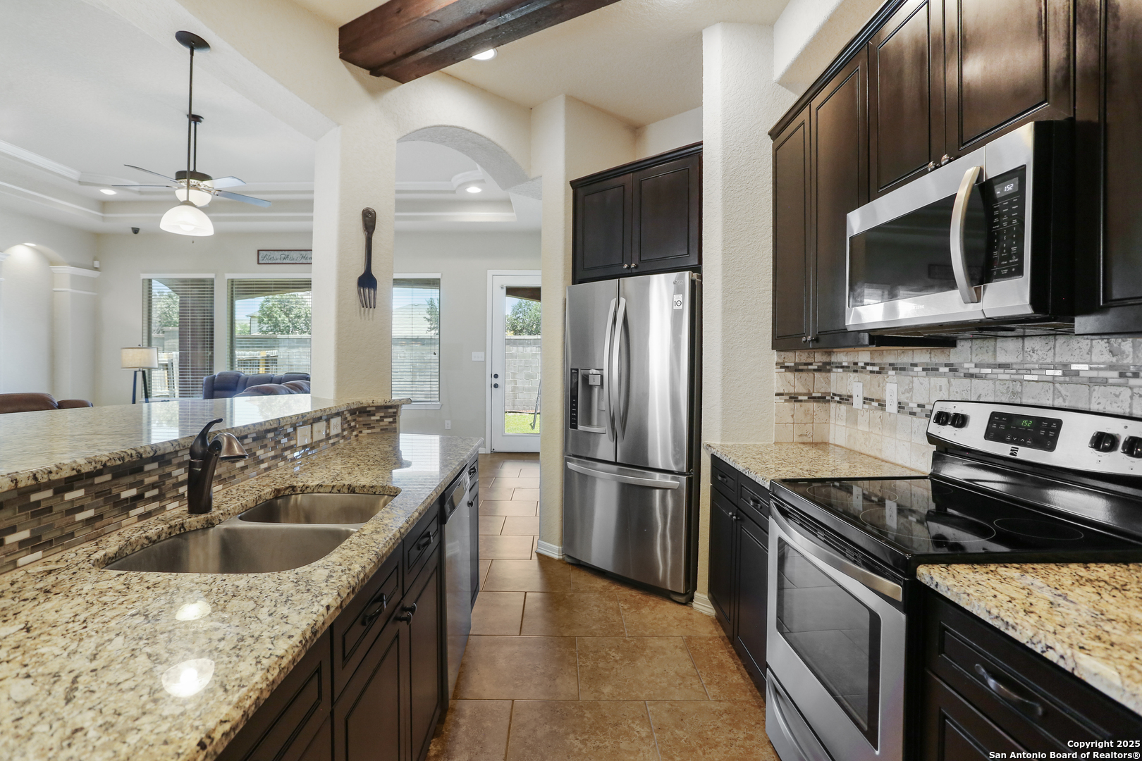 This home is what dreams are made of and more! Key Largo is a stone throws away from I-10 and minutes from 1604 giving you a quick commute to schools, shops and entertainment. This 3 bed, 2 bath home is gorgeous on the outside with its red stucco and stone exterior which is a breath of fresh air and even better on the inside with its tall ceilings, doors and you can't forget about the kitchen. The home recently got the roof replaced(10/24), HVAC (7/21), water heater (4/2025) AND it comes with a water softener system as well!!! The "wagon wheel" design kitchen gives plenty of space for the most sophisticated chef and space for the family to enjoy breakfast on the bar, or host huge gathering where everyone feels included with the open concept living and dining. This truly a gem of a home and ready for new owners. welcome home!