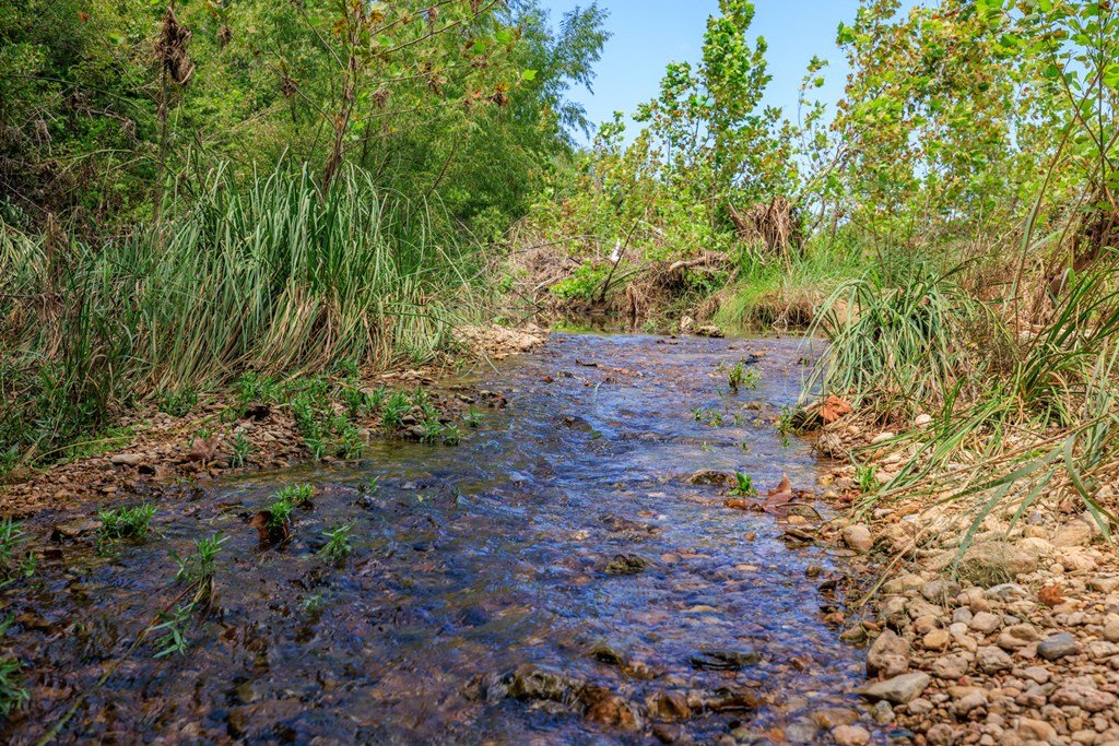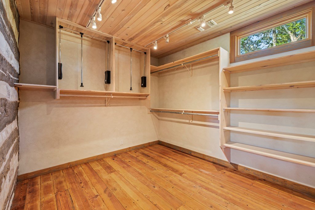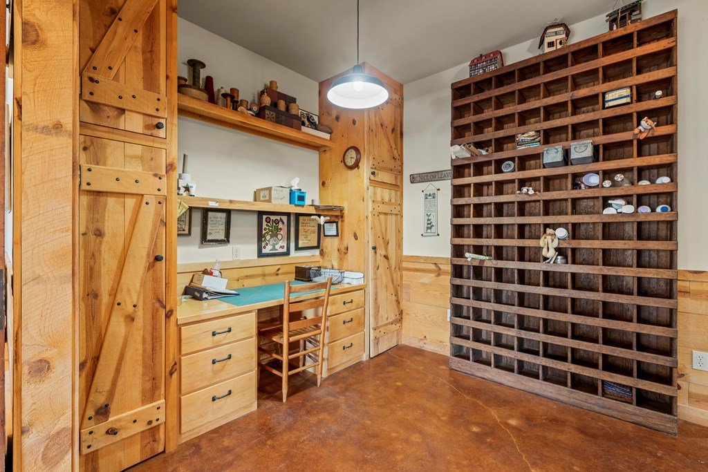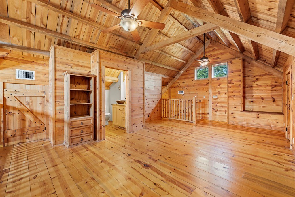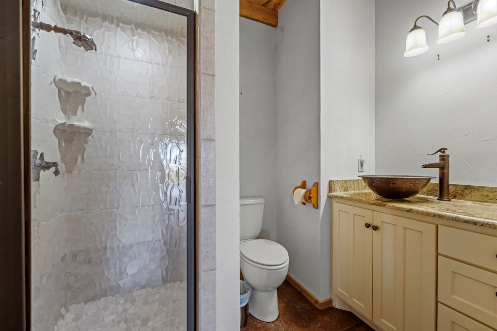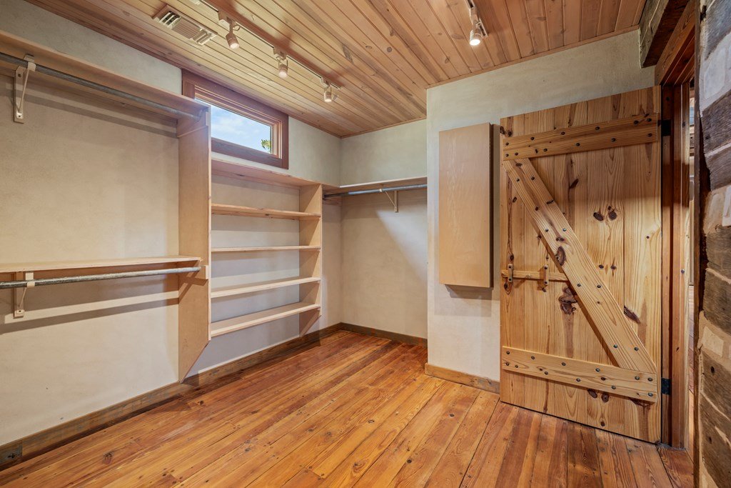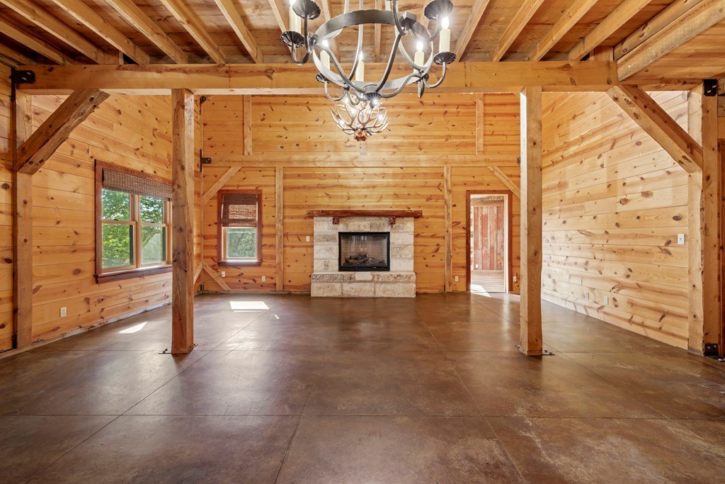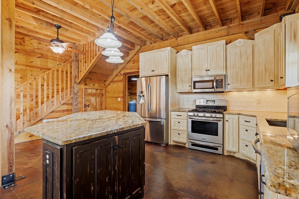 Tucked into the rolling hills of Fredericksburg, this one-of-a-kind Hill Country property blends rustic heritage with modern comfort. The property spans both sides of Live Oak Creek and captures sweeping views from its inviting front porch—perfect for morning coffee or sunset breezes. The main residence embraces cabin-style warmth with an open-concept living, dining, and kitchen area anchored by a stone fireplace. There are four bedrooms and four full baths, offering flexible space for family and guests. At the heart of the home, the primary suite tells a story all its own: a historic log cabin relocated from Kentucky, carefully reassembled on site to create an intimate retreat with a dedicated covered porch and access. The adjoining sitting room features reclaimed wood flooring salvaged from Fredericksburg's iconic Stroeher & Son building, adding a true sense of heritage. Outside, a relocated vintage water tank from a nearby ranch provides a sculptural focal point and nod to local history. The property also includes an exceptionally oversized metal barn with a second-story loft, as well as fully finished guest quarters—ideal as a game room, studio, or private apartment. A two-car covered carport connects seamlessly, offering easy access and sheltered parking. With a blend of craftsmanship, serenity, and wide-open space, only minutes from downtown, this home captures the soul of Fredericksburg's Hill Country lifestyle