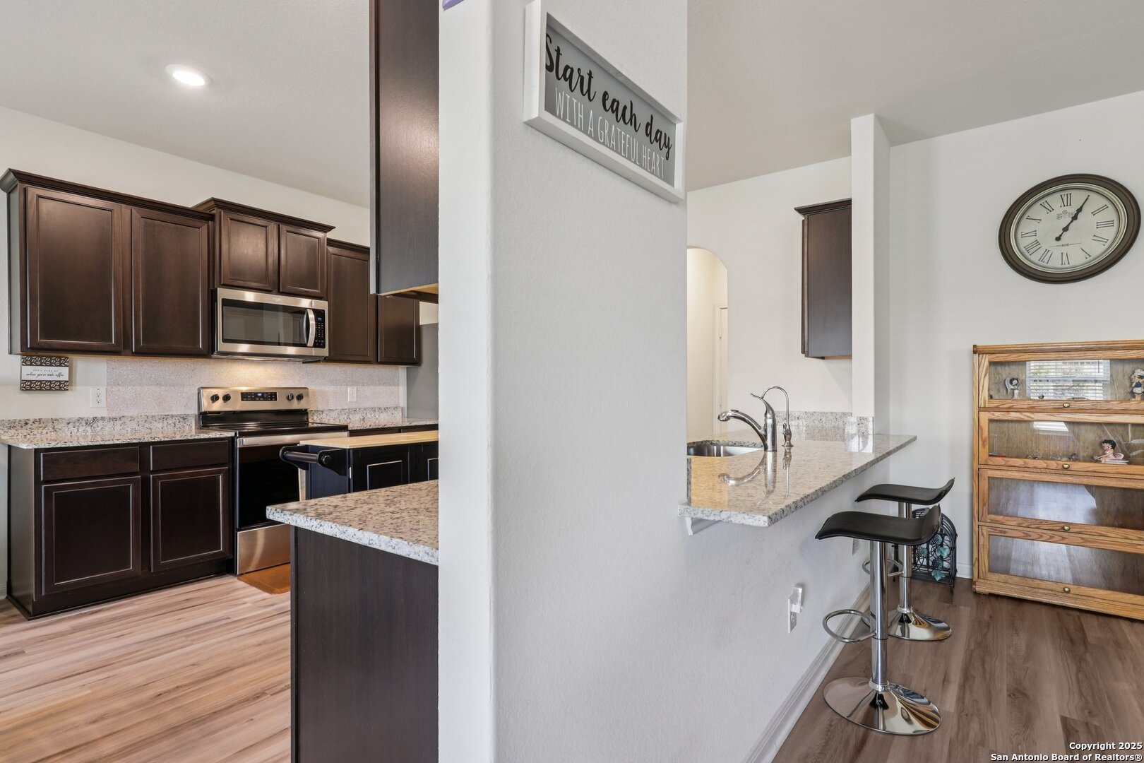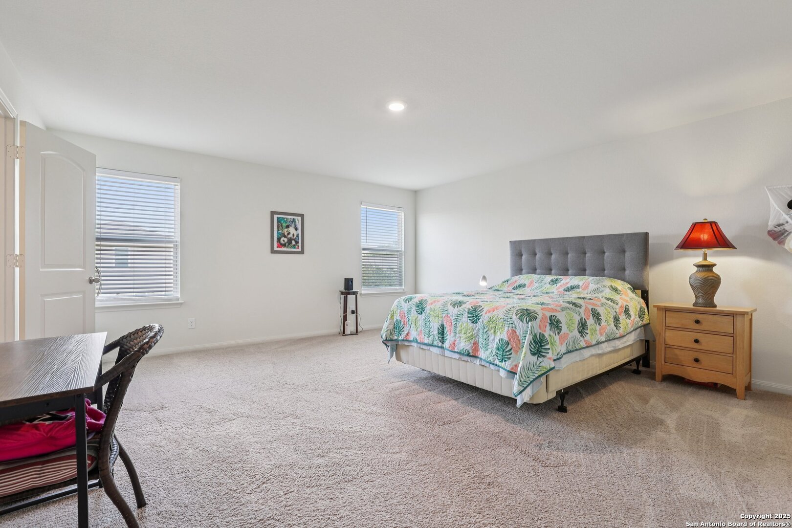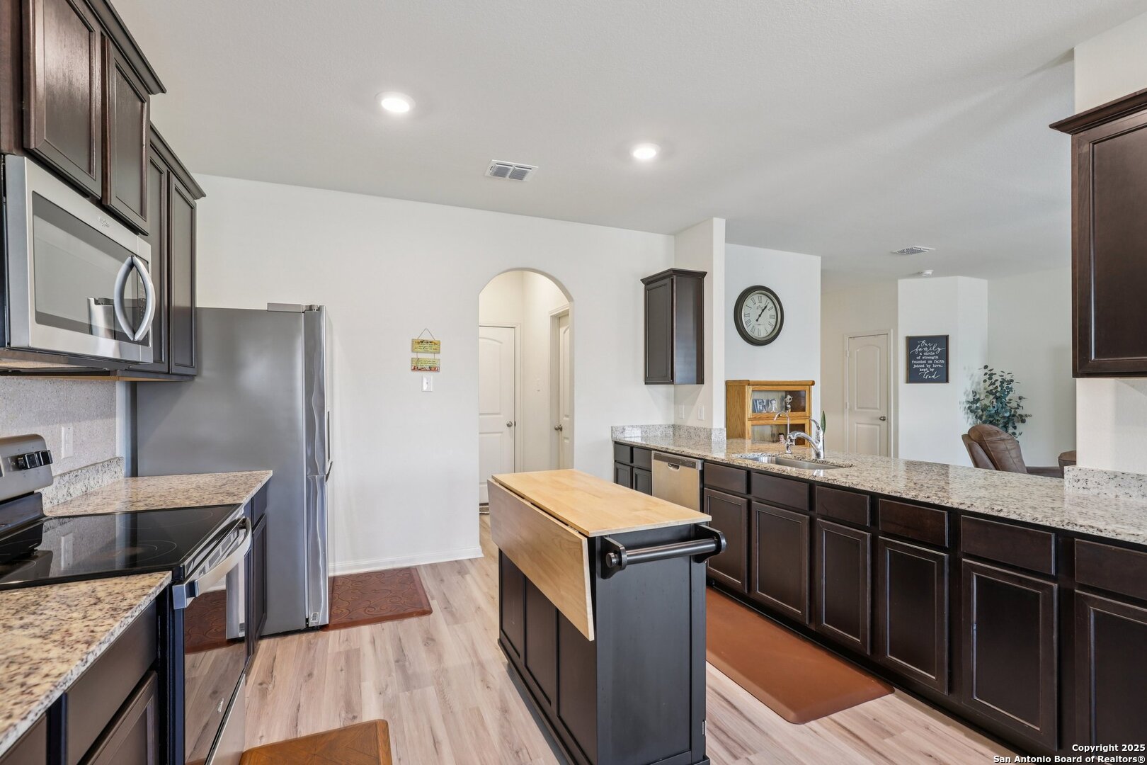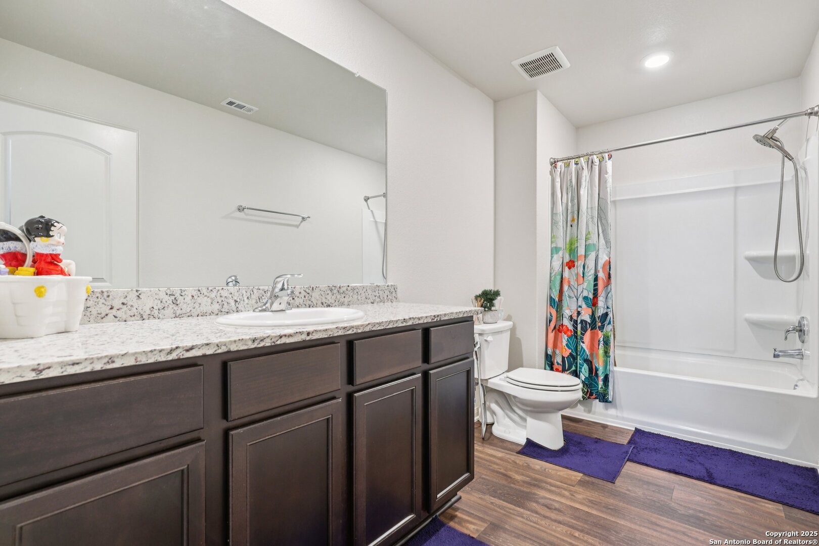 This beautifully maintained two-story home offers the perfect blend of comfort and convenience. Step inside to find an open floor plan with two spacious living areas and luxury vinyl plank flooring with no carpet on the first floor-ideal for easy maintenance. The kitchen features dark cabinetry, granite counters, a breakfast bar, and blinds on all windows, creating a warm and inviting space for everyday living or entertaining. Upstairs, you'll find four generously sized bedrooms, including a large primary suite with a separate shower and garden tub. The home sits on an elevated lot, giving the backyard-lined with bushes-a private, peaceful feel. Additional highlights include a spring door on both front and back entries, a water filtration system, and a garage door with decorative hardware. Located in a community with a splash pad and park, and offering quick access to I-35, this home makes travel to Austin or San Antonio effortless. With its thoughtful upgrades and functional layout, this home delivers exceptional value, space, and location-all in one.