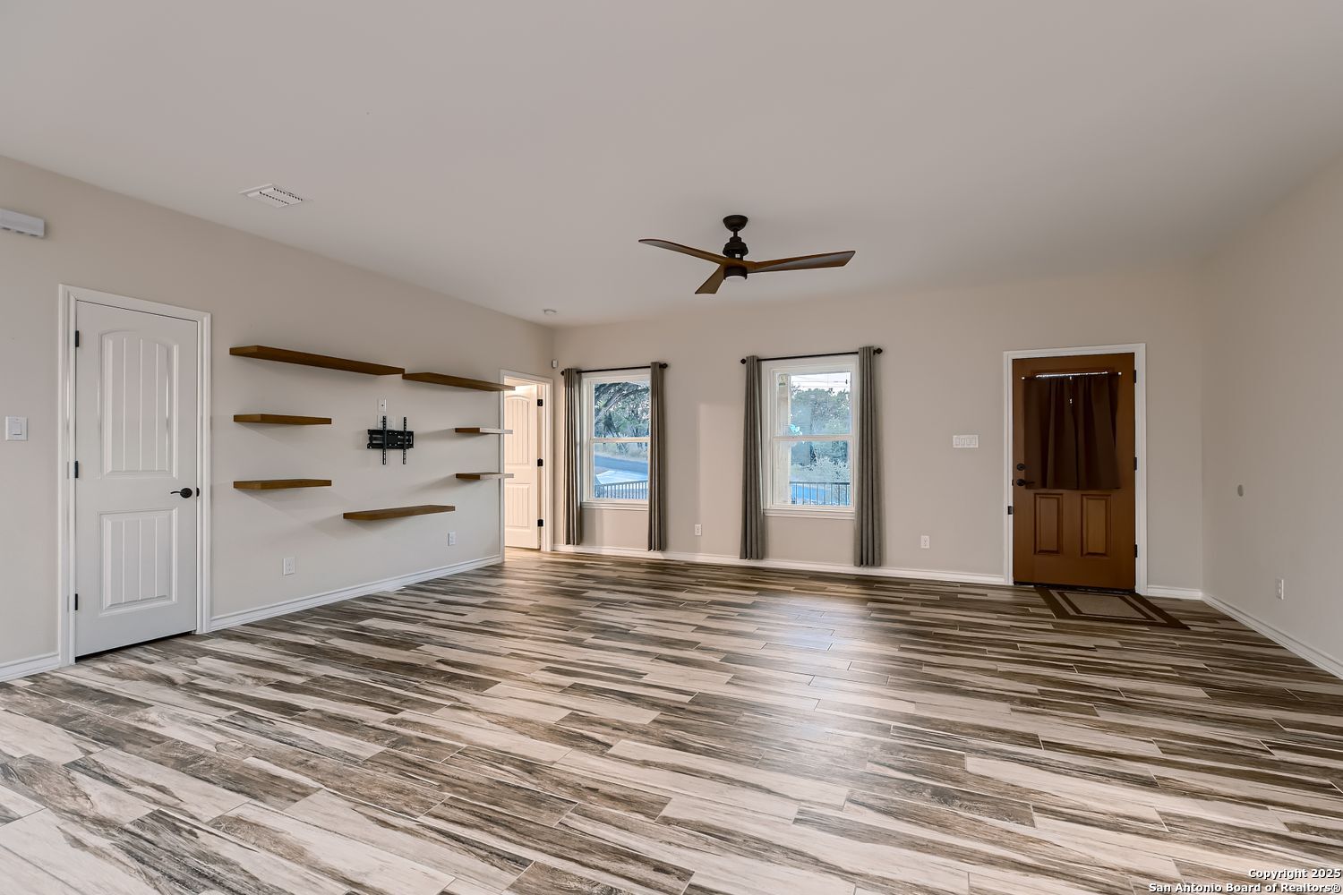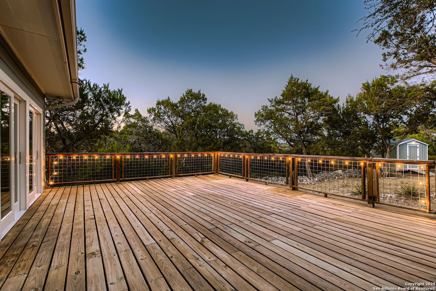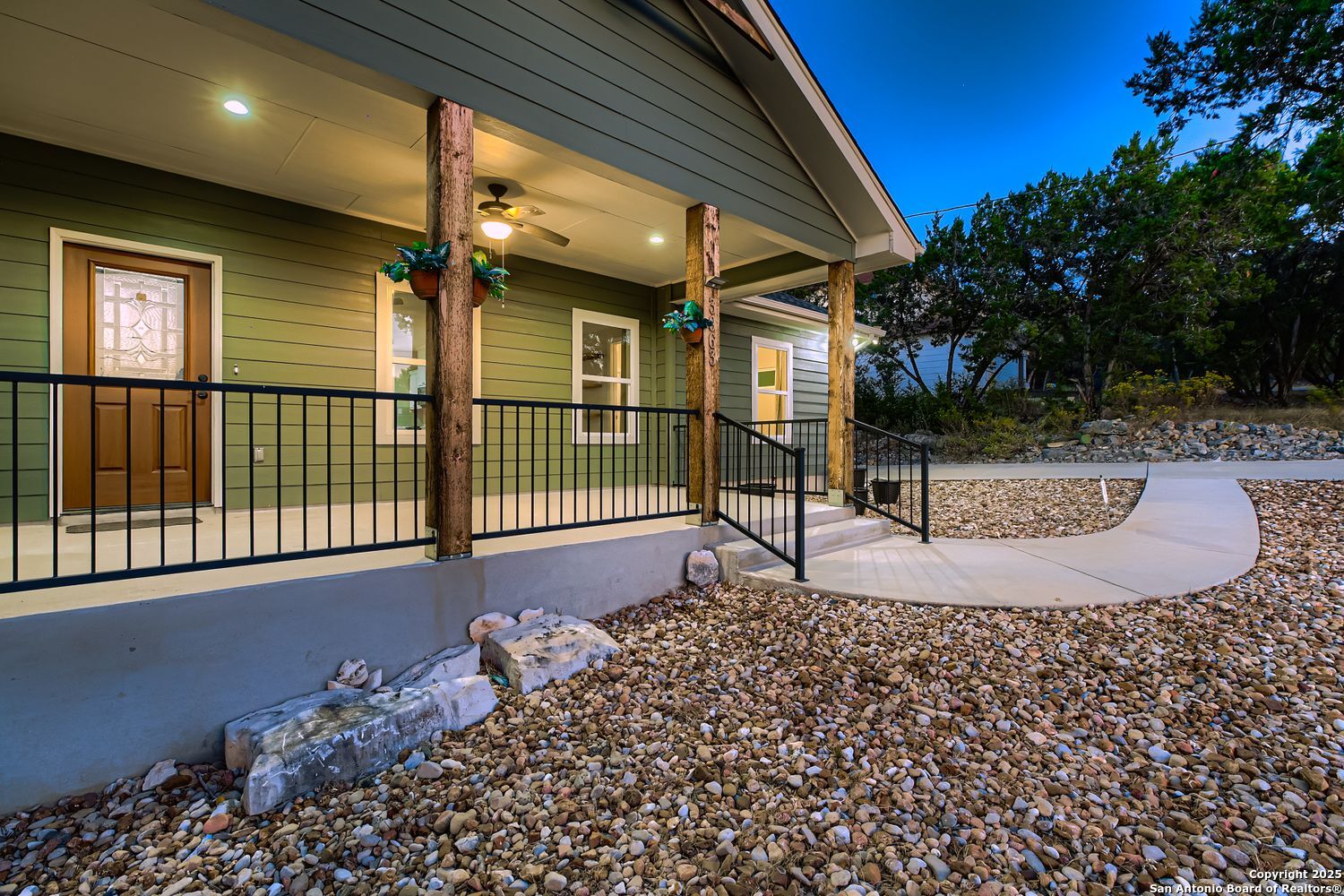 Welcome to this custom built beautiful single-story home featuring a welcoming covered front porch-perfect for enjoying your morning coffee. Inside, you'll find an open-concept layout that seamlessly connects the kitchen, living, and dining areas, creating an ideal space for both relaxing and entertaining. The kitchen offers plenty of counter space, abundant cabinetry, and a great flow into the main living area. The spacious primary bedroom includes a private full bath with a double vanity and a walk-in shower. Large garage space big enough for your car, golf cart and plenty of room left for storage. Step outside to a large open backyard with a deck overlooking the hill country, perfect for gatherings, grilling, or simply enjoying the outdoors. This inviting home combines comfort, function, and charm-all in one level of easy living. No HOA and easy access to concert venues, river and shopping.