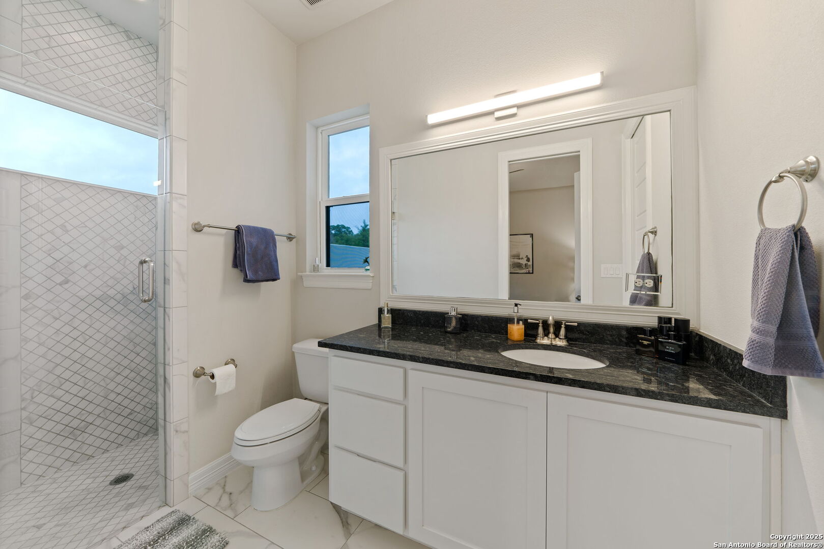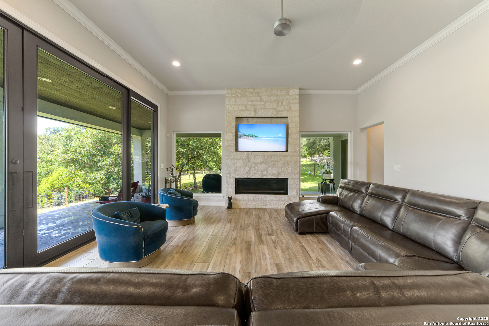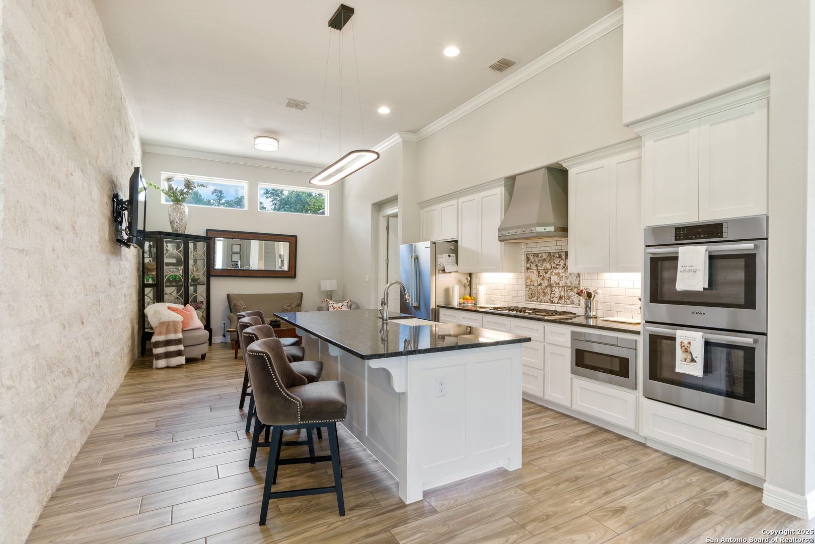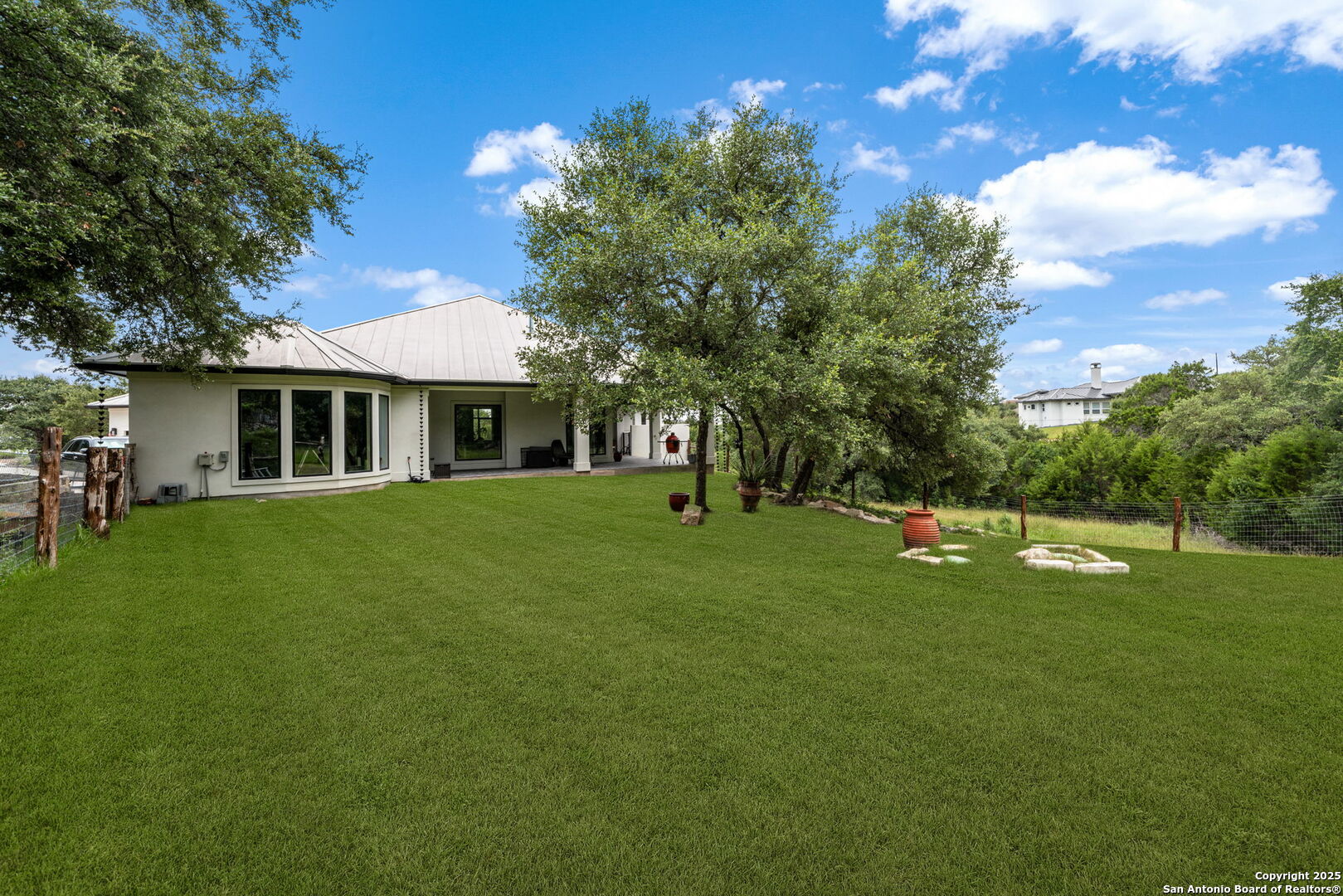 Imagine coming home to 1.5 acres of Hill Country beauty-where the land feels wild and private, yet the upkeep is refreshingly simple. Set within the prestigious gated community of Menger Springs, this modern Hill Country-style home offers a rare combination of seclusion, elegance, and convenience. Surrounded by mature trees and untouched natural landscape, it feels like a private retreat-yet you're only minutes from downtown Boerne's shopping, dining, and quick access to I-10. The thoughtfully designed, single-level floor plan is fully accessible, with each bedroom featuring its own en suite bath, creating comfort and privacy for family and guests. The 1.5-acre lot is designed to maximize privacy without the burden of heavy maintenance. A smaller, manicured lawn is perfect for daily living and entertaining, while the surrounding landscape stays natural and easy-care. There's also room for your dreams-whether that's adding a sparkling backyard pool, building a workshop, or creating extra storage space. From the open living areas, custom kitchen built for entertaining and spa-like primary suite to the covered patio that invites quiet evenings under the stars, this home captures the perfect balance of modern style and Hill Country charm. This isn't just a home-it's your private Hill Country sanctuary, ready for your next chapter.