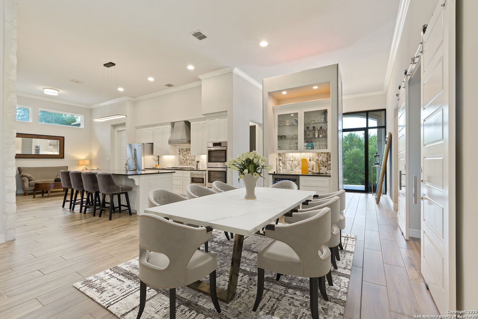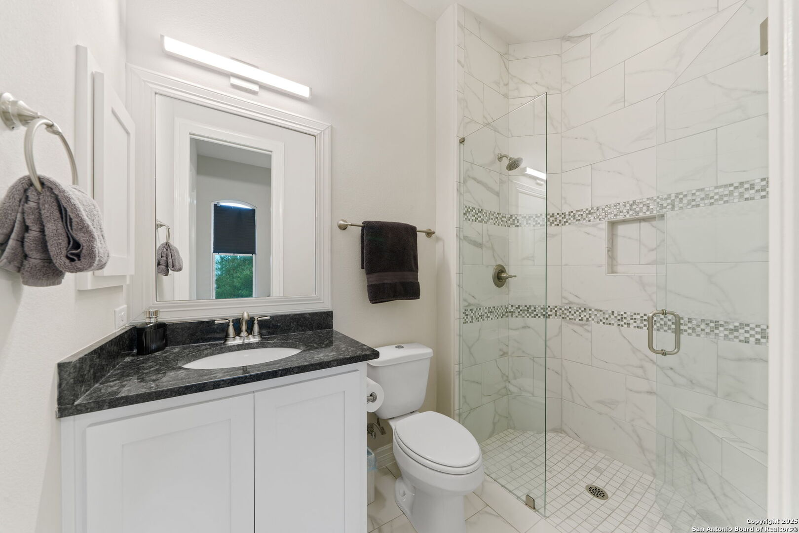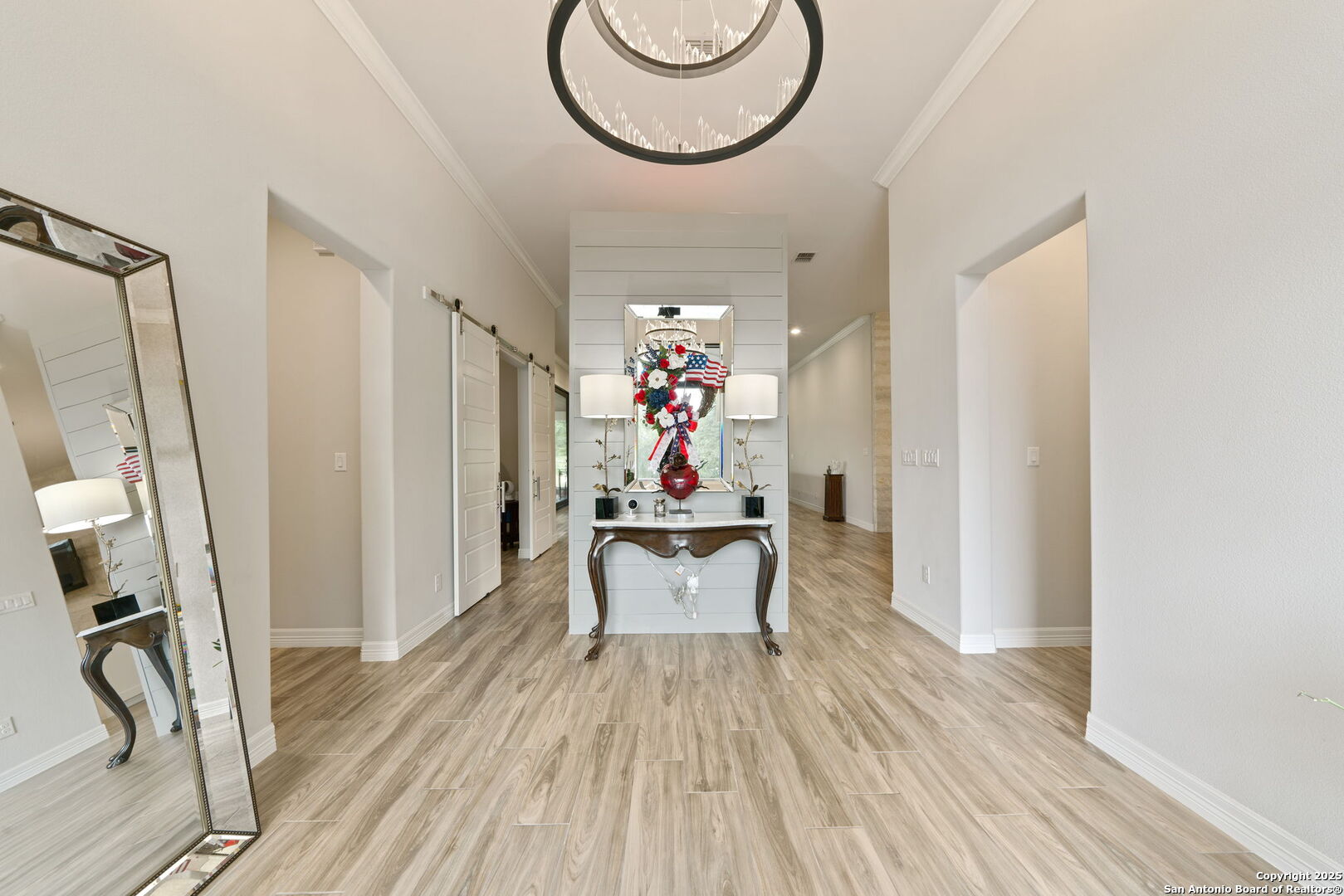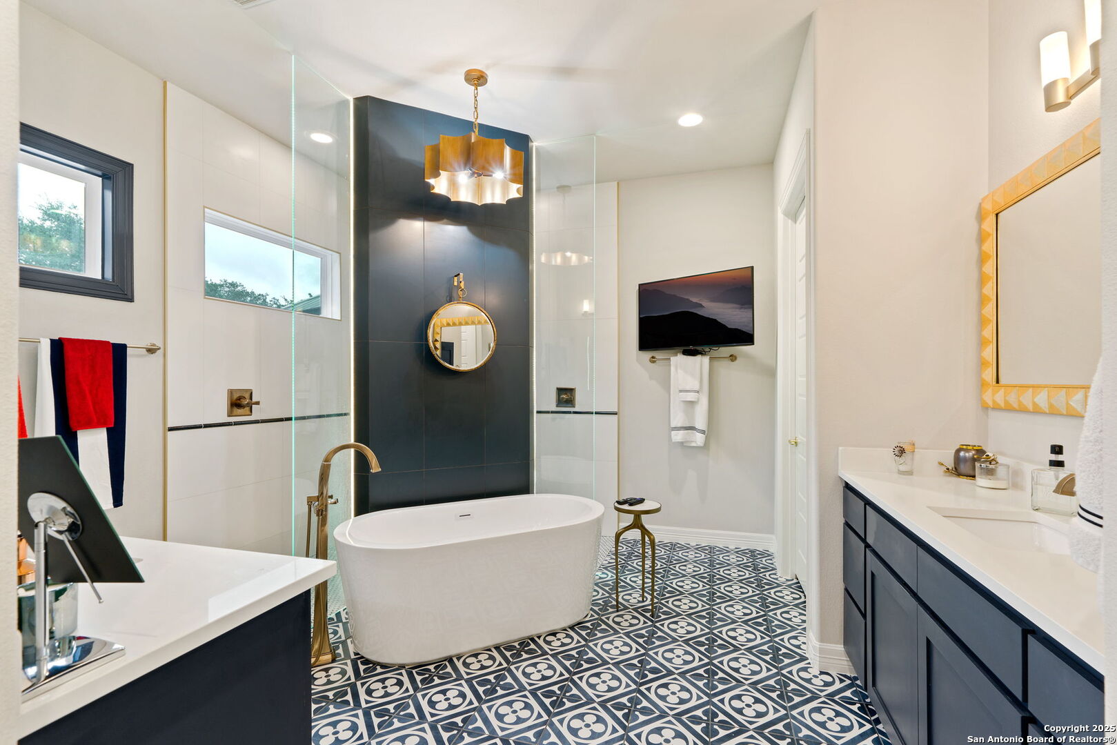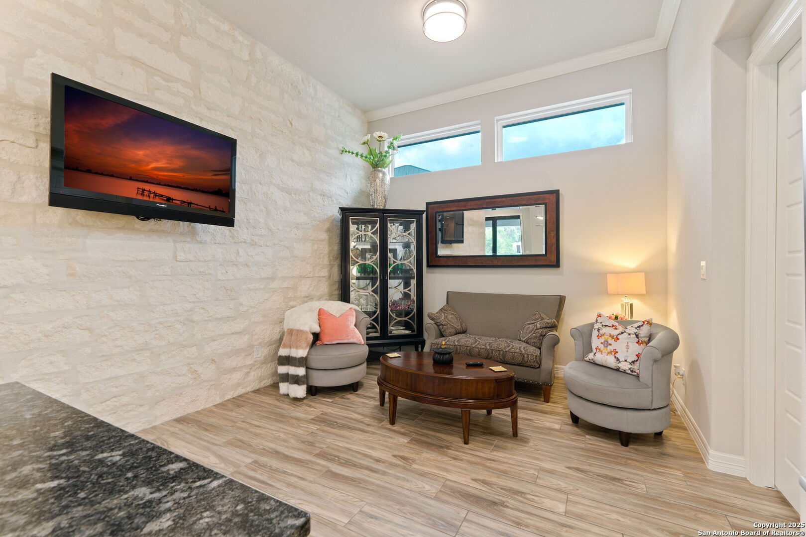 Imagine coming home to 1.5 acres of Hill Country beauty-where the land feels wild and private, yet the upkeep is refreshingly simple. Set within the prestigious gated community of Menger Springs, this modern Hill Country-style home offers a rare combination of seclusion, elegance, and convenience. Surrounded by mature trees and untouched natural landscape, it feels like a private retreat-yet you're only minutes from downtown Boerne's shopping, dining, and quick access to I-10. The thoughtfully designed, single-level floor plan is fully accessible, with each bedroom featuring its own en suite bath, creating comfort and privacy for family and guests. The 1.5-acre lot is designed to maximize privacy without the burden of heavy maintenance. A smaller, manicured lawn is perfect for daily living and entertaining, while the surrounding landscape stays natural and easy-care. There's also room for your dreams-whether that's adding a sparkling backyard pool, building a workshop, or creating extra storage space. From the open living areas, custom kitchen built for entertaining and spa-like primary suite to the covered patio that invites quiet evenings under the stars, this home captures the perfect balance of modern style and Hill Country charm. This isn't just a home-it's your private Hill Country sanctuary, ready for your next chapter.