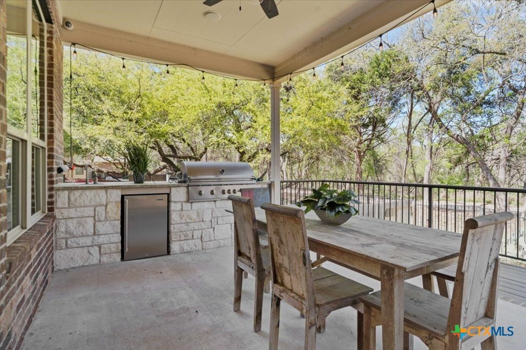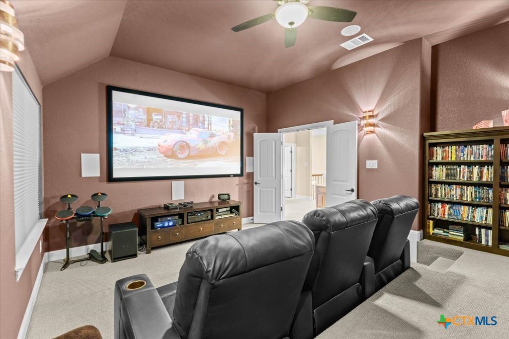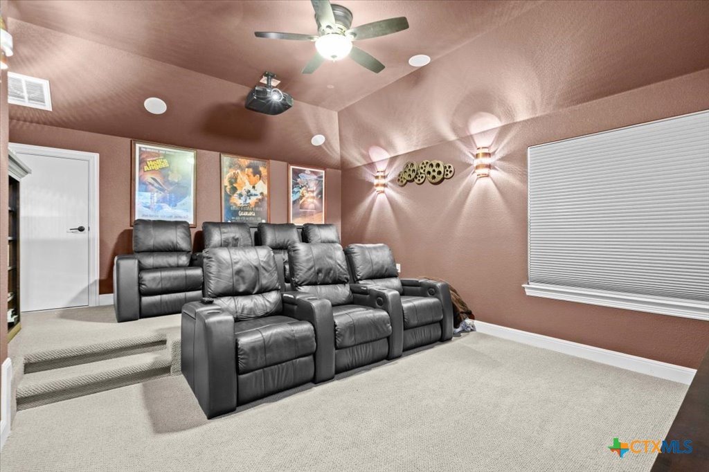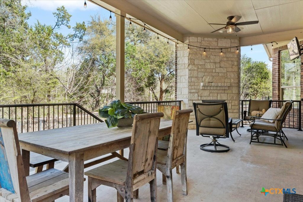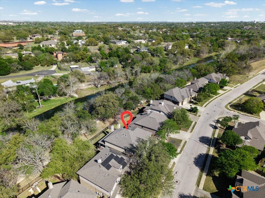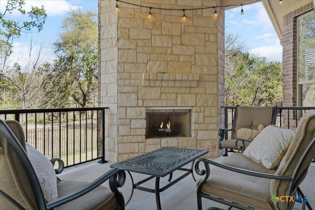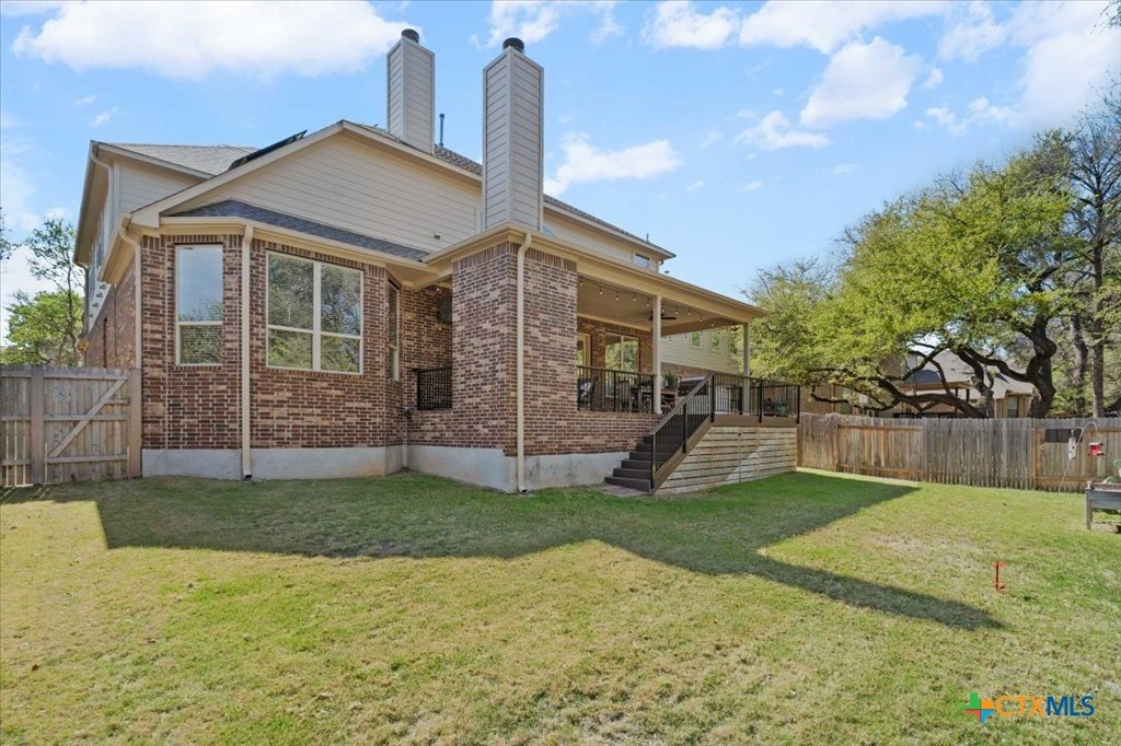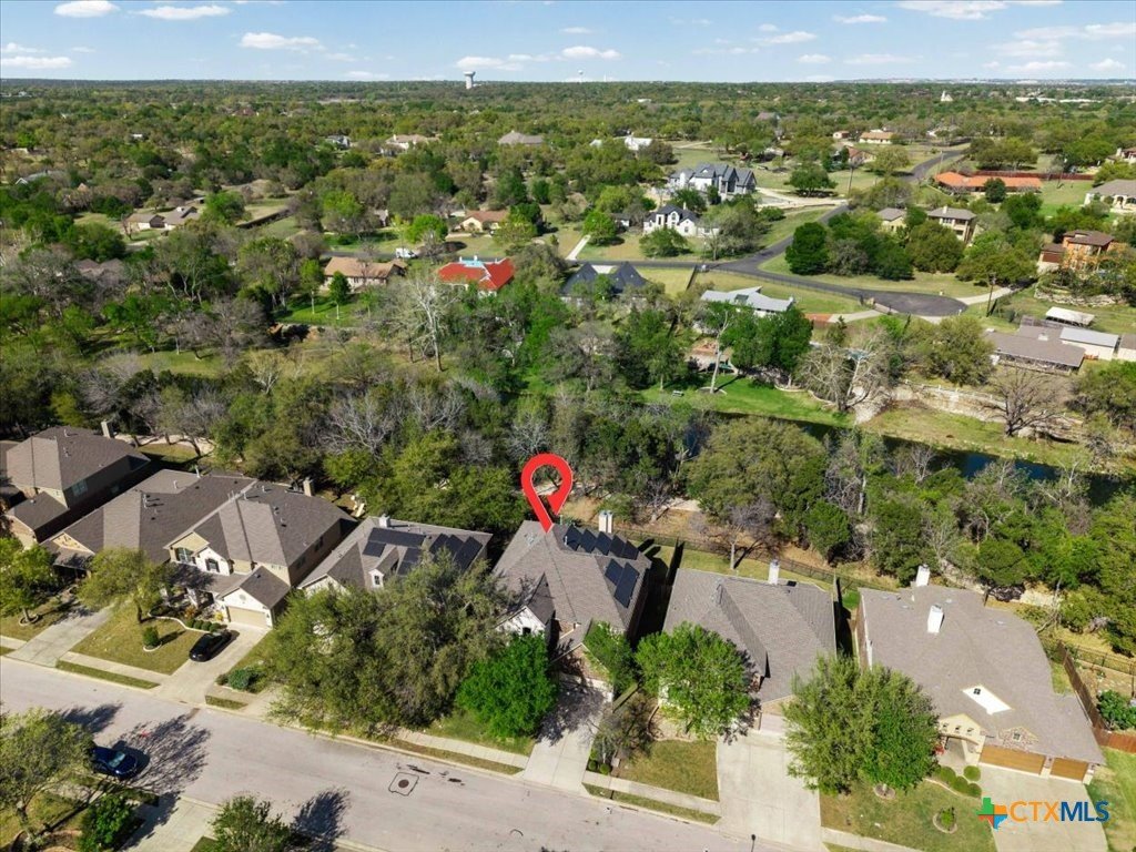 Discover your dream home bordering the beautiful Brushy Creek and greenbelt, providing direct access to miles of scenic walking, jogging, and biking trails right from your backyard. Outdoor living is elevated with an extended back patio, showcasing a custom rocked fireplace and a full outdoor kitchen, including a built-in gas grill and refrigerator for effortless al fresco dining and year-round enjoyment. Inside, this two-story gem features an extended, oversized primary suite on the main level with two separate walk-in closets for maximum convenience. The first floor also includes a dedicated study/office with custom built-ins, a formal dining room, a central living area with soaring beamed ceiling and a floor to ceiling rocked fireplace, and a kitchen equipped with premium amenities like a convenient pot filler over the gas cooktop, two ovens, and a breakfast nook. Upstairs, find a large game room, bonus built-in study area, three generous bedrooms, two full baths, and a state-of-the-art theatre room, reclining seats with everything to enjoy your favorite movie. Space, luxury, and nature converge in this exceptional property. This property's energy efficiency is superb, thanks to 25 Solar World solar panels and a Lennox ML18XC2 2-Stage AC system, with electric bills ranging from just $35 to $170 over the last year. With its unbeatable location and incredible features, this home is a must-see