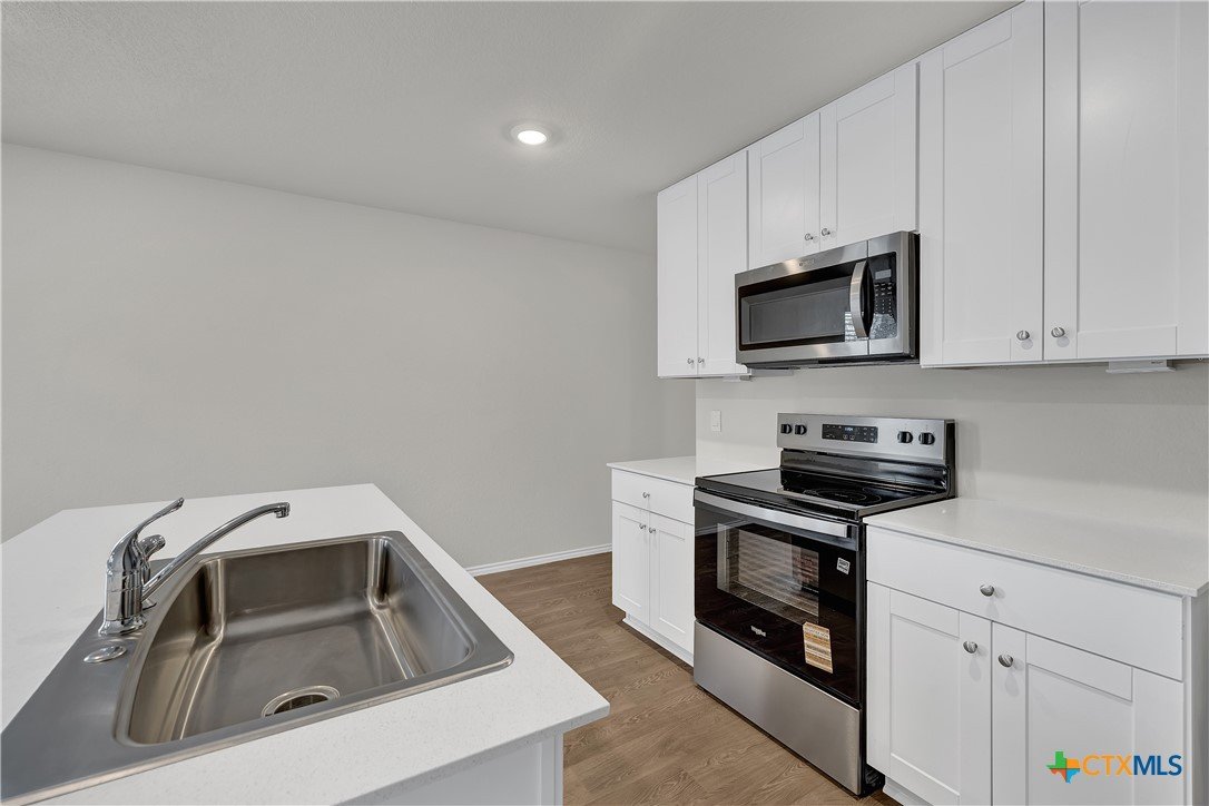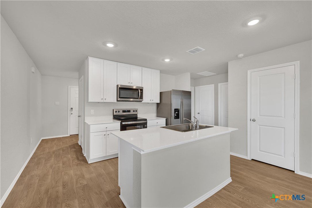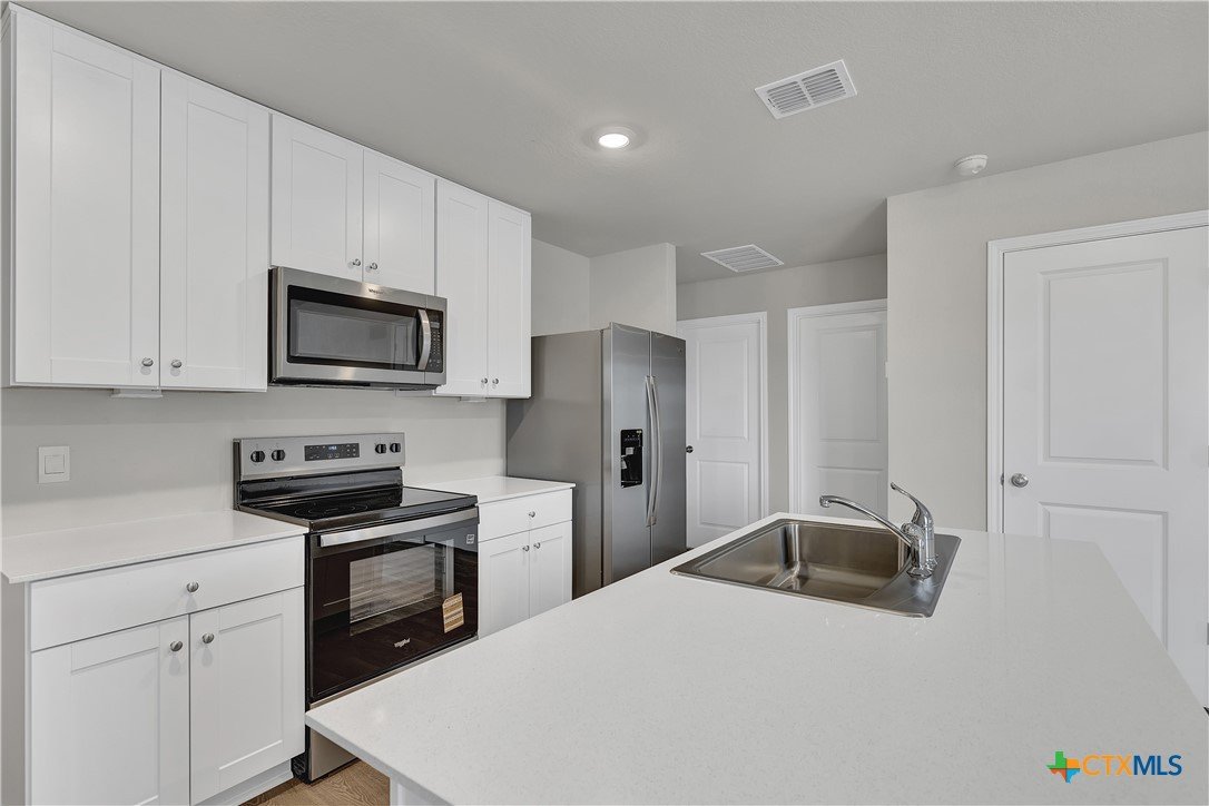 MOVE IN READY! INCLUDES REFRIGERATOR, BLINDS, GARAGE DOOR OPENER, REFRIGERATOR IN ADDITION TO STANDARD APPLAINCE PACKAGE. Check out the Barton, one of our one-story floorplans available at Ladera in Luling, Texas. This 3 bedroom, 2 bathroom home includes a 2-car garage all within 1,280 square feet of comfortable living space. Our homes in Ladera feature a board and batten exteriors. As you enter the home from the front porch, you'll be in the foyer, which includes the utility room and hall closet. Moving further into the home, you'll find the kitchen, dining and family room. Built as an open concept living space, you're sure to make many memories here. The kitchen features an island with a stainless-steel sink, quartz countertops, 42' upper 'picture frame' cabinets, a pantry closet, and stainless-steel appliances. The secondary bedrooms and bathroom are located off the kitchen. The bedrooms include carpet and closets with wood shelving. The secondary bathroom has a shower/tub combination and a cultured marble vanity with trench sink. The primary bedroom is tucked away at the back of the home and includes an attached bathroom. Start your mornings off right in this private space, which includes a walk-in shower, cultured marble vanity with trench sink and a walk-in closet. This home features our America's Smart Home base package, which includes the Video Front Doorbell, Front Door Deadbolt Lock, Home Hub, Thermostat, and Deako Smart Switches.