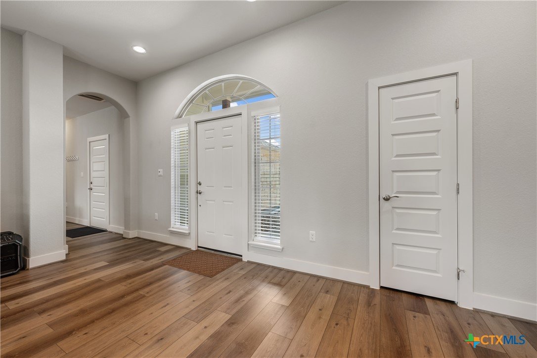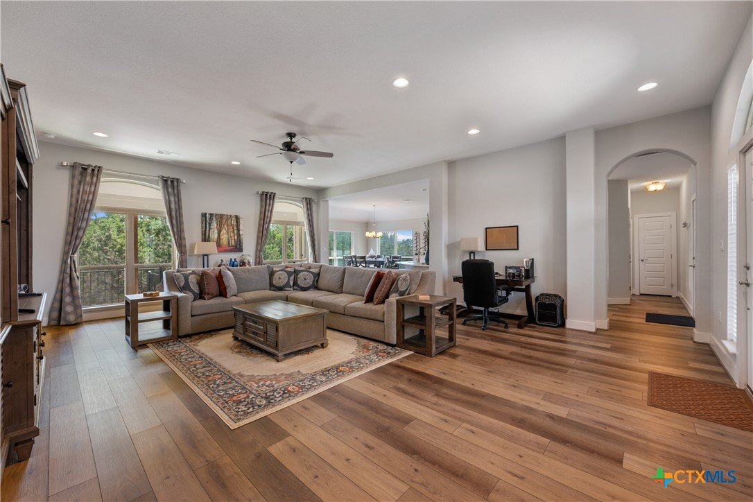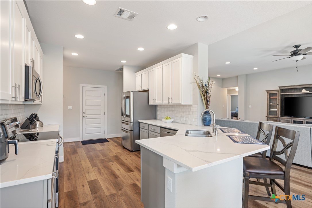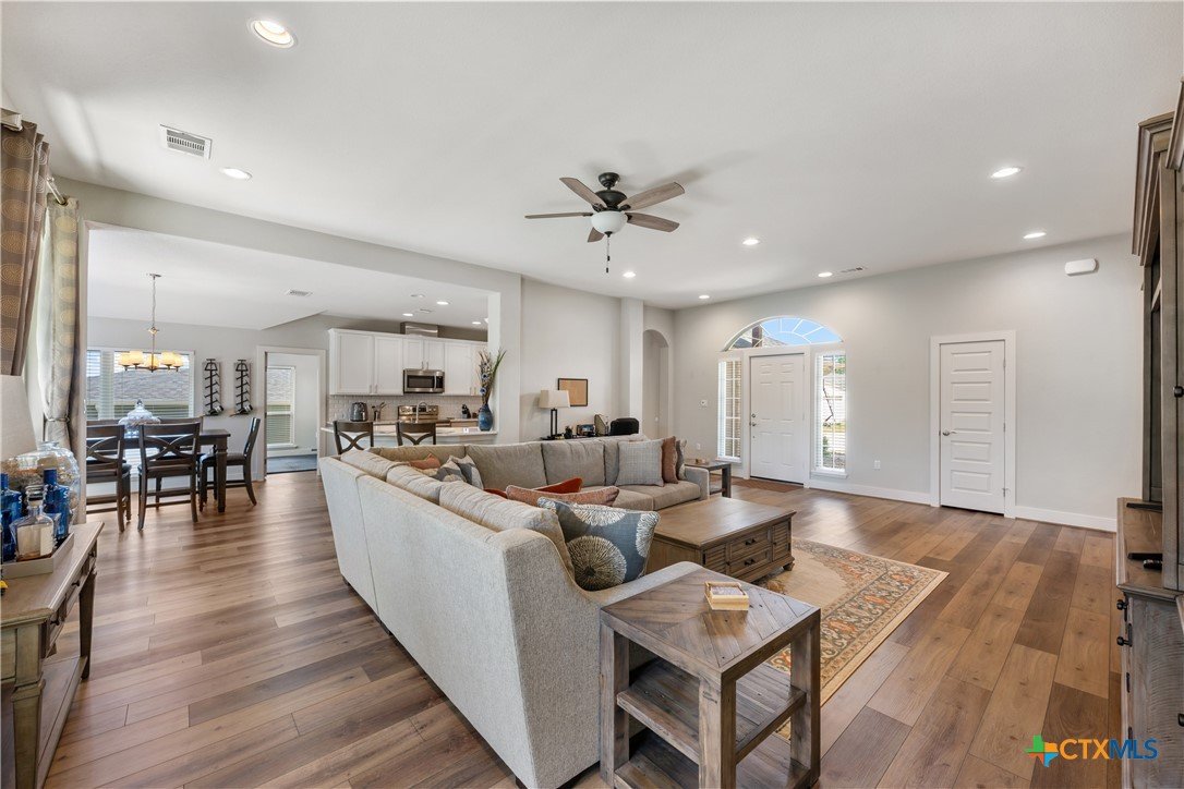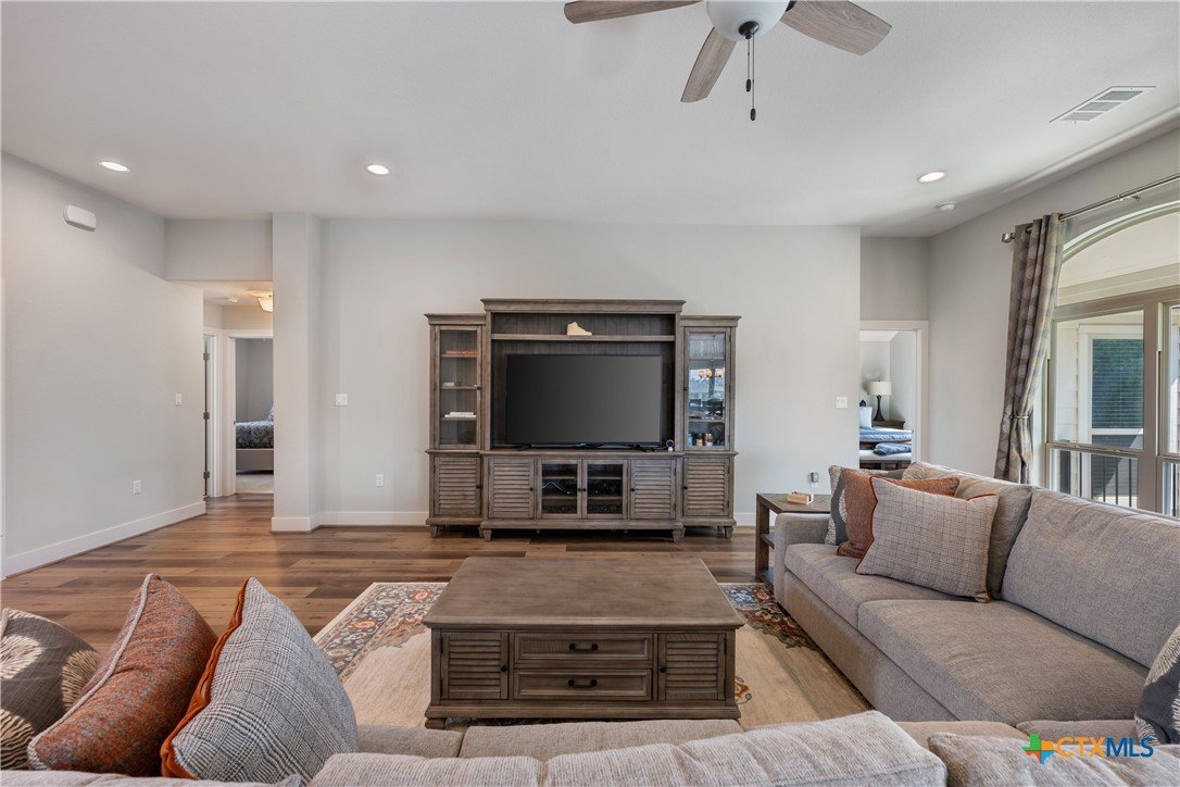 Enjoy the quiet and luxury of Lago Vista in this like-new Aria Custom Home featuring 3 bedrooms, 2 full bathrooms, and an office space. This gently used home asserts comfort from the moment you enter with an oversized living area that flows into the dining space and is partially opened to the extraordinary eat-in kitchen. This space is a culinary artist's delight with beautifully veined quartz countertops, stainless steel appliances, and state of the art Samsung refrigerator. The office is conveniently located just off of the dining area, yet tucked away for privacy. Bask in natural lighting illuminating from the impressively tall cathedral window in the primary bedroom with accompanying bathroom spotlighting a sizeable shower, dual-sink vanity, and separate dressing table. The Lago Vista community is highly sought with its scenic views, various lakes, walking trails, golf courses, and engaging nature. Come out and view this property then make the offer that will make this charismatic house your next home!