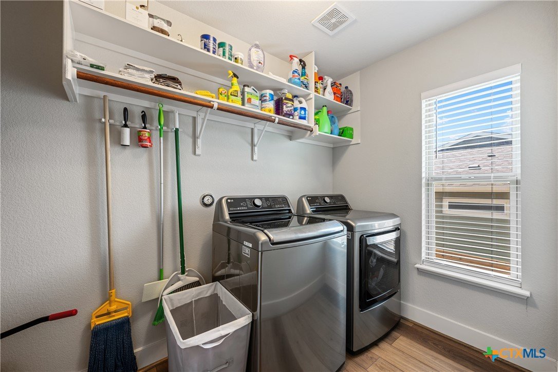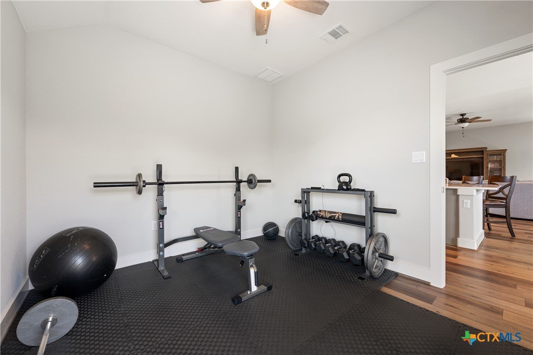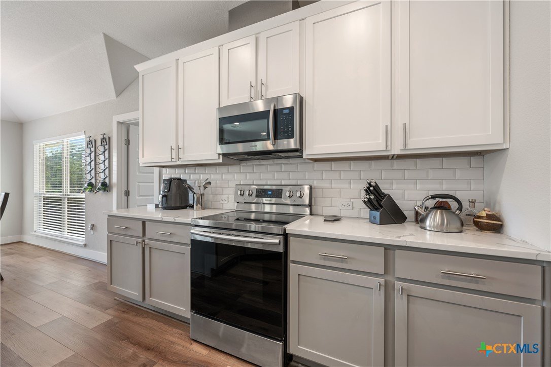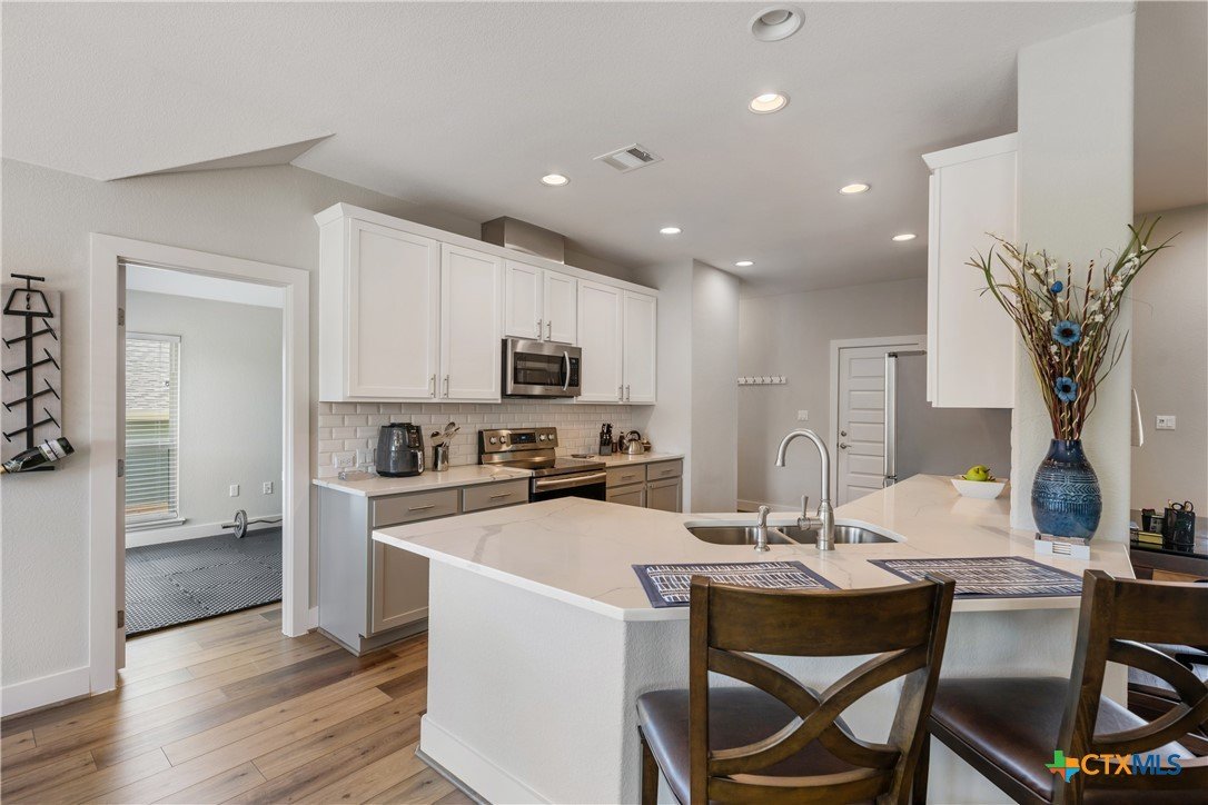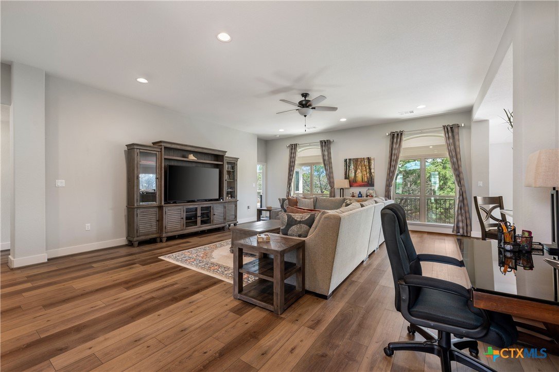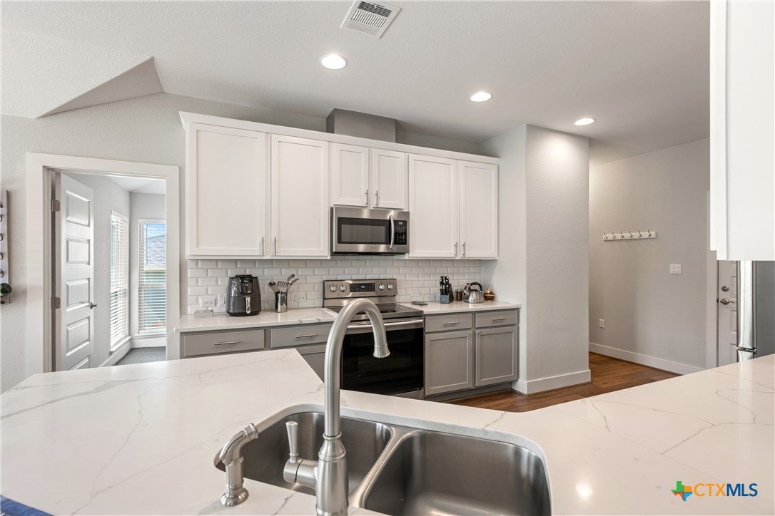 Enjoy the quiet and luxury of Lago Vista in this like-new Aria Custom Home featuring 3 bedrooms, 2 full bathrooms, and an office space. This gently used home asserts comfort from the moment you enter with an oversized living area that flows into the dining space and is partially opened to the extraordinary eat-in kitchen. This space is a culinary artist's delight with beautifully veined quartz countertops, stainless steel appliances, and state of the art Samsung refrigerator. The office is conveniently located just off of the dining area, yet tucked away for privacy. Bask in natural lighting illuminating from the impressively tall cathedral window in the primary bedroom with accompanying bathroom spotlighting a sizeable shower, dual-sink vanity, and separate dressing table. The Lago Vista community is highly sought with its scenic views, various lakes, walking trails, golf courses, and engaging nature. Come out and view this property then make the offer that will make this charismatic house your next home!