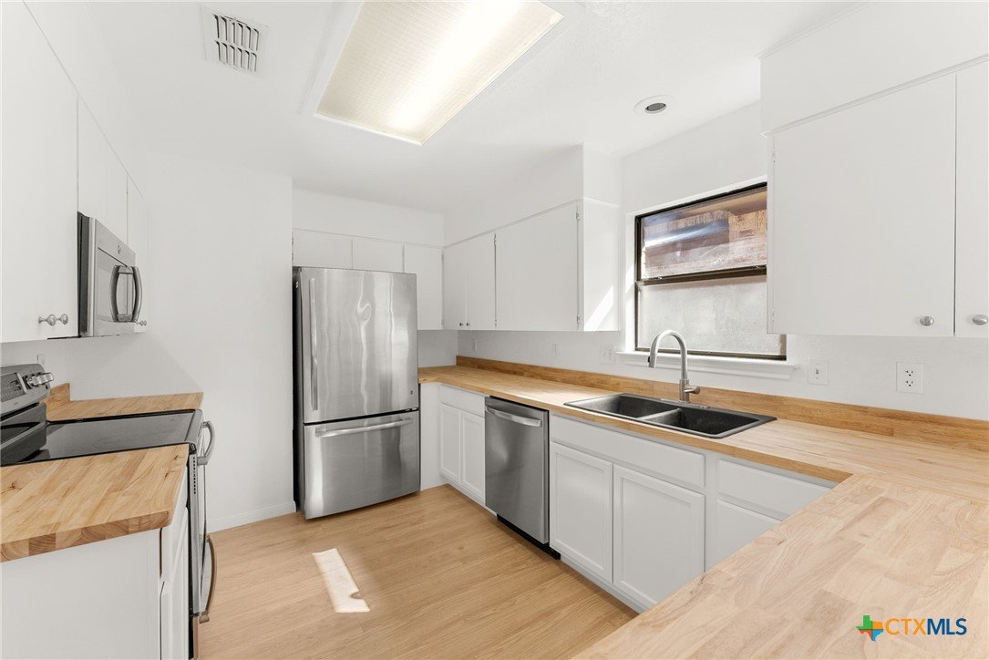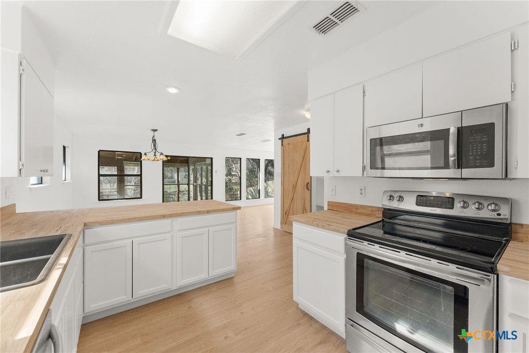 This remodeled 3 bedroom, 2 bathroom home is a chef's dream come true. The spacious kitchen features new appliances, ample counter space, and is perfect for entertaining. The open floor plan flows seamlessly into the living room and creating an inviting atmosphere. An abundance of natural light floods the space through large windows, highlighting the light paint and neutral vinyl plank flooring throughout. The home also features a screened-in sunroom, perfect for relaxing and enjoying the outdoors year round. A small greenhouse attached to the home, ideal for growing your favorite plants. Located in a tucked-away neighborhood with a pool and no direct back neighbors this house embodies a peaceful retreat that you can call home.