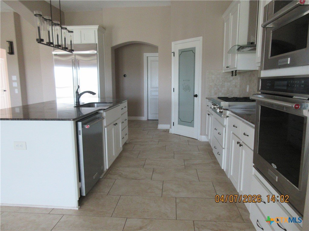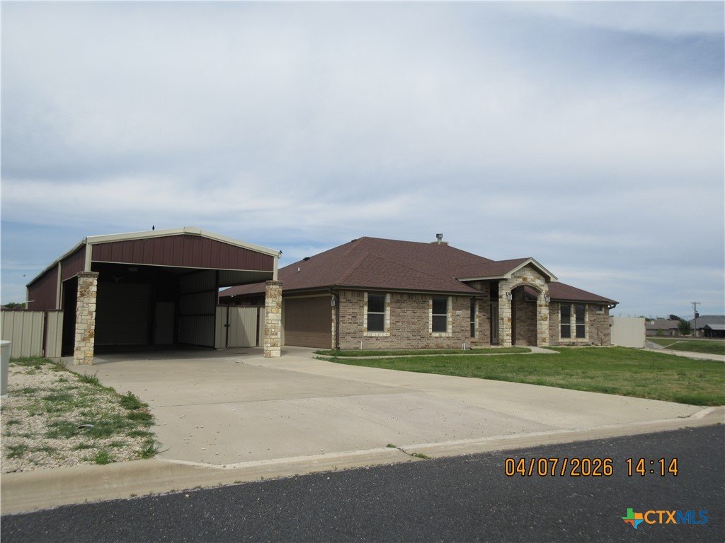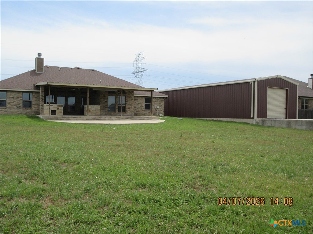 Beautifully maintained and situated on an oversized .60-acre lot, this 2,382 sq ft home in Amity Estates offers abundant space, modern style, and the best of Salado living. Elevated lighting, quality finishes, and an open, layout create a warm and inviting atmosphere throughout. This home features 3 bedrooms, 3 bathrooms, and a Flex room, for 4th bedroom or private study with double closet and built-ins for added functionality. The kitchen showcases granite countertops, stainless steel appliances to include a propane gas range, dishwasher and double oven. The spacious living room is centered around a statement fireplace with attractive built-ins, adding comfort and architectural interest. Step outside to a large patio, offering both covered and uncovered space—ideal for gatherings, grilling, or enjoying the outdoors your way. Property also includes a storage building. And a Huge Workshop / Garage, large enough to park an 18 wheeler or large RV in, perfect for a workshop, gym, studio, or climate-controlled storage. Additional parking pad on the right side for a small RV, Trailer or Boat. Set on a generous lot, there is plenty of room to spread out and enjoy outdoor living. Located in Salado ISD, close to the lake, and offering easy access to I-35, this home combines comfort, convenience, and the serene charm of Salado. Come experience the space, flexibility, and lifestyle this beautiful home provides.