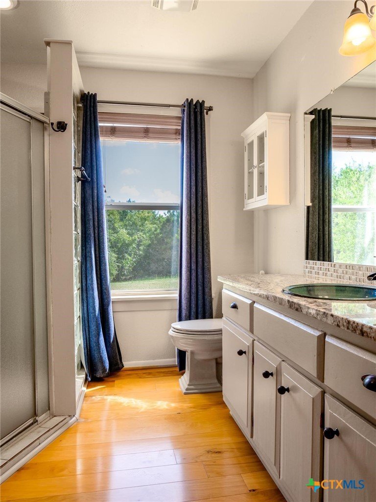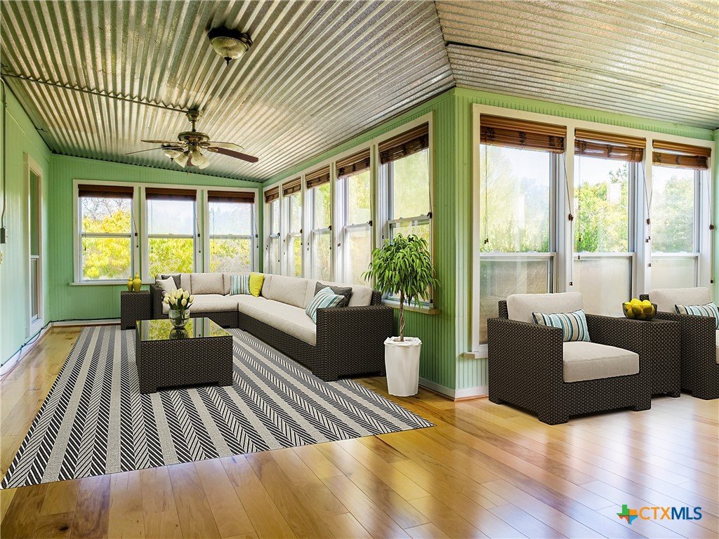 Charming Hill Country Retreat: 3 Bedroom, 2 Bath Home on 1.24 Acres. Discover your dream home nestled in the picturesque Texas Hill Country! This lovely 3-bedroom, 2-bath residence sits on 1.24 acres, offering a perfect blend of serene country living and convenient access to town. Spacious Living: Enjoy an open layout filled with natural light, featuring comfortable living spaces ideal for relaxation and entertaining. The island kitchen boasts Whirlpool appliances, perfect for culinary enthusiasts, and is open to the spacious dining area. This home is equipped with blown-in insulation for energy efficiency, a water softener & Aquasana water filtration system, and a brand new water heater. The large great room with soaring ceilings, and sunroom are perfect for entertaining guests. Mature oak trees provide shade and beauty, while the property is fully perimeter fenced. A dedicated workshop and additional storage building offer ample space for hobbies or projects. The workshop is wired for electricity and can be connected to plumbing, great potential for a small guest house! Enjoy the abundant Texas wildlife from your covered back porch. Situated close to Burnet, you'll enjoy easy access to the town square, grocery stores, schools, and more, all while embracing the tranquility of rural living. This property is a rare find—perfect for those seeking a peaceful lifestyle without sacrificing convenience. Schedule a visit today and experience the beauty and charm of this hill country haven!