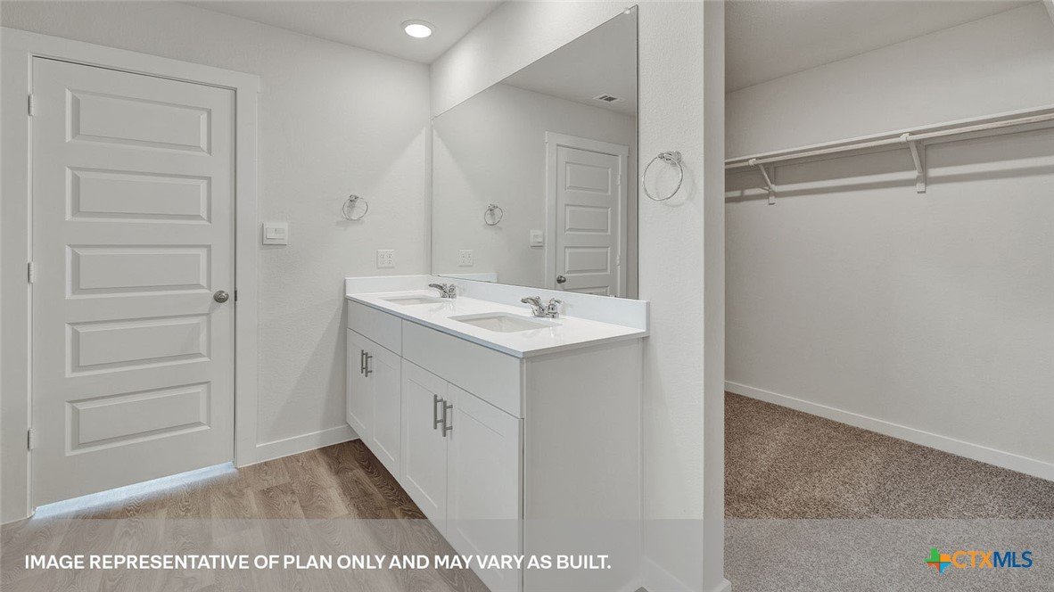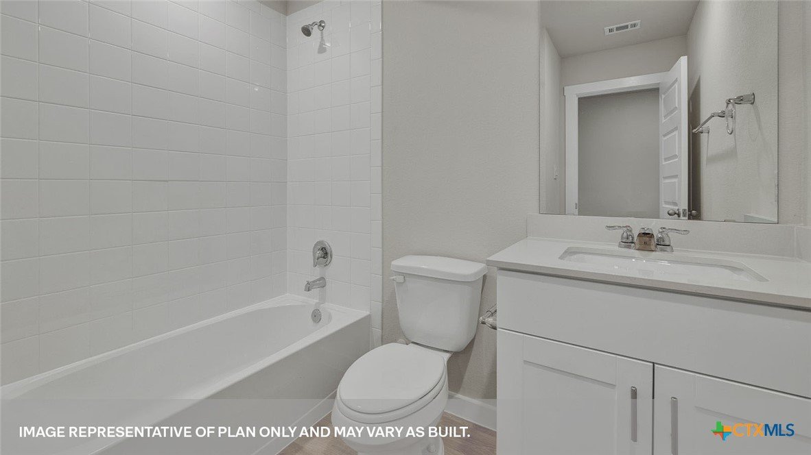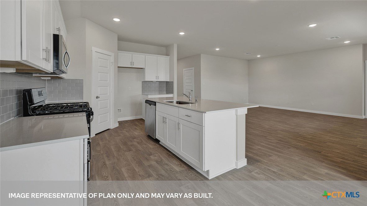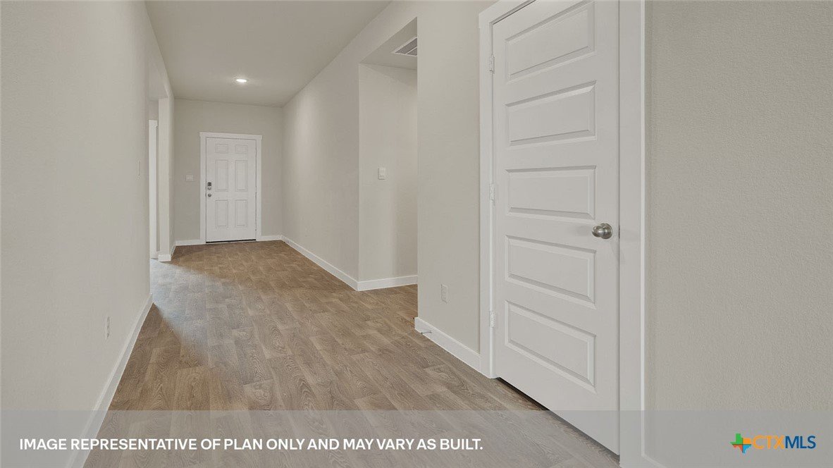 MOVE IN READY BACKS TO GREEN SPACE. INCLUDES REFRIGERATOR, GARAGE DOOR OPENERS, BLINDS AND WASHER DRYER. Introducing one of our newest floorplans, the Fairfield, at Hartland Ranch in Lockhart, Texas. This thoughtfully designed one-story home includes 4 bedrooms and 3 bathrooms within 2,168 square feet of living space. This floorplan features a 3-car garage. Enter the home from the covered front porch, and you’ll find yourself in the spacious foyer. Two secondary bedrooms with a hall bathroom are located off the foyer. As you proceed down the long foyer to the open living space, you’ll pass a hallway that leads to the utility room, garage entrance, and an extra bedroom with an attached bathroom. Both secondary bathrooms include a shower/tub combination. At the heart of the home is the family room, kitchen and dining room. Built as an open concept design to make cooking, eating, and entertaining a pleasant experience for family and friends. The L-shaped kitchen includes an island with undermount sink, quartz countertops, decorative tile backsplash, a corner pantry closet, stainless-steel appliances and 36’’ upper cabinets. The main bedroom is off the family room. This spacious and private ensuite is perfect for stretching out and relaxing at the end of your day. The attached bathroom includes a 5’ walk in shower, raised cultured marble vanity with double sinks, private toilet area with a door, and an oversized walk-in closet. The Fairfield includes vinyl flooring throughout the common areas of the home and the primary bedroom, and carpet in the secondary bedrooms. All our new homes feature a covered back patio, full sod, an irrigation system in the front and back yard, and full gutters. This home includes our America’s Smart Home base package, which includes the Front Doorbell, Front Door Deadbolt Lock, Home Hub, Thermostat, and Deako® Smart Switches.