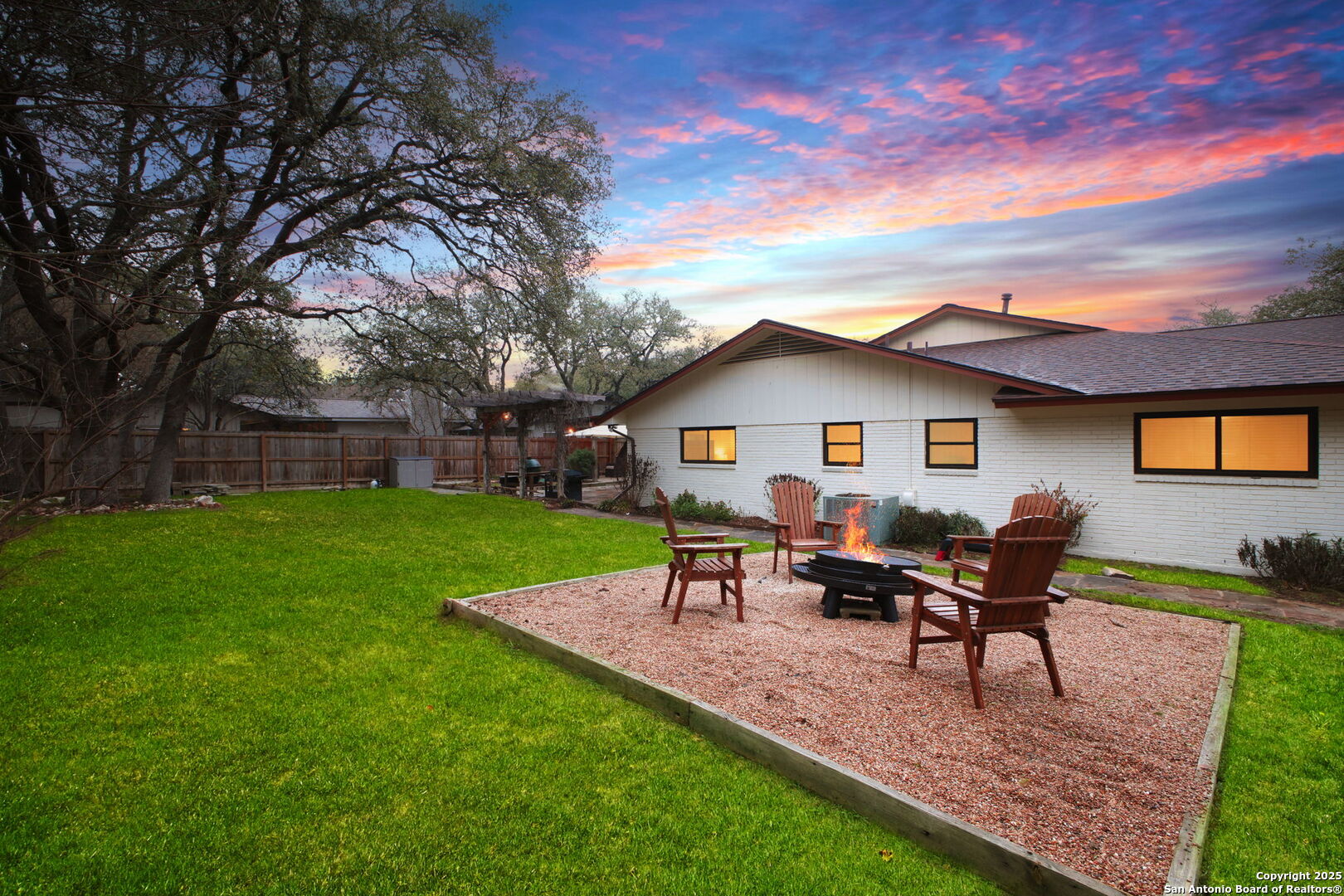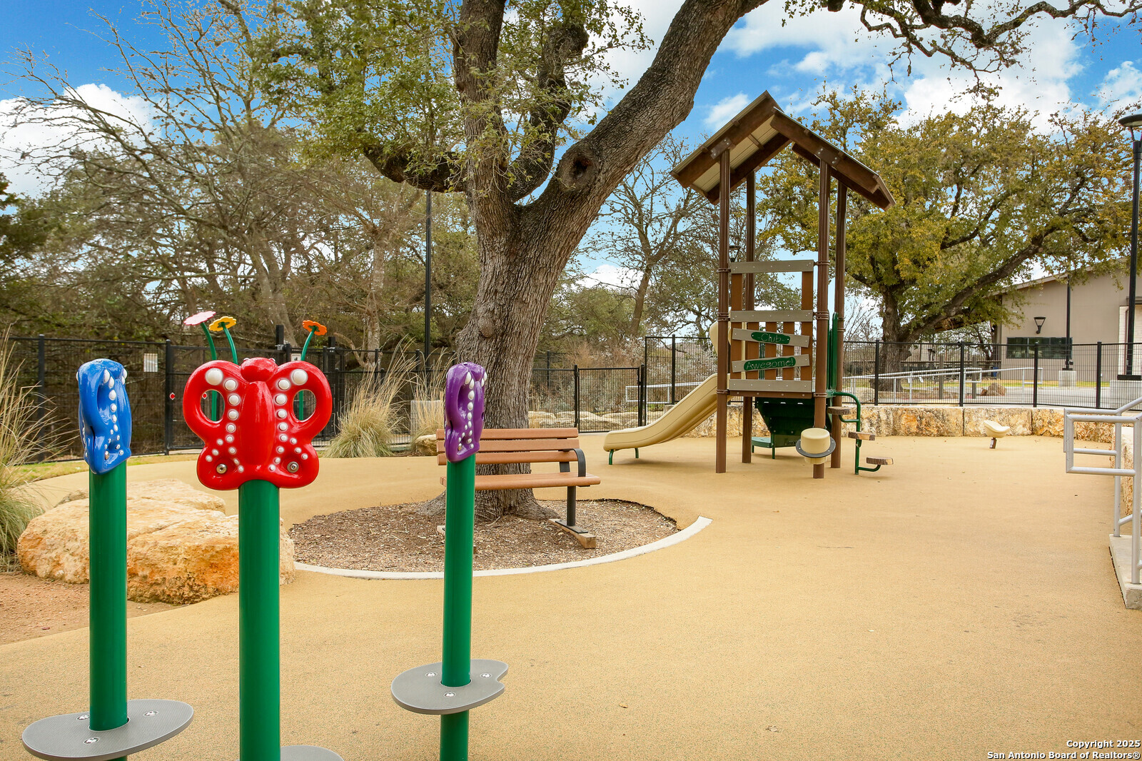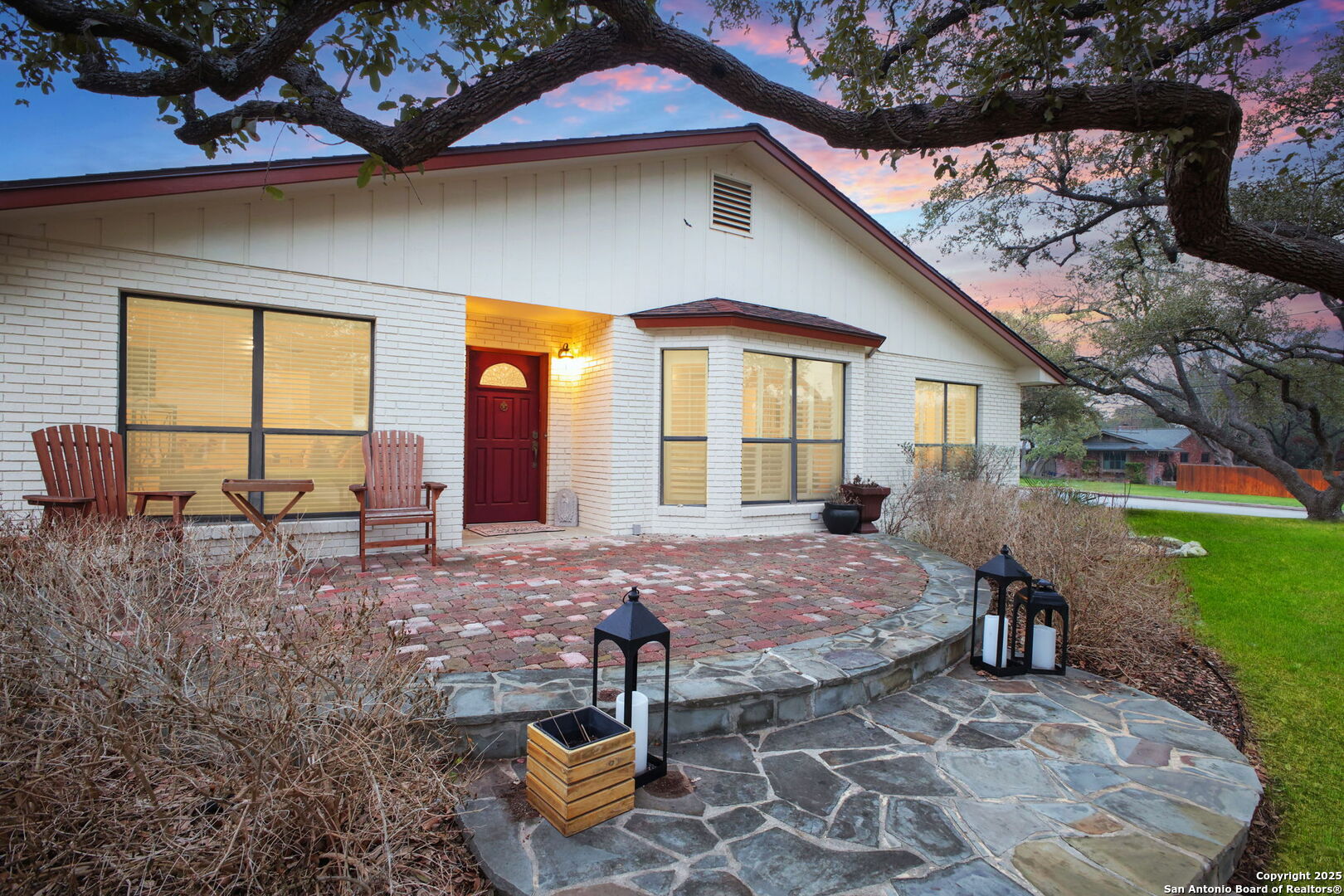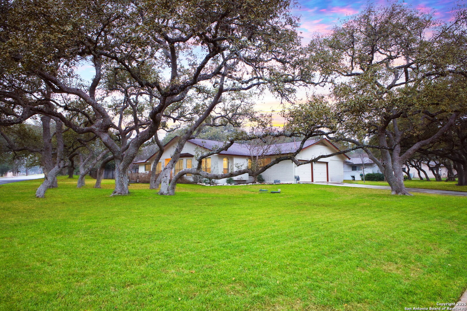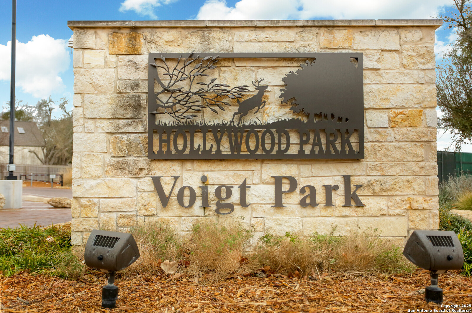 Hollywood Park true one story beauty, sitting on a corner lot with stunning oaks on park like grounds. Three bedrooms, office, large living area with huge kitchen! Two car garage, iron fence, spacious backyard with multiple sitting areas. The prime example of the ultimate spirt of community ,the town of Hollywood Park offers spectacular amenities that include the Voigt Center, playground, splash pad, pool, tennis, volleyball and basketball court. Golf cart friendly neighborhood with accessible path to Sonterra Country Club. No Mandatory HOA. Award winning N.E.I.S.D. schools. Easy access to HWY 281, LOOP 1604, 410 & just 15 minutes from downtown San Antonio.