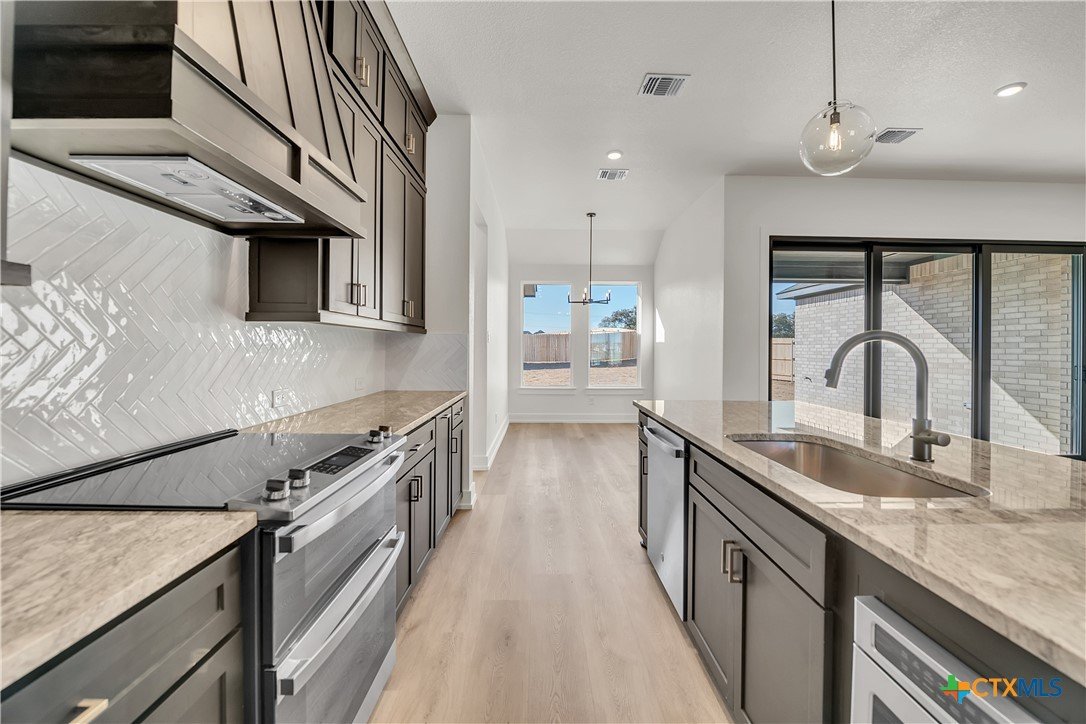 Step into your dream home with the stunning Big Pine Creek floor plan, crafted with care by Flintrock Builders. This thoughtfully designed home offers: - 4 spacious bedrooms for comfort and privacy - 3 full bathrooms for convenience - A 3-car garage providing ample space for vehicles and storage - A large lot perfect for outdoor living The backyard is a true oasis, featuring a full irrigation system to keep your lawn lush and green. Some of the many Interior Features include Luxury vinyl plank flooring in the main living areas, offering durability and style. Plush carpet in the bedrooms for added coziness. A kitchen that wows with: - Granite countertops - Custom decorative Vent Hood - Top-of-the-line stainless steel appliances: - Dishwasher - Built-in microwave in the island - Garbage disposal - Electric oven/range This home is designed with both functionality and modern elegance in mind. Don’t miss the opportunity to own this incredible property!