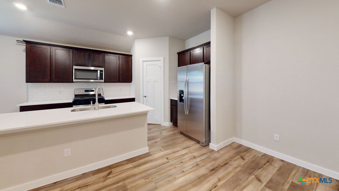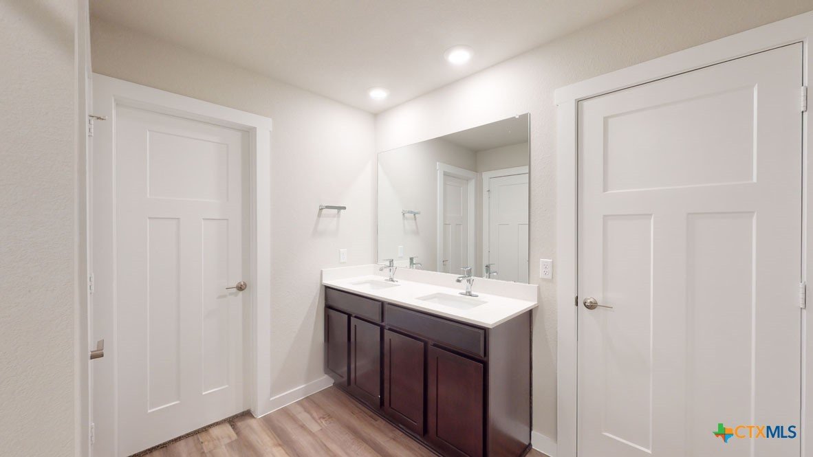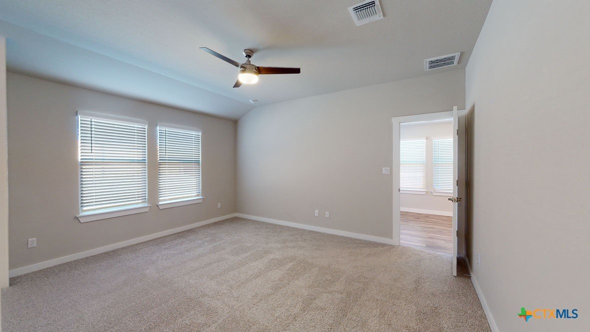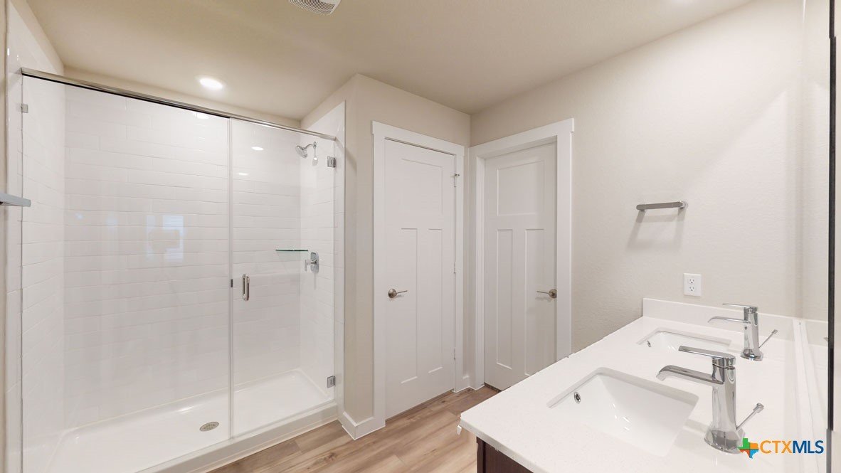 Welcome to the Baxtor floorplan at Yowell Ranch in Killeen, Texas, where every square foot is sophisticated and comfortable. You’ll be calling the approximately 1,409 square foot, single-story, 2-car garage, and covered patio your new home. The 3-bedroom, 2-bathroom floorplan is perfect for you with the open concept living area. The kitchen, dining area, and living area blends seamlessly. You will find beautiful shaker-style cabinetry and granite countertops in the kitchen. The kitchen also includes a breakfast bar and corner pantry. The secondary bedrooms are cozy and carpeted, with plenty of closet space, with the secondary bathroom between the rooms. Enjoy the indoor access to the garage, next to the laundry room. The primary bedroom will make you feel right at home, with an attached primary bathroom and walk-in closet. Each of our D.R. Horton homes has smart home technology built in. With the smart home technology, you’ll never be far from home. Come say hello and see why you will want to make the Baxtor floorplan your new home! The spacious primary bedroom has an attached bathroom, making it a cozy, separate space for you. The primary bathroom has a double vanity and large walk-in closet. Contact us today to learn more about the Baxtor floorplan!