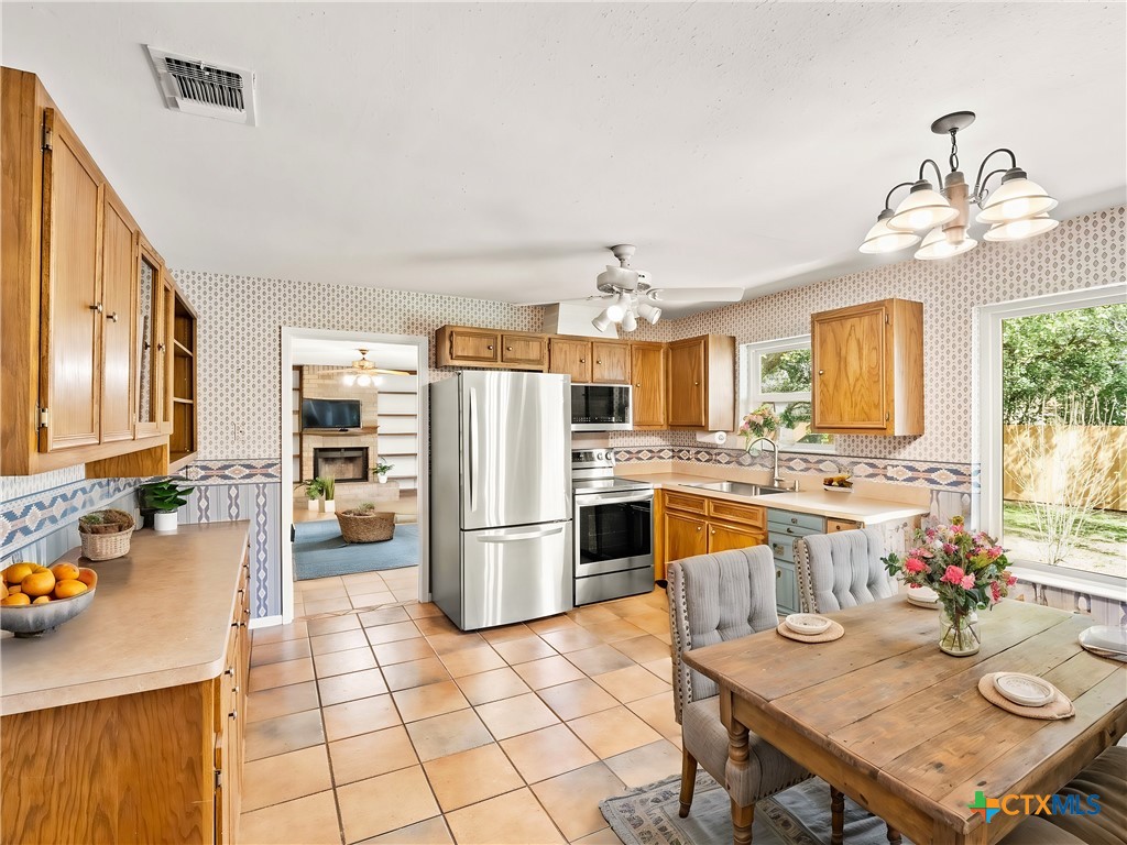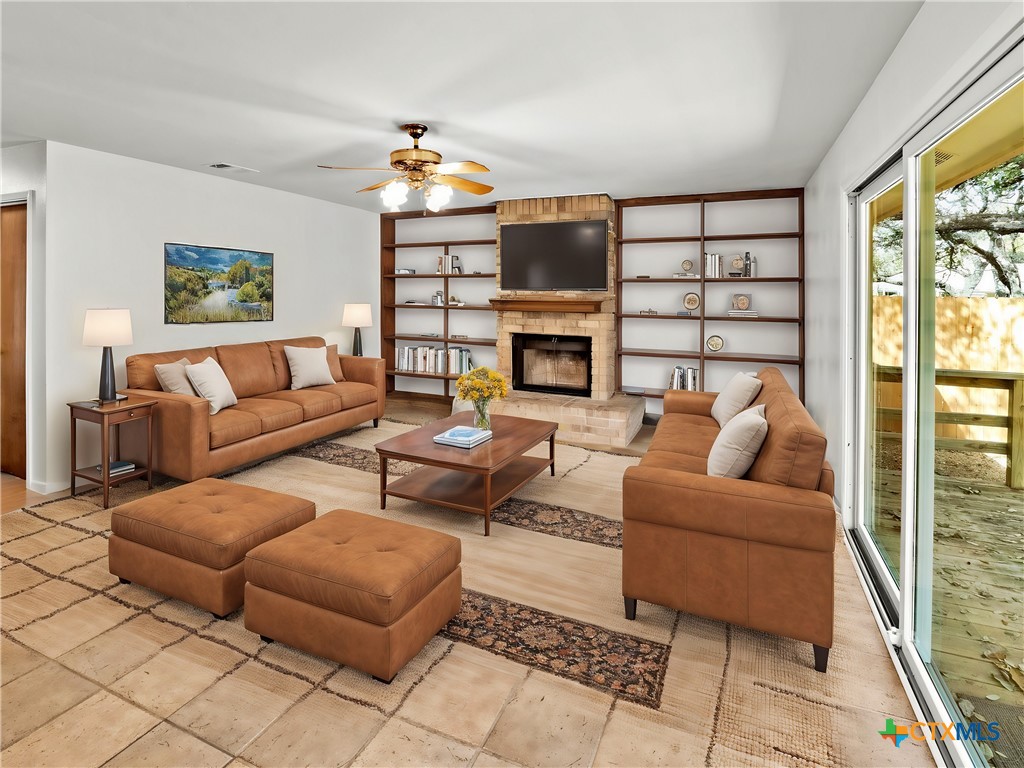 Proud owners maintained this beautiful 3-bedroom, 2-bath home on a private .42-acre lot in the desirable Serenada Estates neighborhood of Georgetown, TX, offering historic charm and modern amenities at a rock bottom price—IDEAL for a CASH BUYER! The inviting living room features a wood-burning fireplace, built-ins, and modern sliding glass doors with peaceful yard views. The kitchen boasts stainless steel appliances, A 2025 microwave, bottom-freezer fridge, ample counter/storage space, plus washer and dryer. Enjoy wildlife in the expansive backyard through a contemporary window in the cozy breakfast area. Additional updates include 2025 Roof, Fence and interior paint! The bright primary bedroom offers an en-suite bath with a traditional shower/tub combo and luxury white tile. The converted garage adds extra living space for work or play. Step outside to a large deck overlooking the fully fenced yard, mature oaks, with room for gardening, a private pool, or dog run. Perks include Georgetown city water two driveways for RV parking with 2 storage sheds. With potential for an Airbnb or peaceful retreat, this home offers comfort, functionality, and expansion opportunities. Walk to Georgetown Tennis, minutes to shopping, and under 4 miles to Lake Georgetown. $1.81 taxes, NO HOA! Don't Miss out on this one! FLOORPLAN ILLUSTRATION PROVIDED - COUNTY (1361SQFT COUNTY) DOES NOT SHOW GARAGE CONVERSION BUYER MUST VERIFY