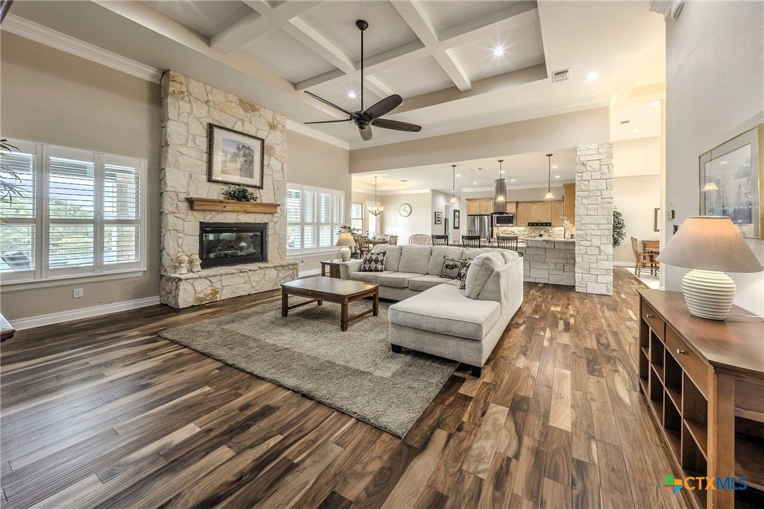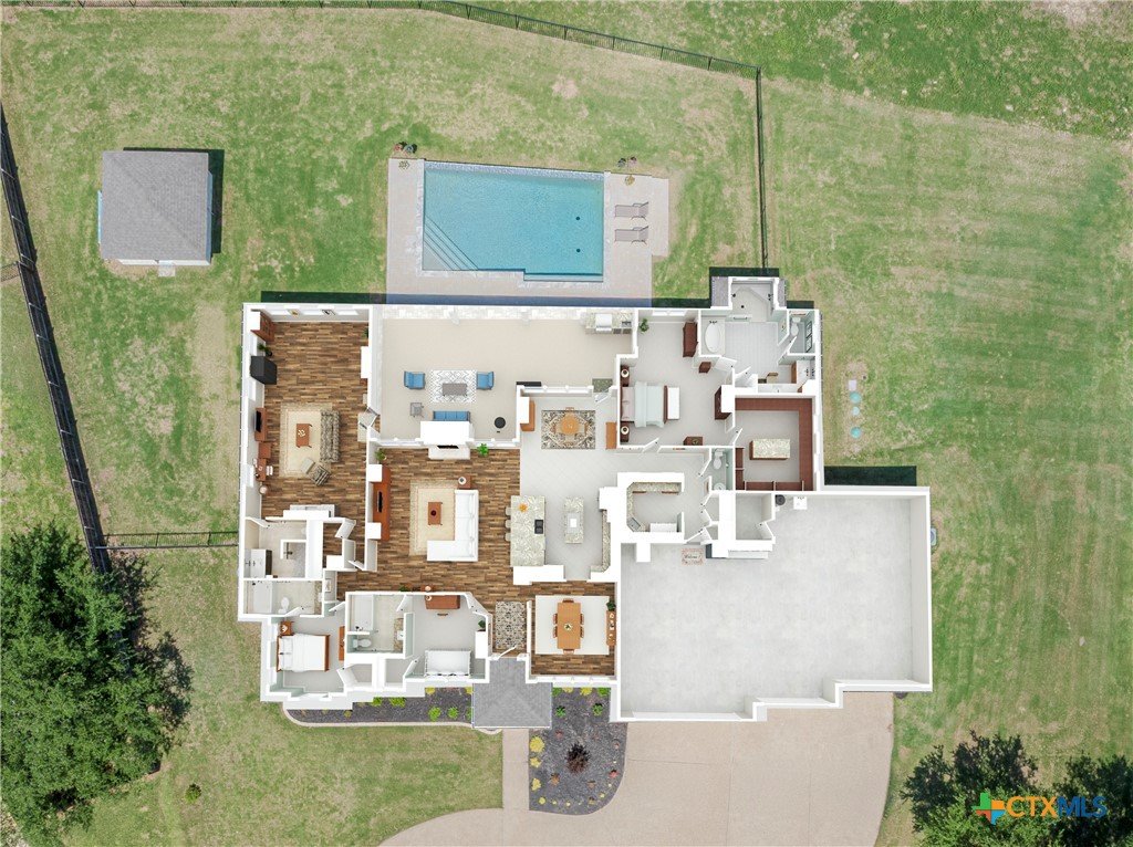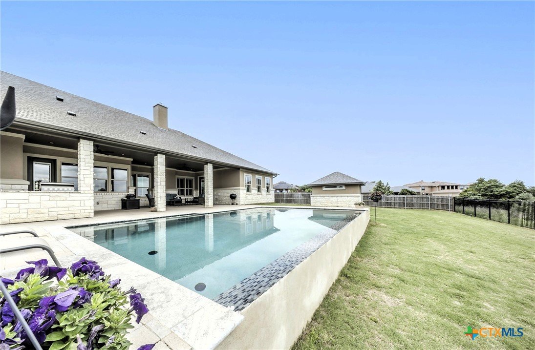 Nestled in the rolling hills of Nolanville, TX, sits this stunning luxury home in gated Bella Charca. At 4013 Turning Leaf Drive, luxury living meets the beauty of nature. Designed with a seamless connection to its breathtaking surroundings, this home captures sweeping views of the Texas Countryside, offering serenity and sophistication in every direction. Step inside to discover a thoughtfully designed 3182 sqft floor plan with four bedrooms, where every bedroom is a private suite, providing comfort and retreat for family and guests alike. Expansive windows frame the picturesque landscape, filling each space with natural light and showcasing panoramic views that change with the seasons. The heart of the home opens to an outdoor oasis that rivals resort-style living. A large infinity-edged pool paired with a large, covered porch and outdoor kitchen creates the perfect vantage point to soak in the horizon, blurring the lines between nature, water, and sky. Whether hosting gatherings or savoring quiet sunsets, the setting is ideal for relaxation and entertainment. With refined finishes, private bedroom retreats, unparalleled access to nature’s beauty, and a 1200 sqft 4-Car garage, this property embodies the best of upscale Texas living. 4013 Turning Leaf Drive is more than a home—it’s a lifestyle of elegance, comfort, and timeless views. Don’t let this opportunity pass you by – Call today for a private showing!