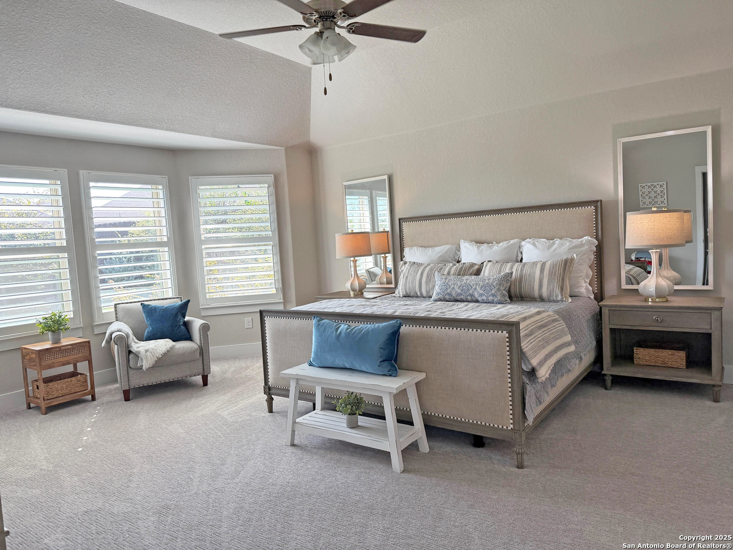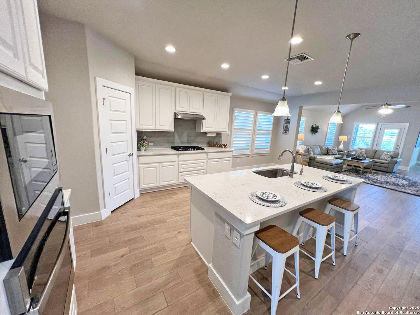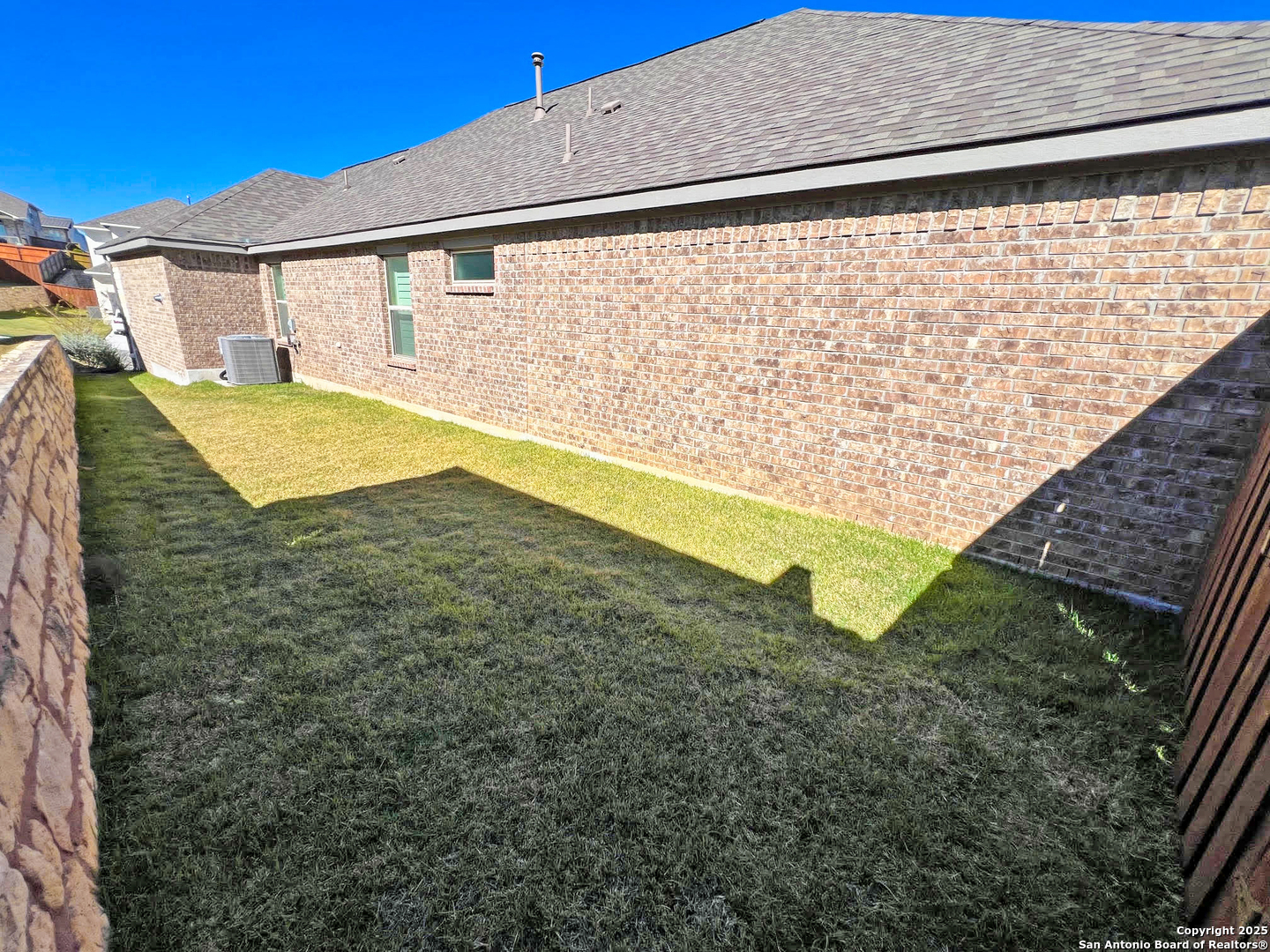 Upgrades Galore! Built in 2022, this stunning one-story home features 3 bedrooms plus two additional flex or study rooms, offering versatile living across 2,180 sqft in sought after gated Cibolo Canyons Monteverde. Plantation shutters have been professionally installed throughout the house, adding style and privacy. Relax or entertain in professionally landscaped front and back yards, with a leveled backyard, French drain, artificial turf, flowering trees and shrubs, and a widened driveway, creating a stunning, low-maintenance outdoor oasis you can enjoy year-round. The backyard includes an extended patio and landscape lighting. Additional upgrades include a convenient side dog run, flagstone walkway, and professionally finished garage flooring, ideal for a home gym. Security and convenience are enhanced with a professionally installed alarm system featuring security cameras, as well as a water softener and reverse osmosis system for the entire home. Wood-look tile flows through the main areas, and the kitchen shines with custom cabinetry, marble and quartz countertops. Stylish open space floorplan allowing plenty of natural light. The spacious master suite features an elegant bay window sitting area, walk in closet, and a modern shower with floor to ceiling tile. Community amenities include two recreation centers with resort style pools, lazy river, splash zones, fitness facilities, playgrounds, and miles of scenic nature trails. Minutes from Hwy 281, shopping, dining, medical centers, and premier golf courses. This is an incredible opportunity to own a "like new" home with premium high end finishes and top of the line upgrades. All the style, versatility, upgrades, and location you want in one dream home.. Don't miss this one!