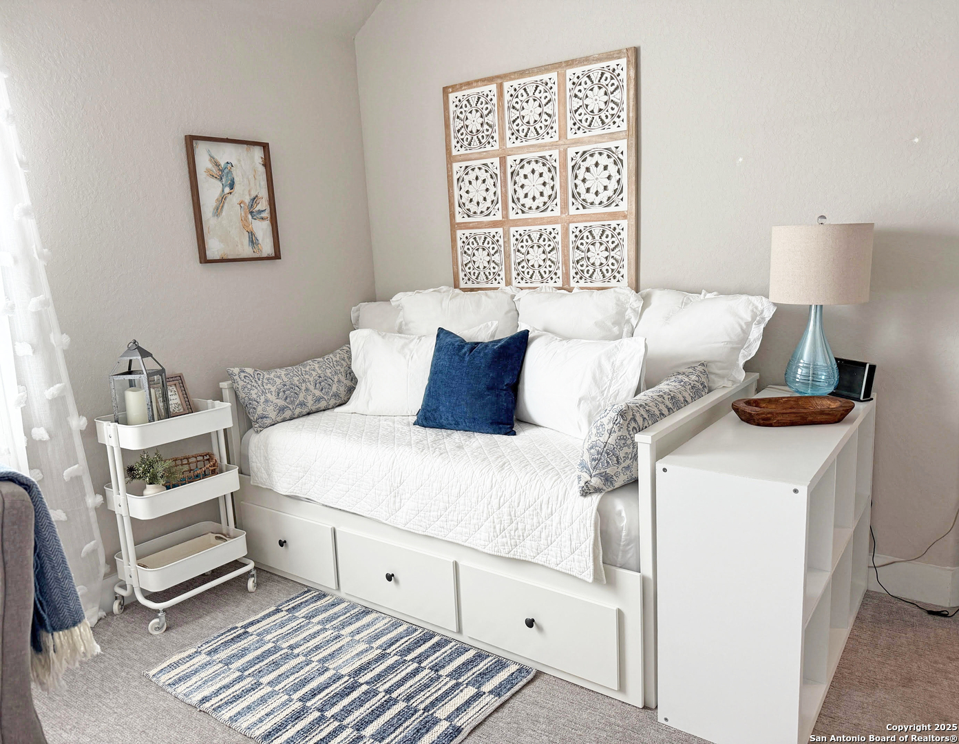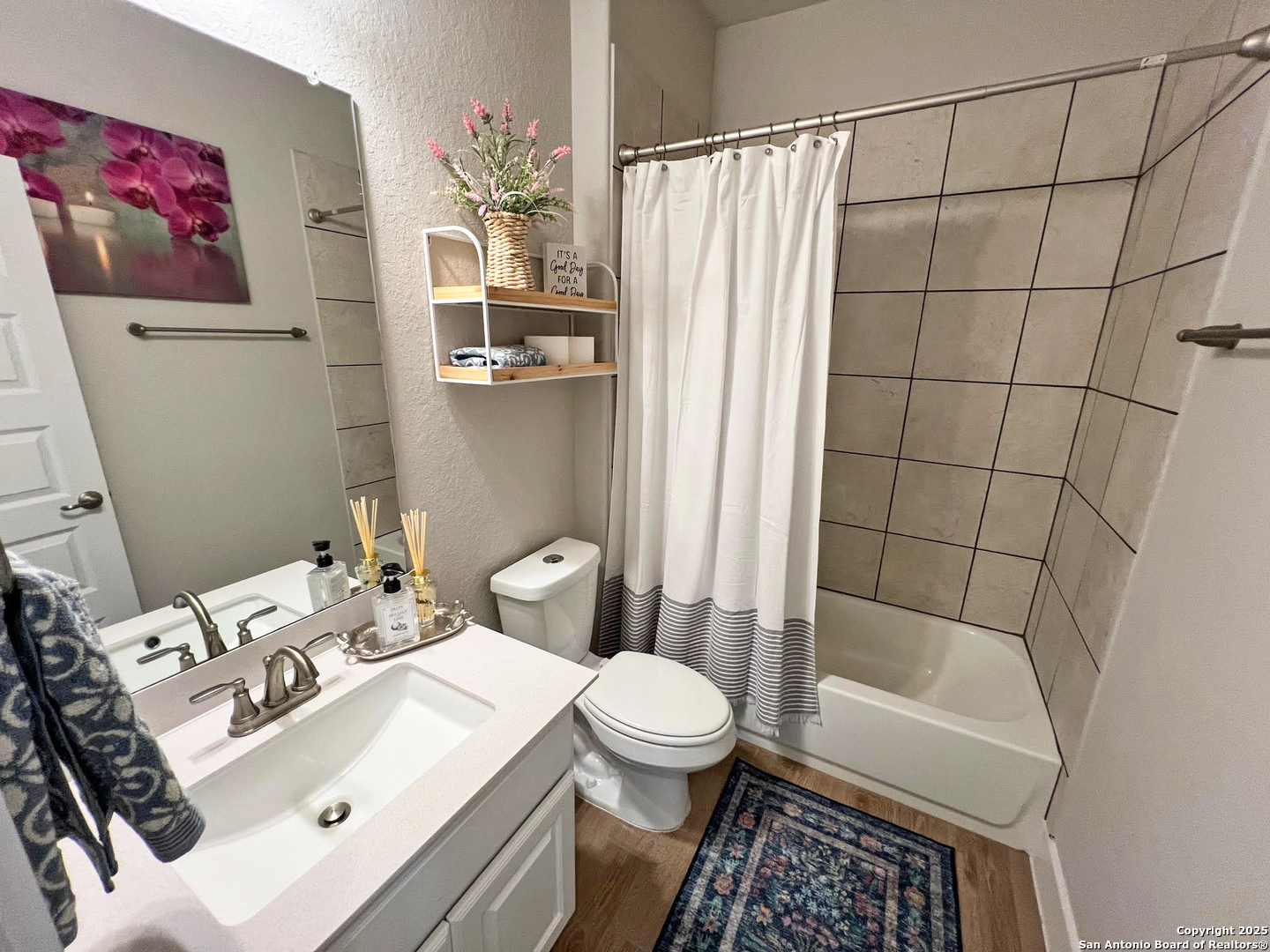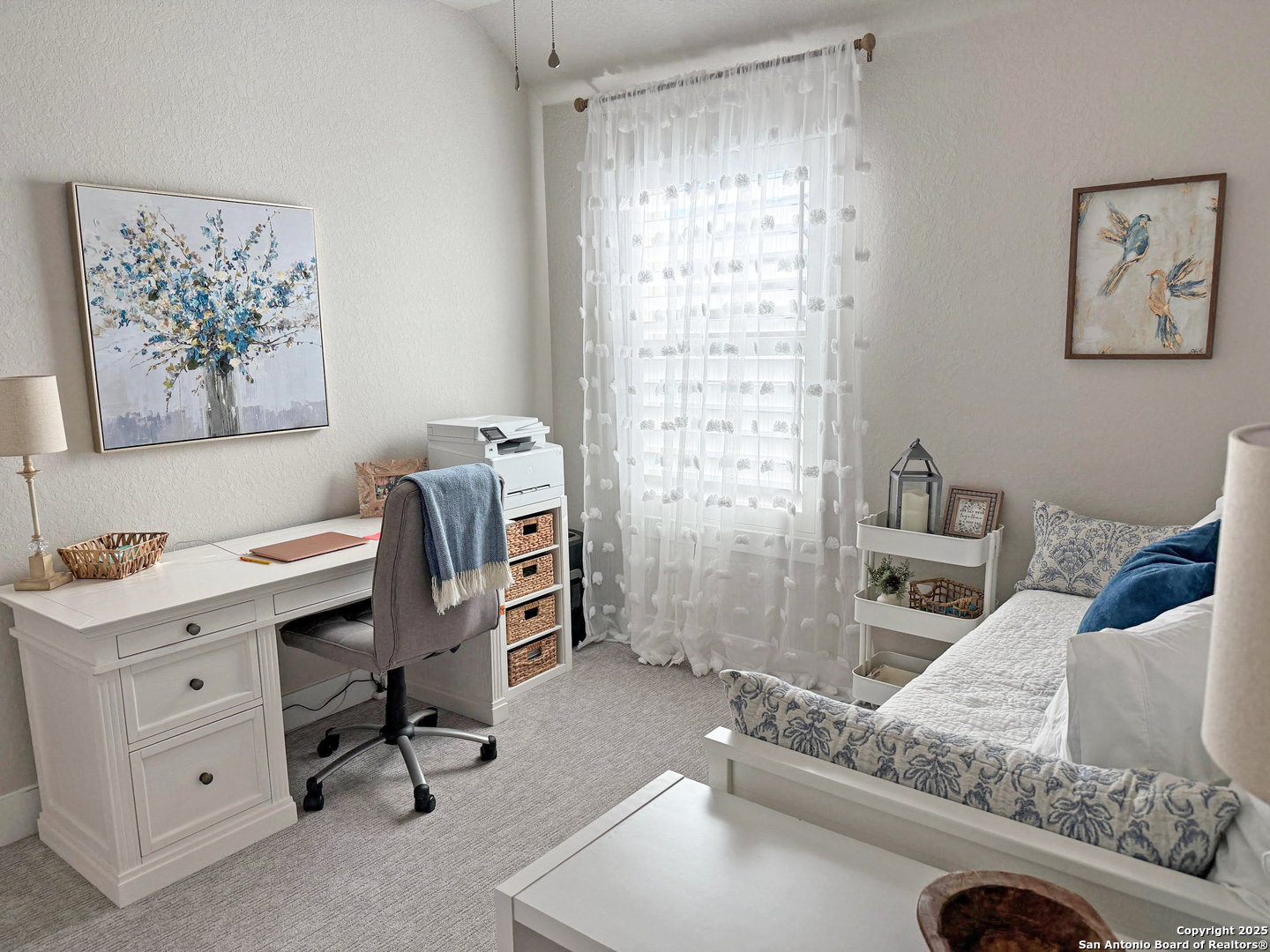 Upgrades Galore! Built in 2022, this stunning one-story home features 3 bedrooms plus two additional flex or study rooms, offering versatile living across 2,180 sqft in sought after gated Cibolo Canyons Monteverde. Plantation shutters have been professionally installed throughout the house, adding style and privacy. Relax or entertain in professionally landscaped front and back yards, with a leveled backyard, French drain, artificial turf, flowering trees and shrubs, and a widened driveway, creating a stunning, low-maintenance outdoor oasis you can enjoy year-round. The backyard includes an extended patio and landscape lighting. Additional upgrades include a convenient side dog run, flagstone walkway, and professionally finished garage flooring, ideal for a home gym. Security and convenience are enhanced with a professionally installed alarm system featuring security cameras, as well as a water softener and reverse osmosis system for the entire home. Wood-look tile flows through the main areas, and the kitchen shines with custom cabinetry, marble and quartz countertops. Stylish open space floorplan allowing plenty of natural light. The spacious master suite features an elegant bay window sitting area, walk in closet, and a modern shower with floor to ceiling tile. Community amenities include two recreation centers with resort style pools, lazy river, splash zones, fitness facilities, playgrounds, and miles of scenic nature trails. Minutes from Hwy 281, shopping, dining, medical centers, and premier golf courses. This is an incredible opportunity to own a "like new" home with premium high end finishes and top of the line upgrades. All the style, versatility, upgrades, and location you want in one dream home.. Don't miss this one!