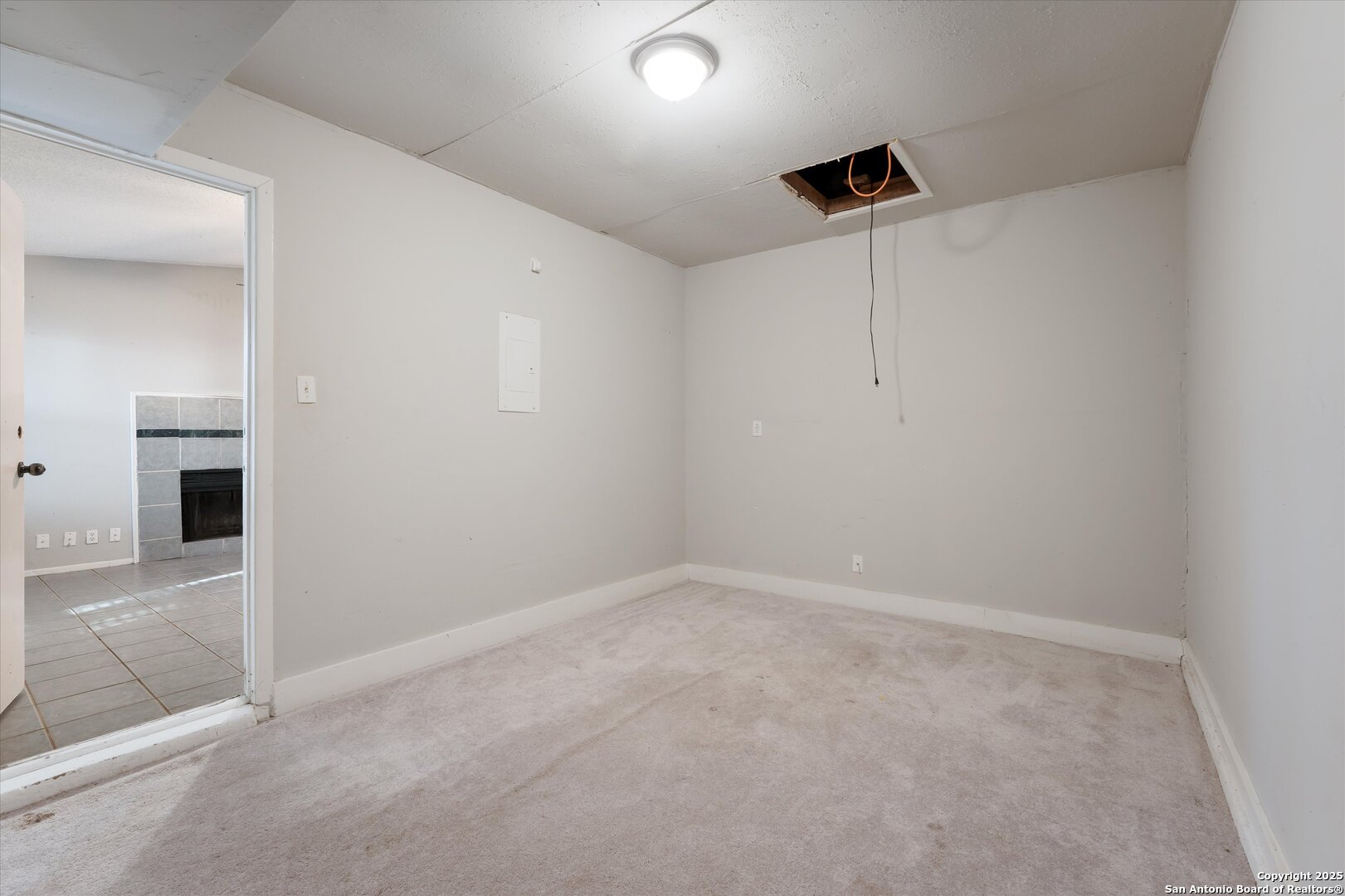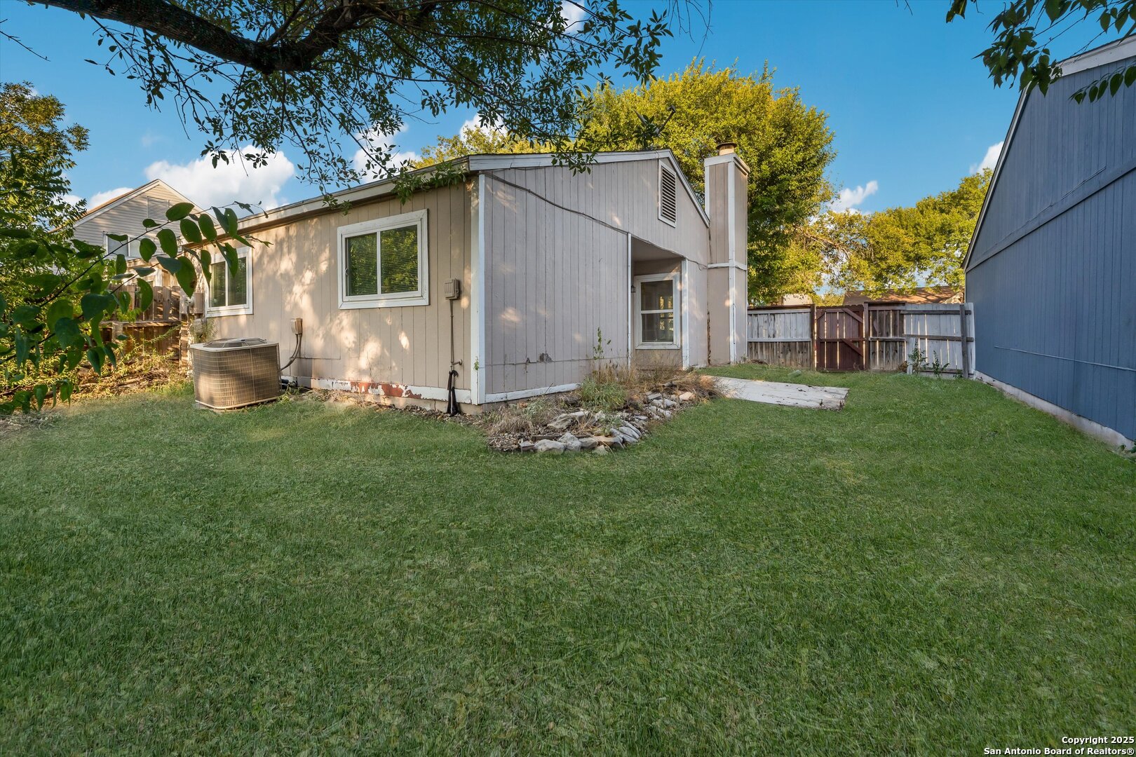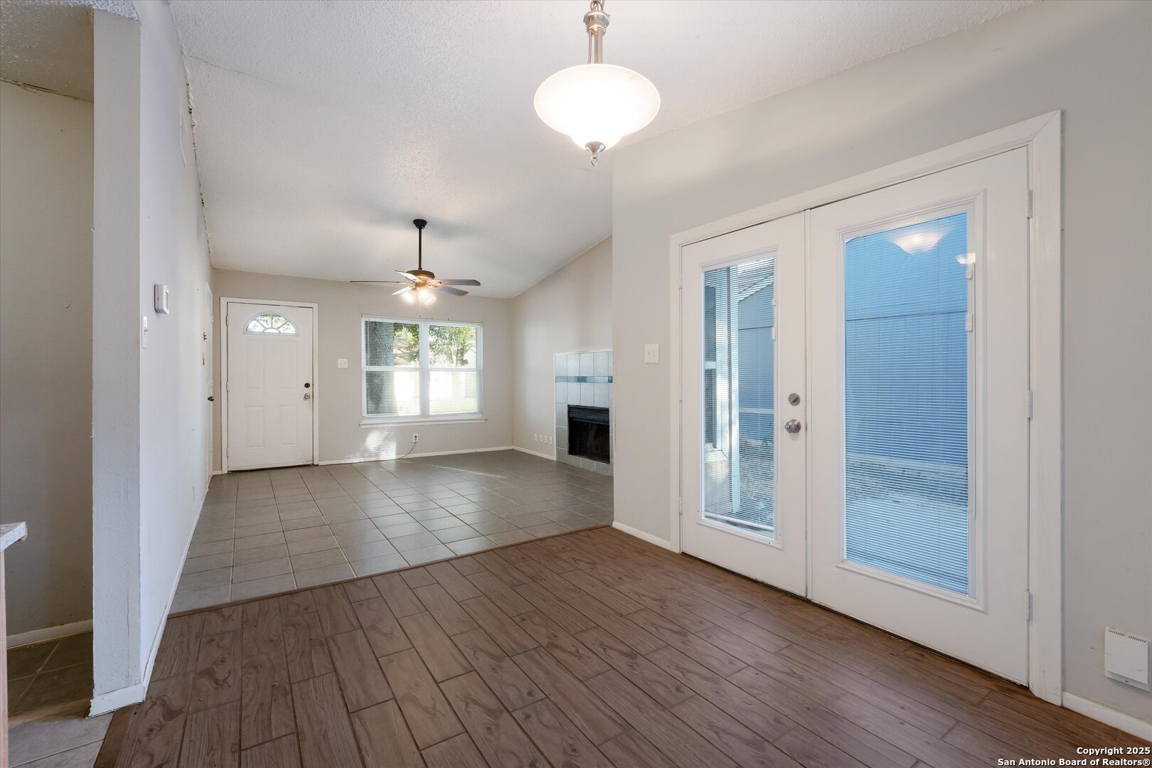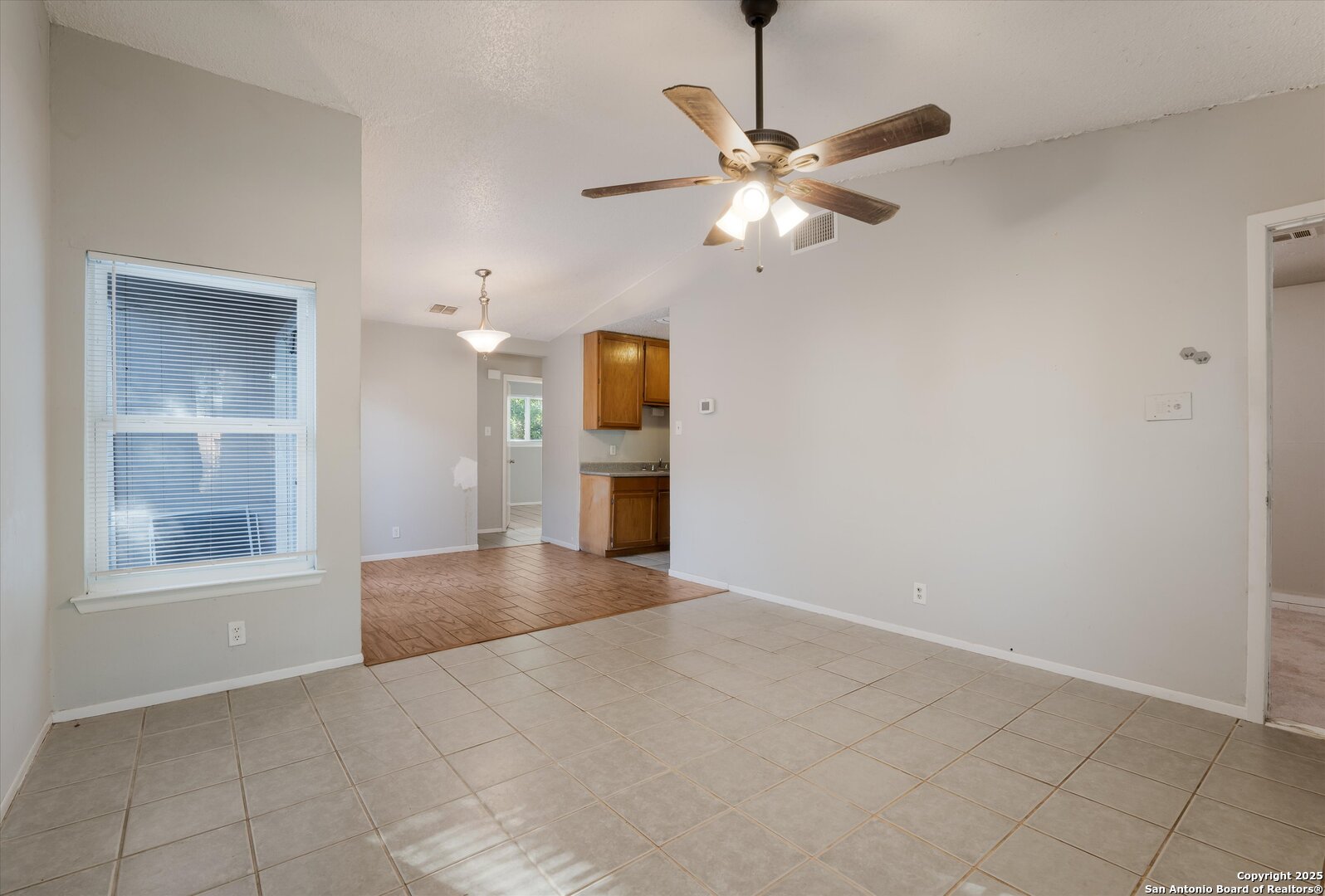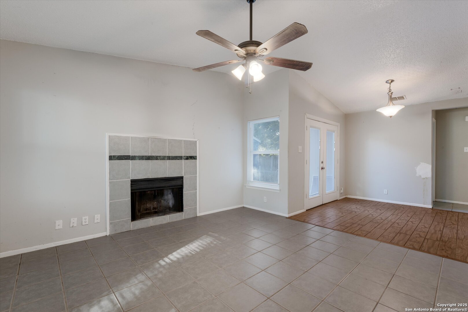Investor special priced $60K below Bexar County appraisal! This 2-bedroom, 1-bath home includes a converted garage adding a 15x10 bonus room while still offering storage space. With no HOA, you have the freedom to customize the property as you wish. The open floor plan features vaulted ceilings, a spacious living area, separate dining room with a cozy fireplace, galley kitchen, and French doors that open to a private backyard patio. Additional highlights include ceiling fans, a laundry room, level backyard with a privacy fence, mature trees, and a prime location just minutes from major highways and only 20 minutes from Randolph Air Force Base. The home needs some work but offers strong value and potential for a great return on investment.