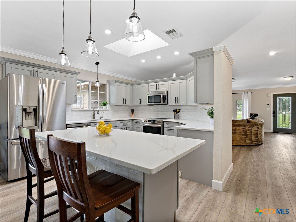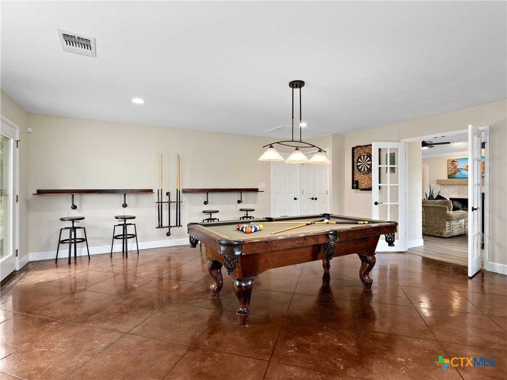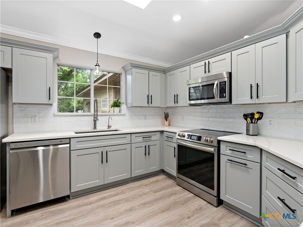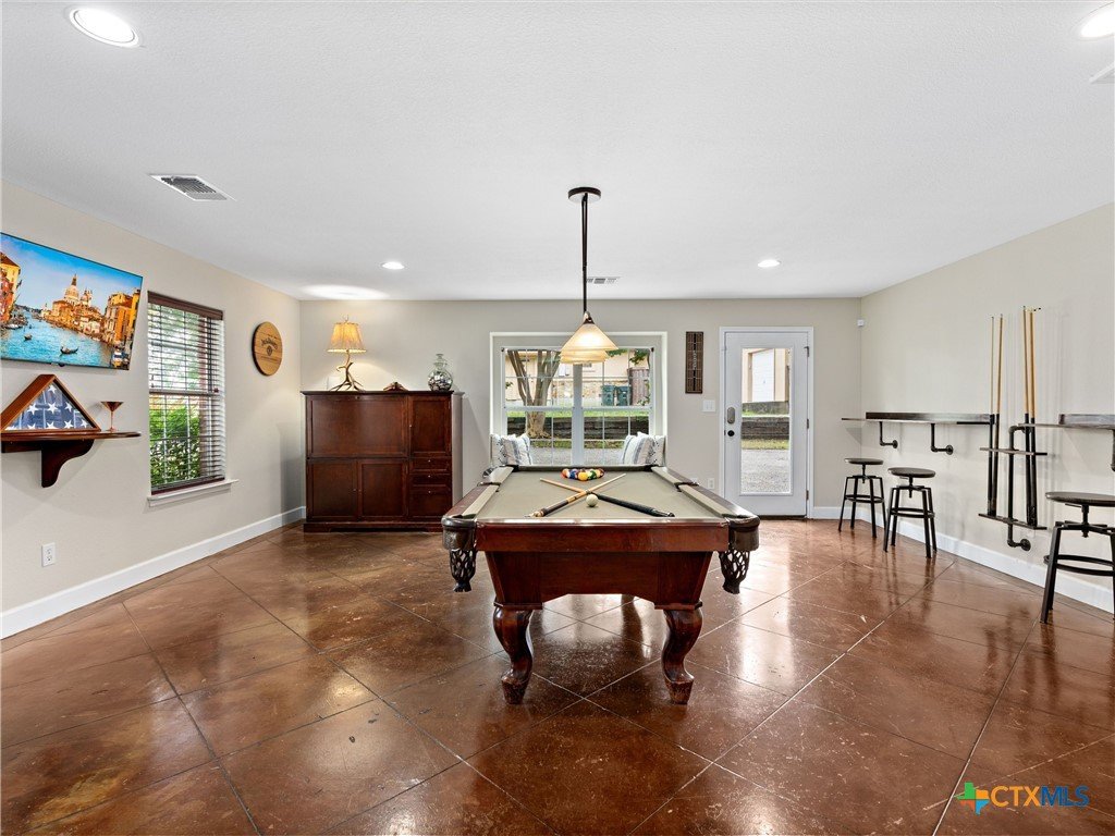 Welcome to your slice of Texas paradise in San Marcos! Nestled on a sprawling one-acre lot in a neighborhood free from the constraints of an HOA and city limits, this remodeled gem offers a rare blend of serenity, freedom, and modern comfort. Step inside this meticulously renovated home and discover a haven of tranquility. Boasting two primary bedrooms and two additional guest bedrooms, along with three full bathrooms, this residence provides ample space for both relaxation and entertaining. The heart of the home is its beautifully updated kitchen, where sleek countertops and abundant cabinetry create an inviting space in the center of the home. As you explore further, you'll find that no detail has been overlooked in this renovation. From the new flooring and baseboards to the addition of a game room, every inch of this home exudes quality craftsmanship and modern elegance. Outside, find an expansive deck, fenced backyard enveloped by mature trees, chicken coop, storage shed, and a detached two car garage. One of the standout features of this property is its versatility. Thanks to its location outside the city limits, you have the freedom to embrace short-term rentals, offering potential for additional income and investment opportunities. And with lower taxes, you'll enjoy greater financial flexibility while reaping the benefits of homeownership. Whether you're seeking a peaceful retreat away from the hustle and bustle or an investment property with limitless potential, this remodeled home in San Marcos offers the best of both worlds.
