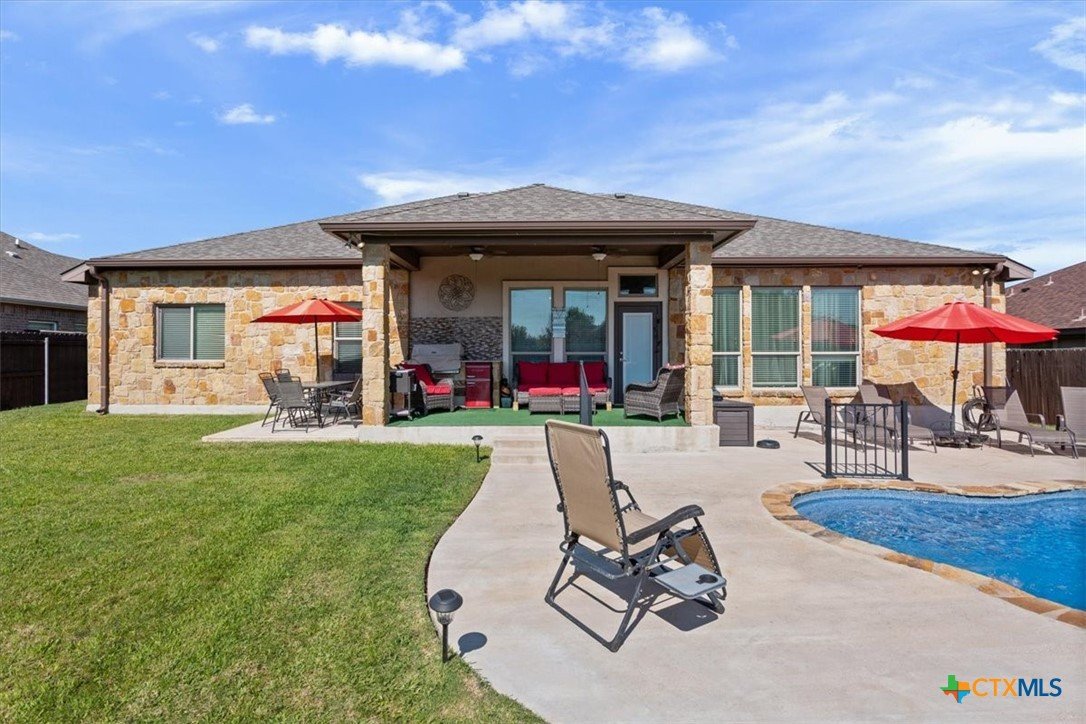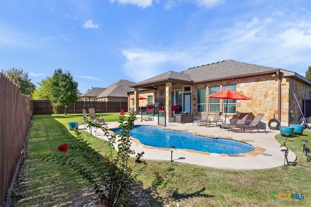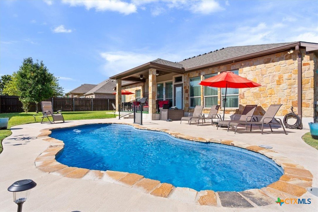ABSOLUTELY STUNNING HOME!!! Welcome to Nolanville’s premiere gated community, where elegance and prestige meet everyday comfort. This 4-bedroom, 2-bath, 2,392 sq ft masterpiece is more than a home—it’s a lifestyle. From the moment you arrive, the impeccable landscaping and striking curb appeal draw you in. Step inside to be greeted by soaring ceilings and a bright, open floor plan that flows effortlessly from a formal dining room and private office to a gourmet chef’s kitchen designed for both family gatherings and grand entertaining. The living room is a showstopper with massive windows overlooking the sparkling luxury pool and backyard oasis—a true paradise for outdoor living, dining, and entertaining under the Texas sky. The primary suite is a private sanctuary with high ceilings, a spa-worthy bath featuring a soaking garden tub, walk-in shower, and elegant finishes—the ultimate place to relax and recharge. Three additional spacious bedrooms complete this dream home, offering flexibility for family, guests, or creative spaces. Set within the prestigious gated enclave of Bella Charca, this home offers not just security and privacy, but a community known for its charm, peaceful ambiance, and high-end appeal. This is where sophistication, comfort, and resort-style living come together—don’t miss the chance to call it yours!