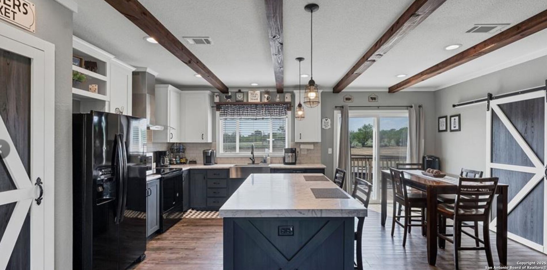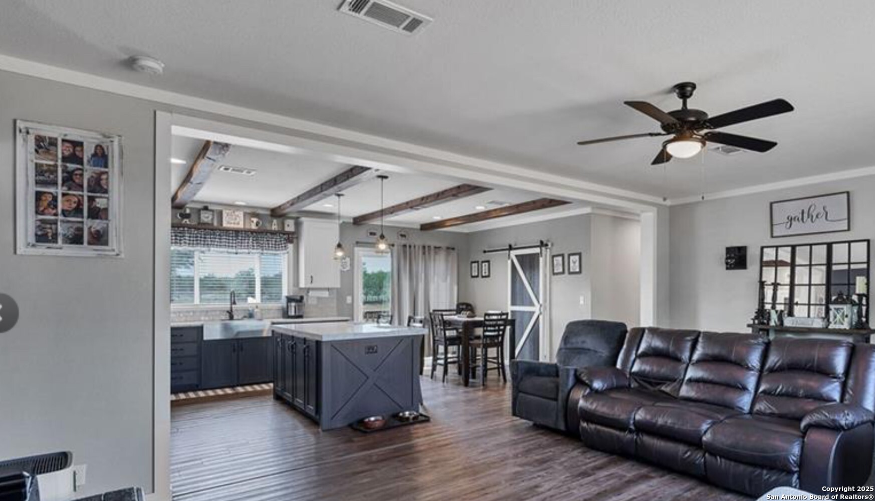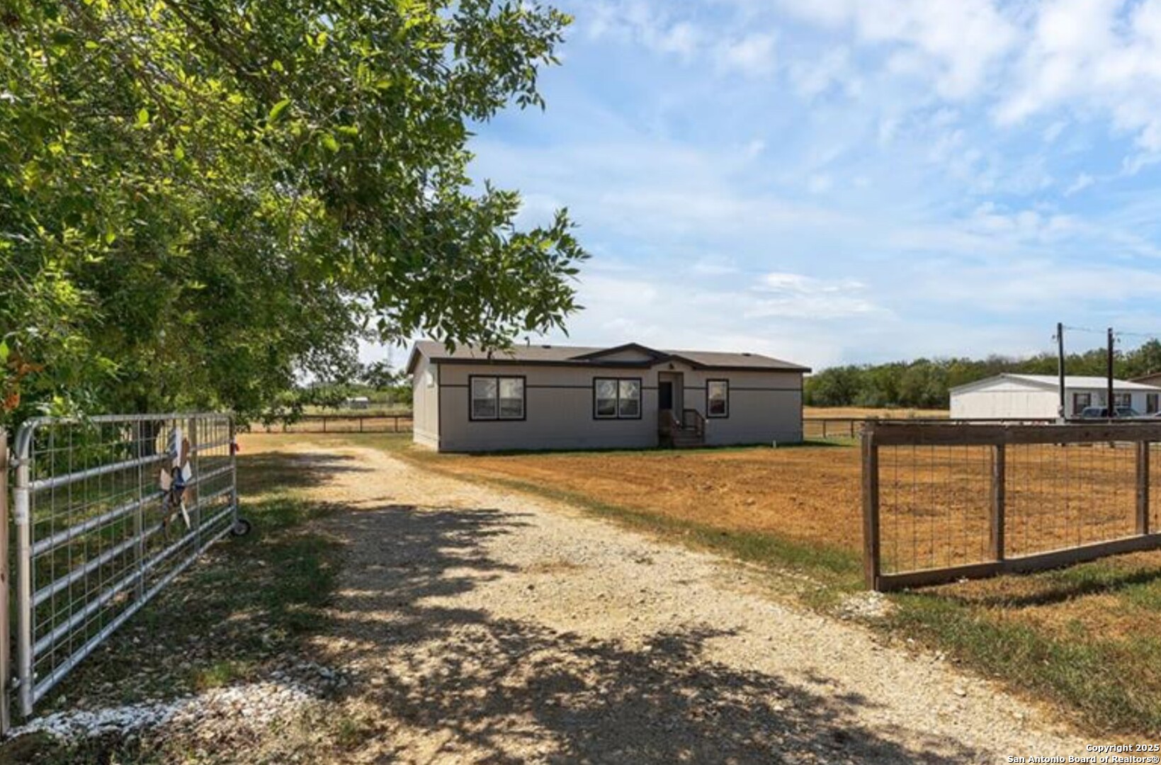 Charming and beautifully maintained Palm Harbor home on nearly half an acre in the heart of Stockdale. Built in 2020, this spacious residence offers open-concept living with a modern farmhouse feel. The oversized kitchen features a center island, abundant cabinetry, and a stylish barn door leading to the laundry room. Interior highlights include updated flooring, warm paint tones, and multiple barn door accents throughout. The flexible floor plan includes a bonus room perfect for a home office, game room, or second living area. Outside, enjoy a fully fenced and gated yard, ideal for pets or play, plus space to park an RV, build a workshop, or start a garden. A newer spa in the backyard adds to the appeal and is negotiable. Located on a freshly paved street with city utilities and easy access to local amenities and nearby towns like Seguin, Floresville, and La Vernia. This is small-town living with style and space.