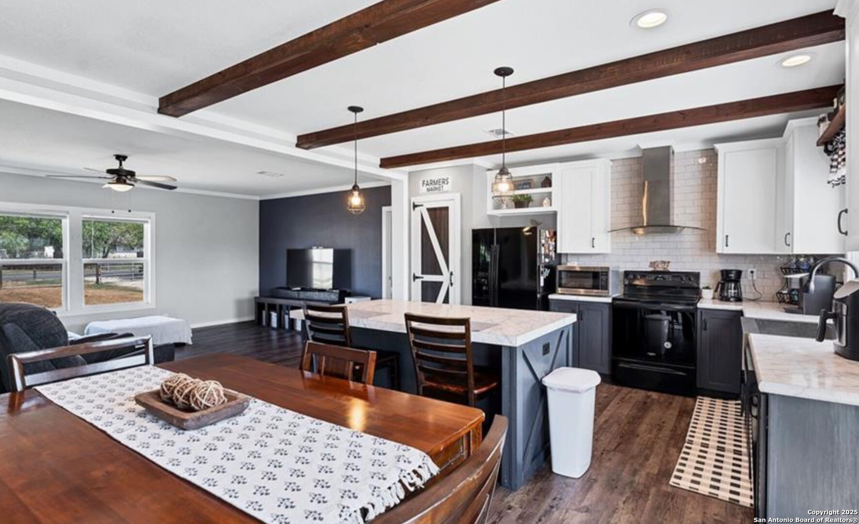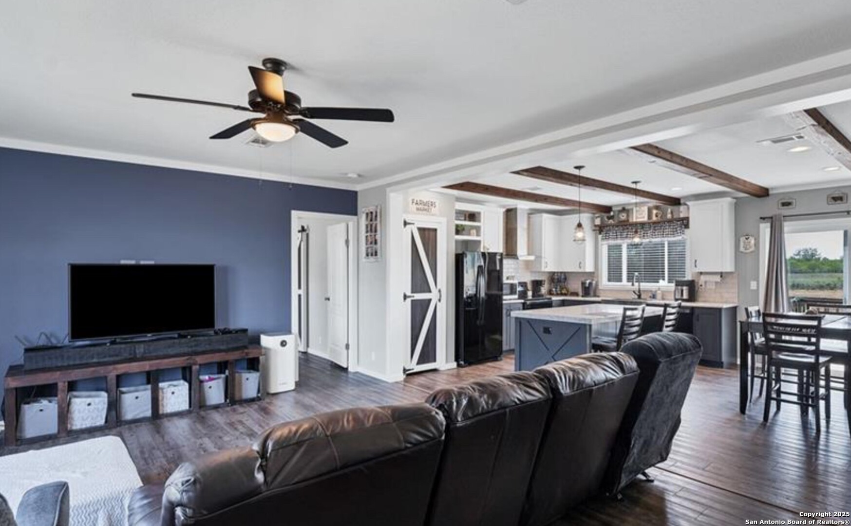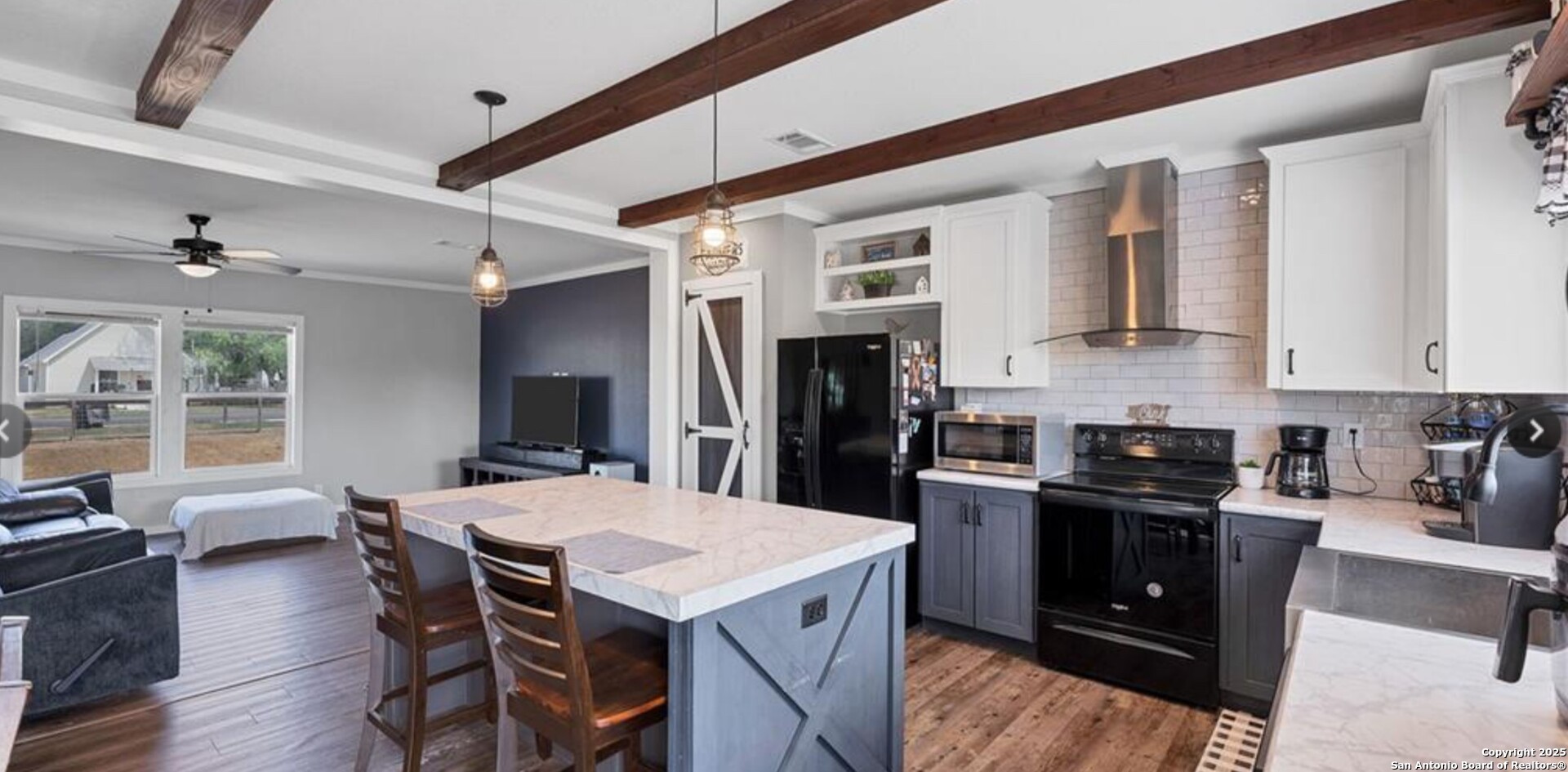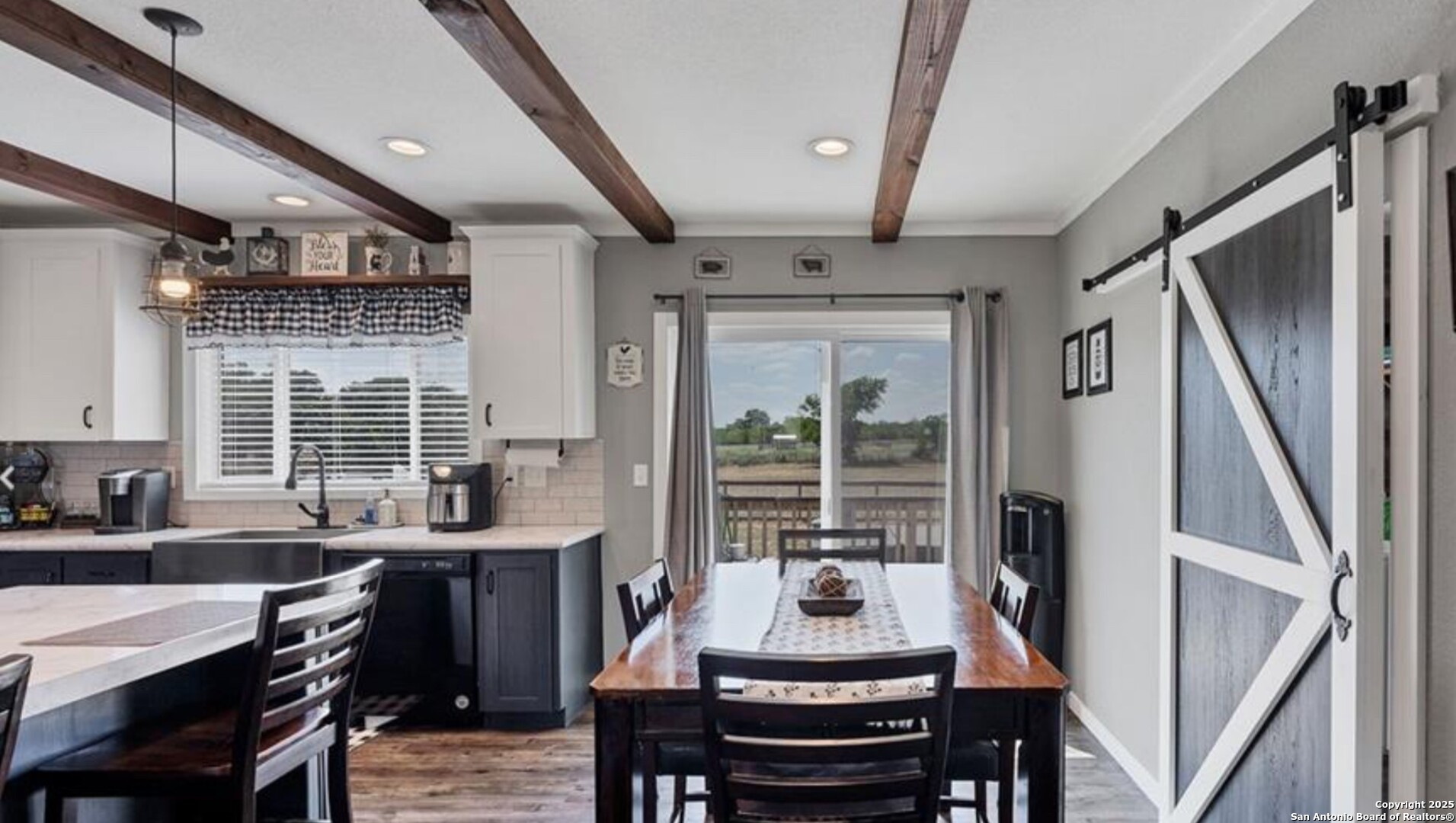 Charming and beautifully maintained Palm Harbor home on nearly half an acre in the heart of Stockdale. Built in 2020, this spacious residence offers open-concept living with a modern farmhouse feel. The oversized kitchen features a center island, abundant cabinetry, and a stylish barn door leading to the laundry room. Interior highlights include updated flooring, warm paint tones, and multiple barn door accents throughout. The flexible floor plan includes a bonus room perfect for a home office, game room, or second living area. Outside, enjoy a fully fenced and gated yard, ideal for pets or play, plus space to park an RV, build a workshop, or start a garden. A newer spa in the backyard adds to the appeal and is negotiable. Located on a freshly paved street with city utilities and easy access to local amenities and nearby towns like Seguin, Floresville, and La Vernia. This is small-town living with style and space.