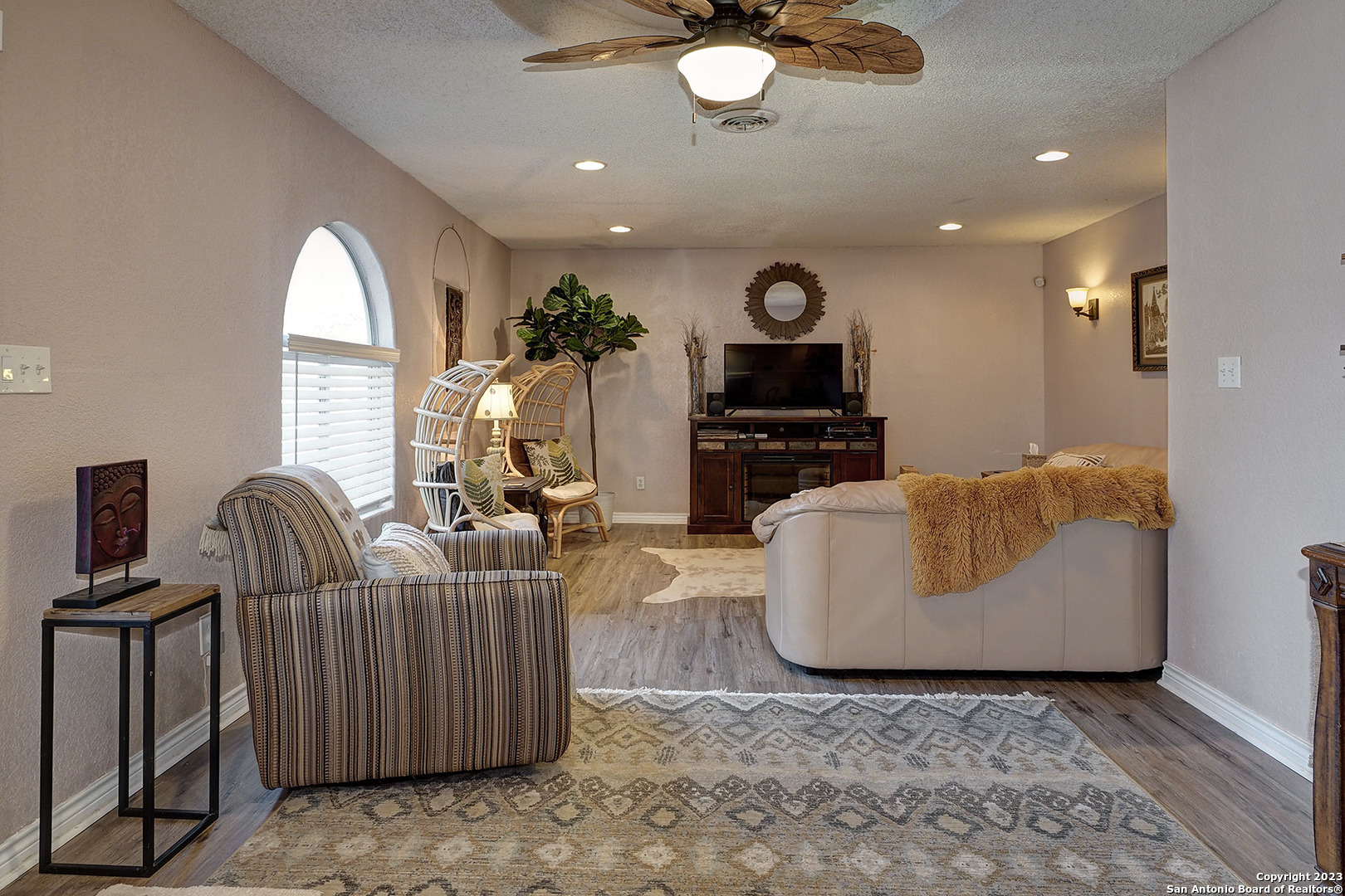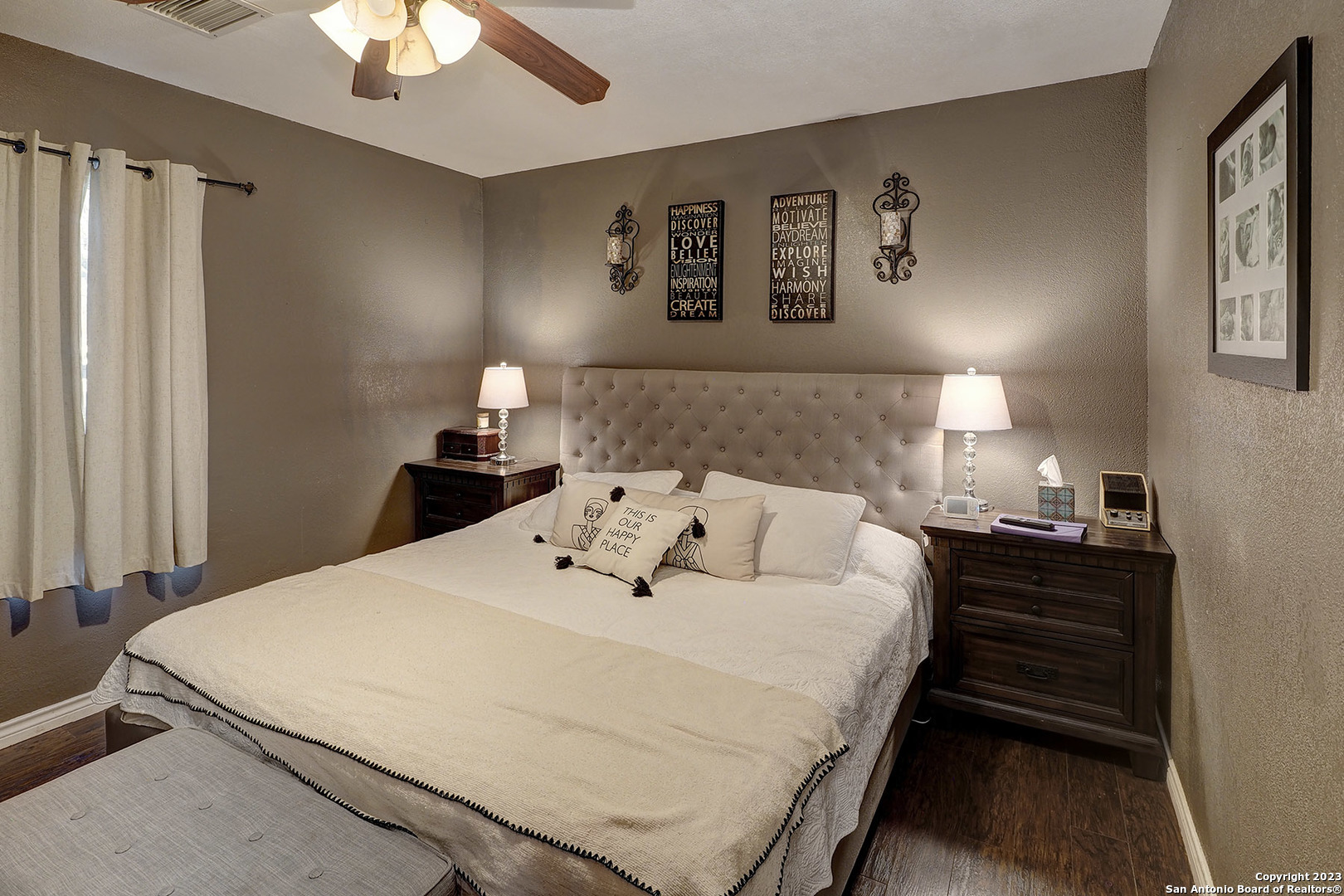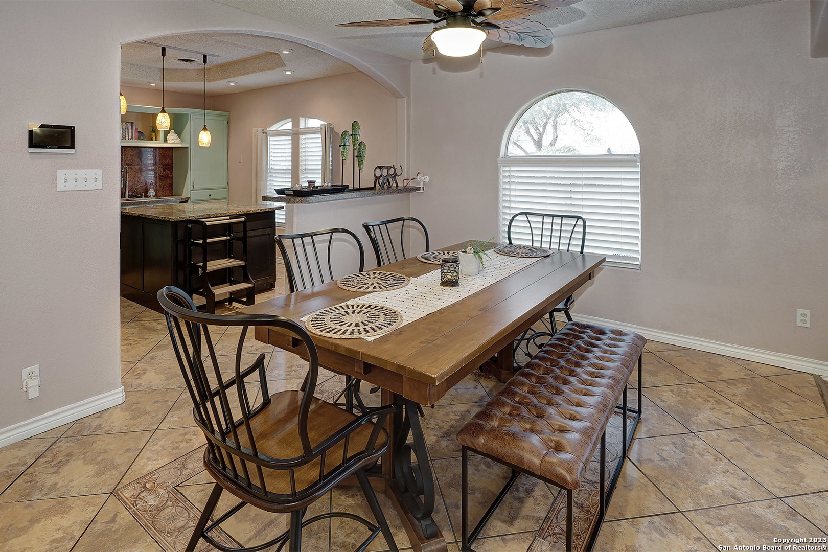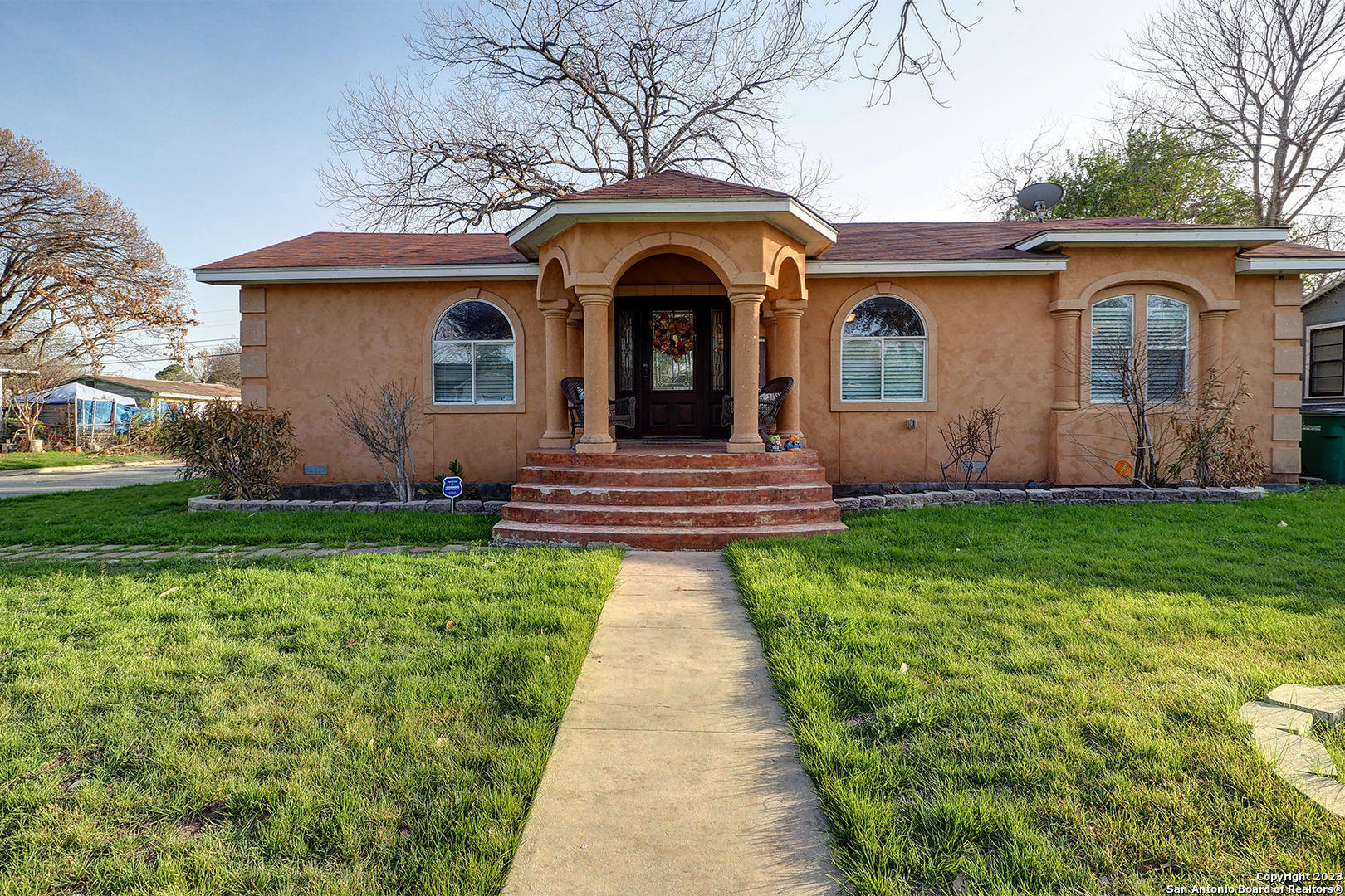 WELCOME HOME! Grand entrance of columns to welcome all guest to this beautifully maintained 3 bedroom home. Open floor plan as you enter home with generous kitchen and large kitchen island for prepping, storage, and entertaining. Large master and secondary rooms with no carpet. Large backyard with deck and mature trees to enjoy the evenings. Detached garage space. Minutes away from Olmos Park and Alamo Quarry. Conveniently located to major highways, shopping, food, and entertainment. Price adjustment