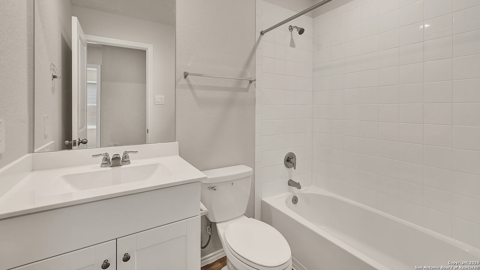 MOVE IN READY! The Atlanta is one of our one-story floorplans featured in our Ladera community in Luling, Texas. This 1,156 square foot home includes 3 bedrooms, 2 bathrooms and a 2-car garage. Our homes in Ladera feature a board and batten exterior. Step inside the Atlanta and enter the heart of the home, the open concept living space. The kitchen, dining and living room are intentionally designed for everyday living and entertaining. The kitchen features an island with a stainless-steel sink, quartz countertops, 42' upper 'picture frame' cabinets, a pantry closet, and stainless-steel appliances. The secondary bedrooms are located off the kitchen, as well as a secondary bathroom and utility room. The bedrooms include carpet and closets with wood shelving. The secondary bathroom has a shower/tub combination and a cultured marble vanity with trench sink. The primary bedroom is tucked away at the back of the home and includes an attached bathroom. Stretch out at the end of the day in this owner's retreat, which includes a walk-in shower, cultured marble vanity with trench sink and a large walk-in closet. This home features our America's Smart Home base package, which includes the Video Front Doorbell, Front Door Deadbolt Lock, Home Hub, Thermostat, and Deako Smart Switches.