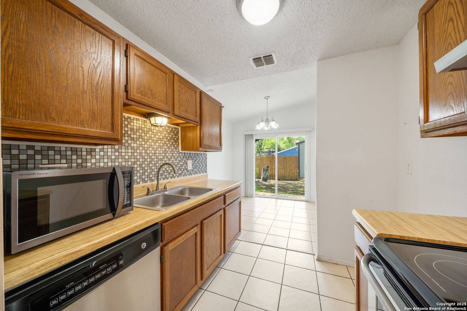 Charming single-story 2-bedroom, 1-bath home featuring vaulted ceilings that enhance the spacious feel throughout. The living area boasts a cozy fireplace, and tile flooring extends through the entire home for a clean, cohesive look and easy maintenance. The galley-style kitchen is equipped with modern appliances and an efficient layout, perfect for cooking and entertaining. A one-car garage offers convenient parking and extra storage. Step outside to a private, fenced-in backyard ideal for relaxing, gardening, or pets. With a well-designed floor plan and stylish architectural details, this home combines comfort and character in every room.