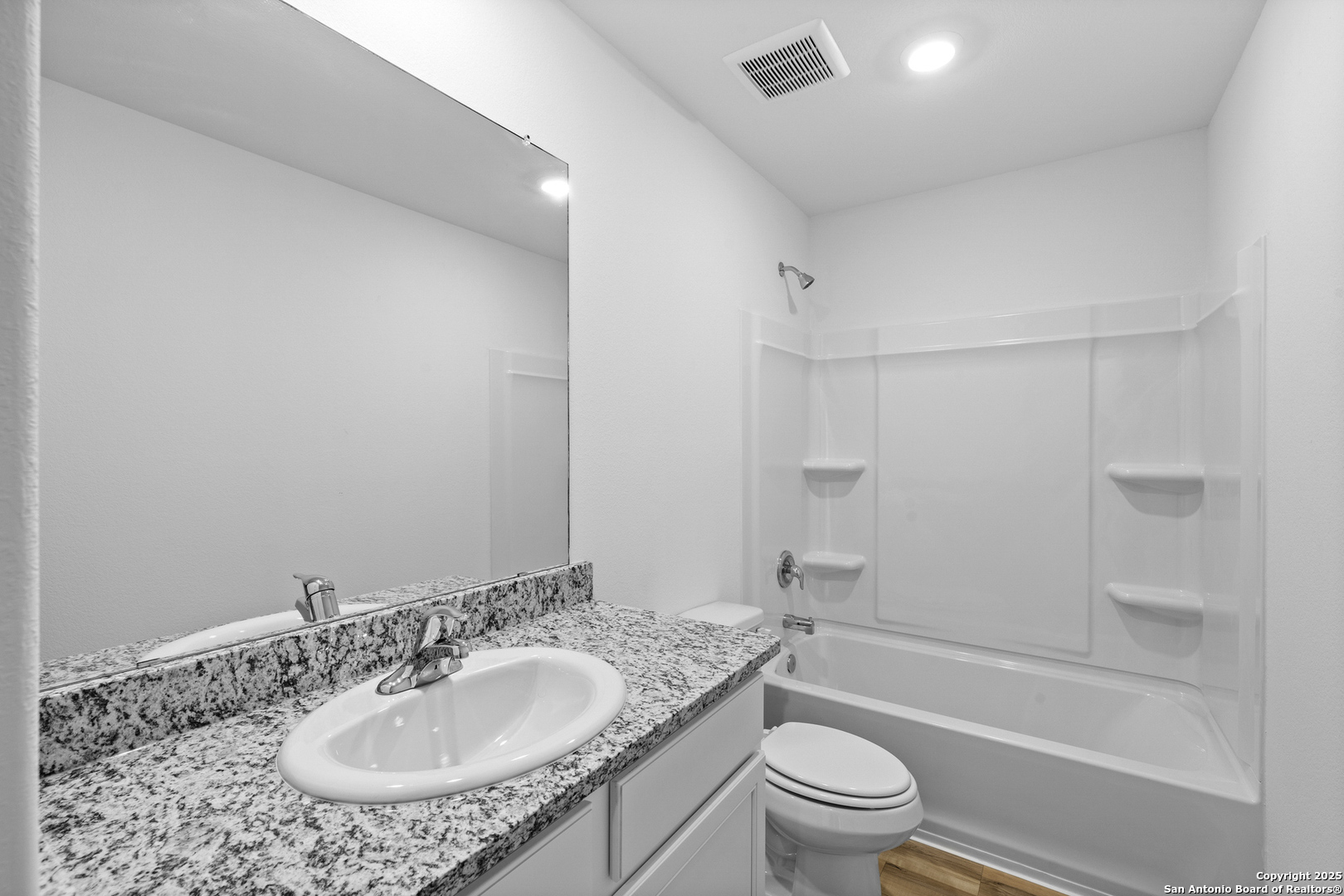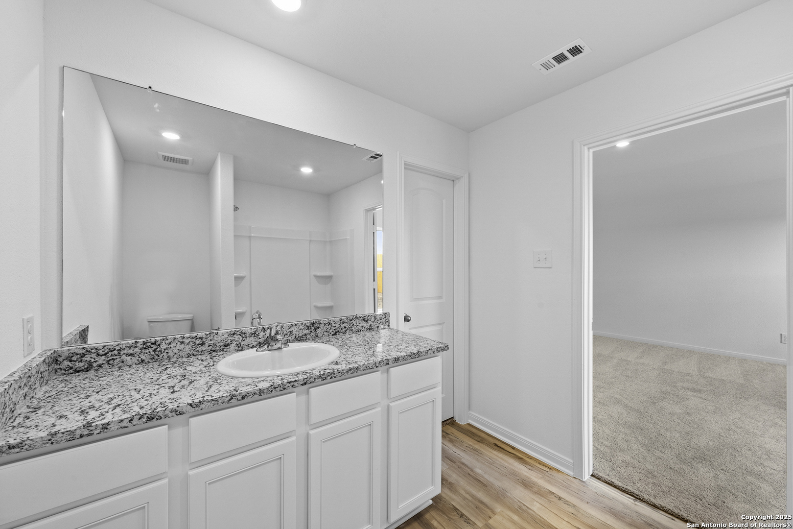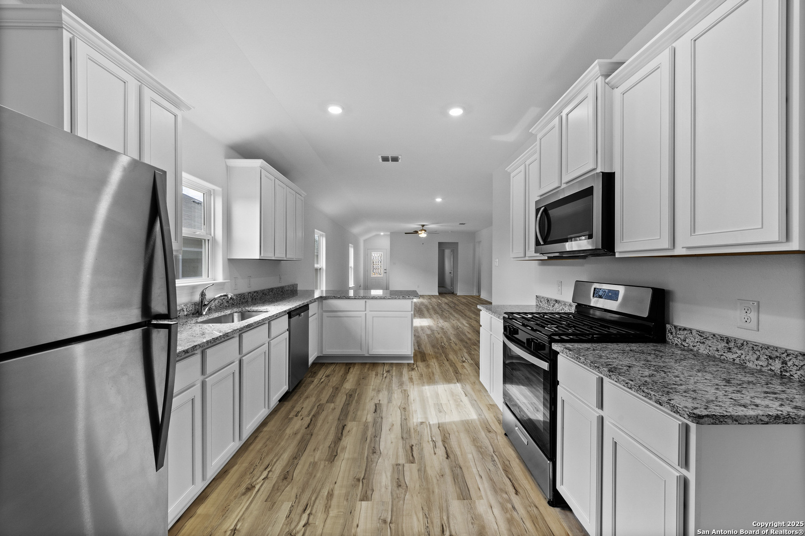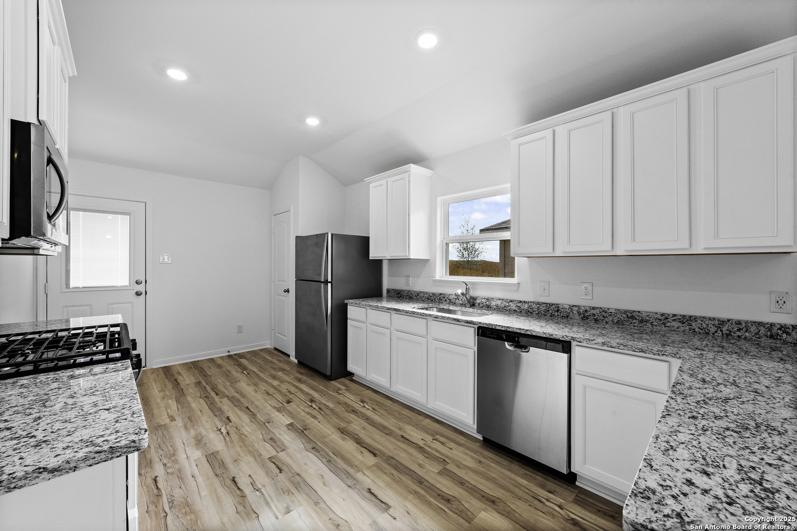Boasting with charm, this single-story home at Preserve at Medina has plenty of space. This four-bedroom home features two full baths, a spacious family room, chef-ready kitchen, private primary suite with an en-suite bathroom, and more. Enjoy the thoughtfully designed, open-concept layout of this home, creating the perfect space for entertaining. Additionally, this home comes with a host of impressive upgrades included at no extra cost such as energy-efficient Whirlpool appliances, sparkling granite countertops, designer wood cabinetry with crown molding, a Wi-Fi-enabled garage door opener and more.