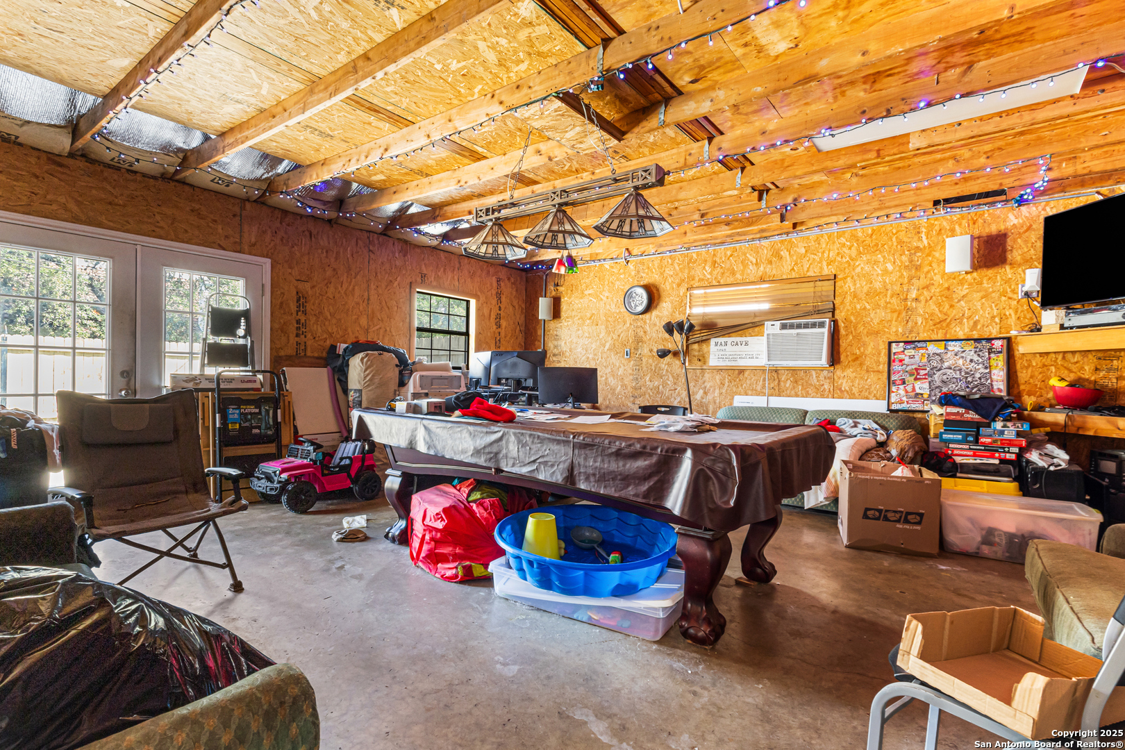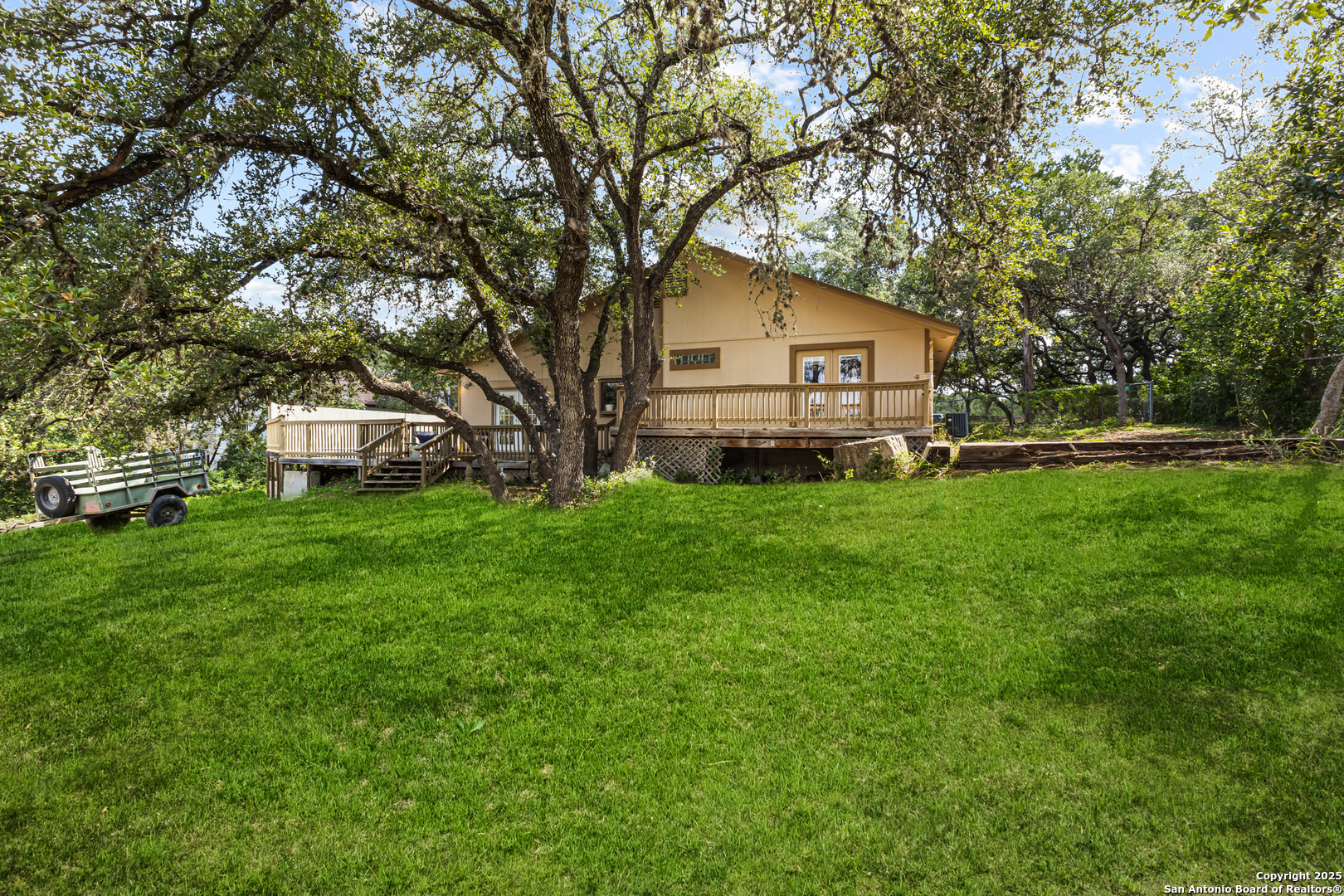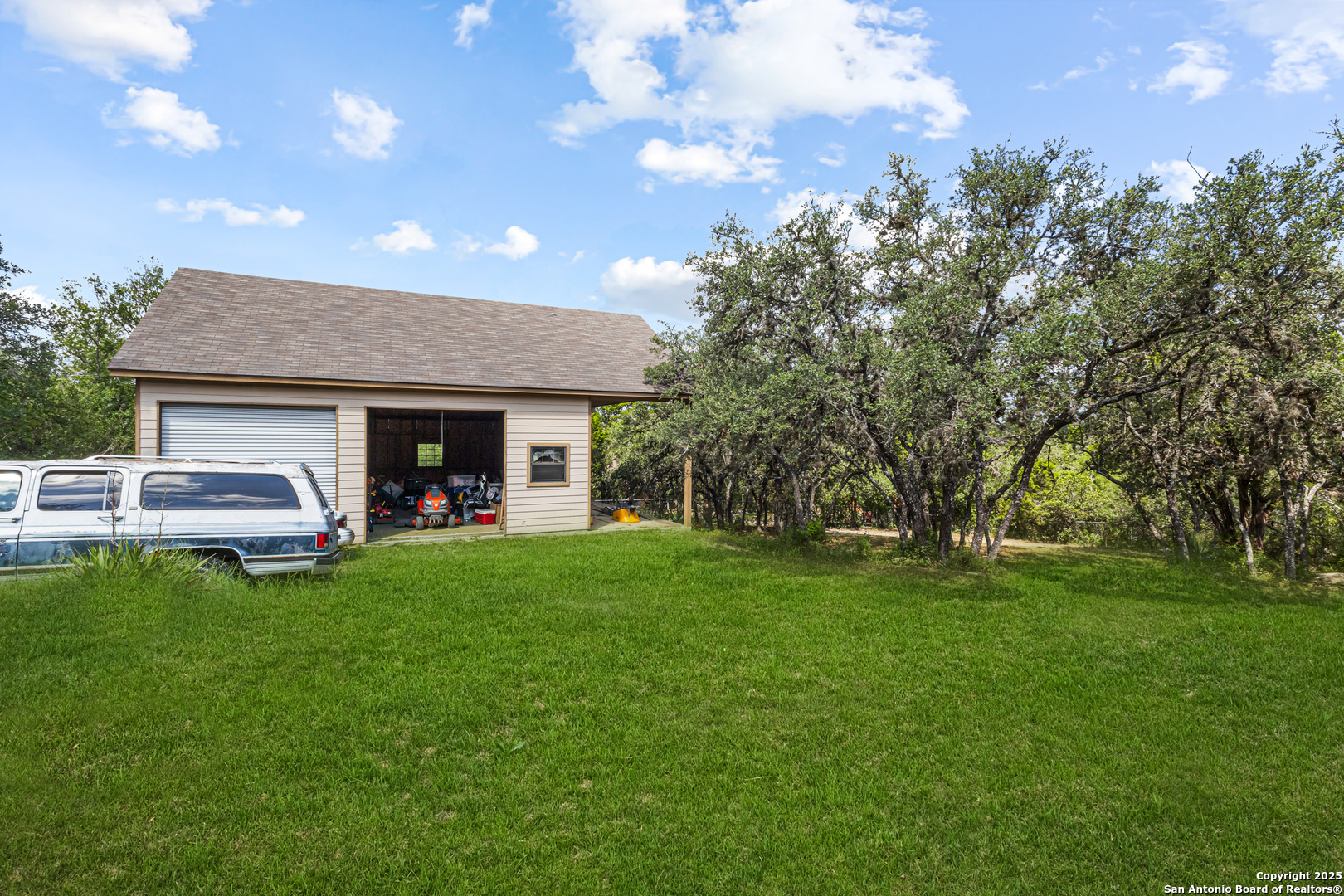 **Over an acre in San Antonio with no mandatory HOA-a rare find.** This home includes an additional bedroom, making it a 4-bed, 2-bath residence set on a 1.05-acre homesite (~45,738 sq ft). A central atrium/courtyard brings in natural light and adds architectural character. The private primary suite is split from the secondary bedrooms, while two additional flex spaces offer options for a home office, playroom, or gym. Outside, enjoy an above-ground pool with a wooden deck, a spacious backyard with room for pets, projects, or parking, plus a detached garage/shop perfect for vehicles, storage, or hands-on projects. Conveniently located just off the highway-behind Nardis Gun Club and 7 minutes from SeaWorld-this property blends elbow room with quick city access. Voluntary HOA adds flexibility. All personal property will be removed prior to closing. If you've been looking for space without heavy restrictions, this is it. Schedule your showing today!