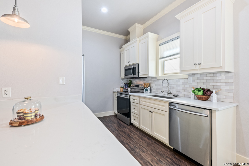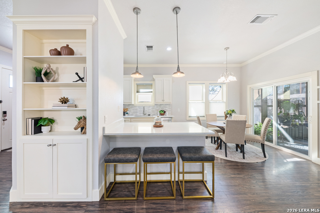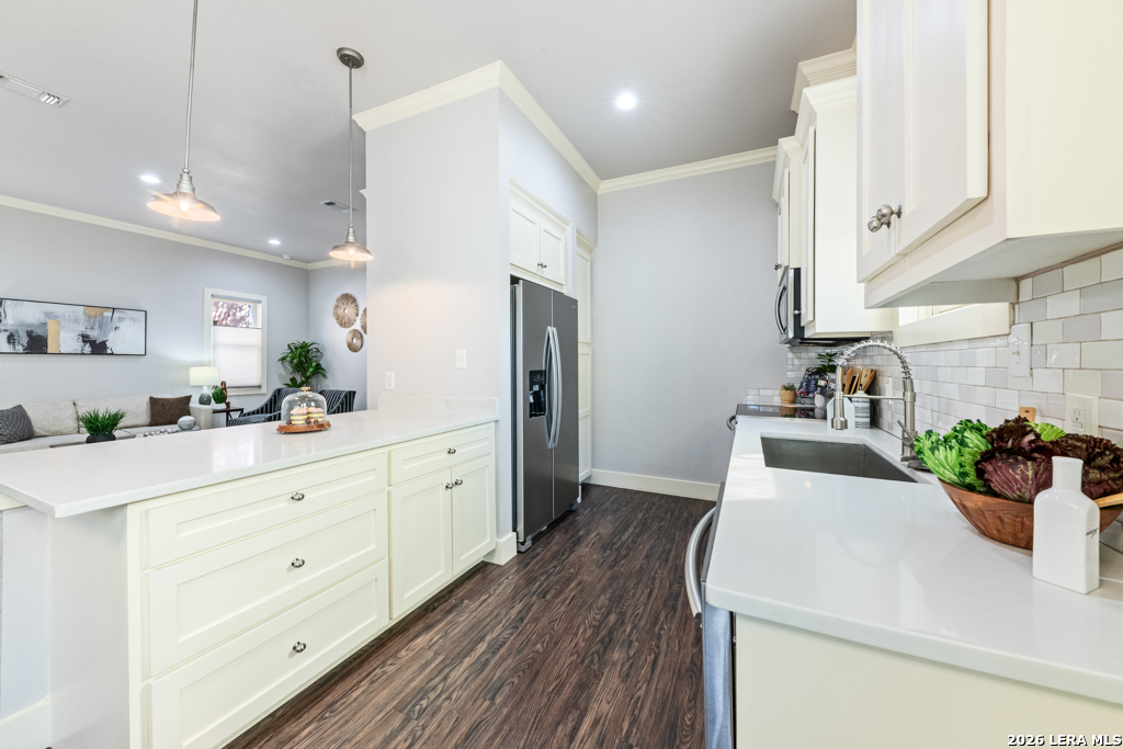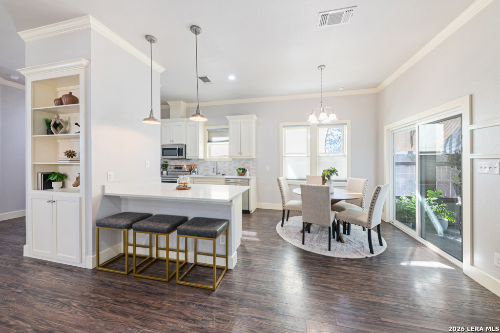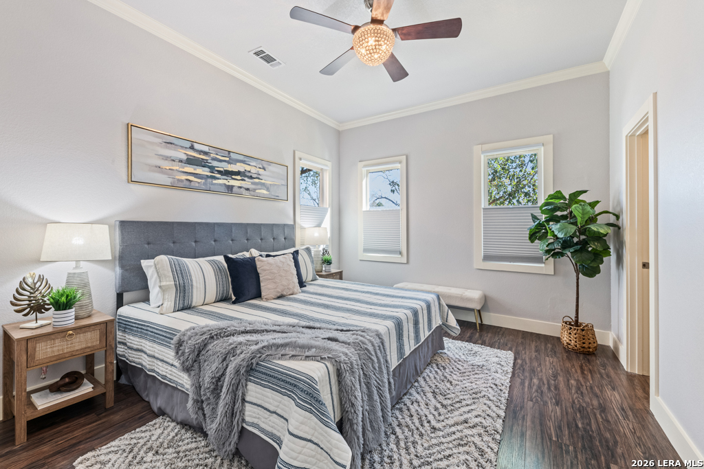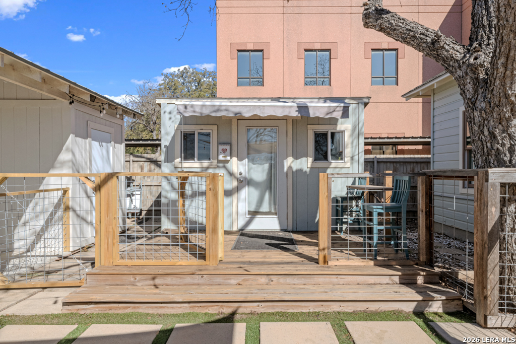Set on an oversized corner lot in the heart of historic Dignowity Hill, this lovely Folk Victorian style, modern bungalow offers a rare combination of privacy, quiet, and architectural character just minutes from downtown San Antonio. Built in 2018, the home reflects the charm of early neighborhood design while delivering modern efficiency, thoughtful upgrades, and intelligent use of space. Across the street lies the historic San Antonio cemetery grounds, encompassing over 100 acres of preserved open space. Dignowity Hill was stablished in the late 1800s and was originally subdivided into large estate-sized lots for prominent residents, laying the groundwork for what became the city's first exclusive residential neighborhood. Today, the area is recognized as a historic district celebrated for its architectural legacy, mature landscape, and enduring sense of place. The presence of the cemetery creates a uniquely peaceful backdrop, offering long-term privacy and unobstructed views, offset by the energy of nearby East Houston Street. The home features high ceilings, engineered wood floors, an open-concept kitchen with quartz countertops, custom wood cabinetry, stainless steel appliances, and a spacious laundry room. An inviting covered front porch and airy Florida room extend the living space. Secondary bedrooms are connected by a Jack-and-Jill bath, and custom top-down/bottom-up window shades with light-filtering and blackout options are installed throughout. Outdoor spaces are thoughtfully designed and fully fenced, featuring dog fencing with removable panels, zoysia grass, picket fencing in the front yard, and privacy fencing near the driveway. The backyard includes hardscaping, a deck, and exterior lighting, while the side garden offers a gated entry, raised beds, irrigation, rain barrel, dry potting sink, shade screens, and gutters. A gated driveway accessed from the side street provides additional concrete parking and enhanced privacy, with a county office building next door further contributing to the quiet setting. Two heated and cooled sheds/workrooms with electricity provide flexible space for storage, hobbies, or office use, including a dedicated toolroom with a portable AC unit. Additional upgrades include a tankless water heater, electric vehicle charging plug, upgraded electrical panel supporting the sheds and charging plug, water softener, upgraded interior and exterior lighting, and a interior/exterior security camera system. Featured on HGTV's House Hunters in 2019, this home is a rare offering in one of San Antonio's most iconic historic neighborhoods, conveniently located near downtown, the Pearl, Blue Star, the River Walk, the Alamodome, Fort Sam Houston, major freeways, and the highly anticipated Project MARVEL.