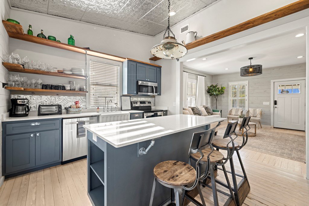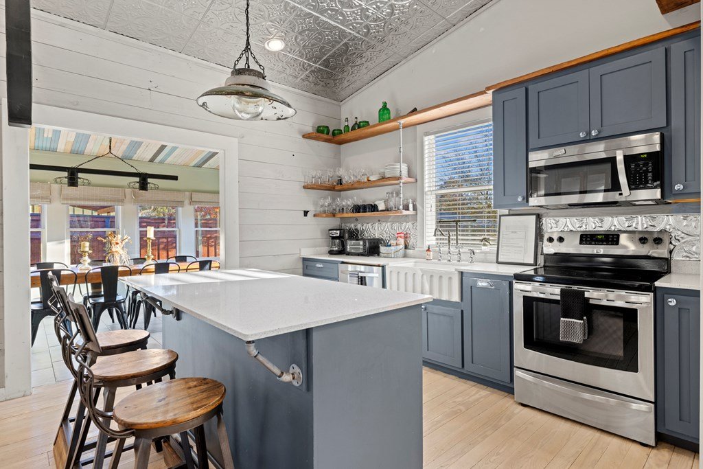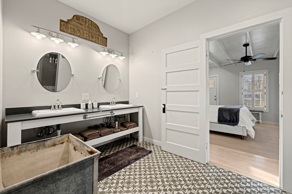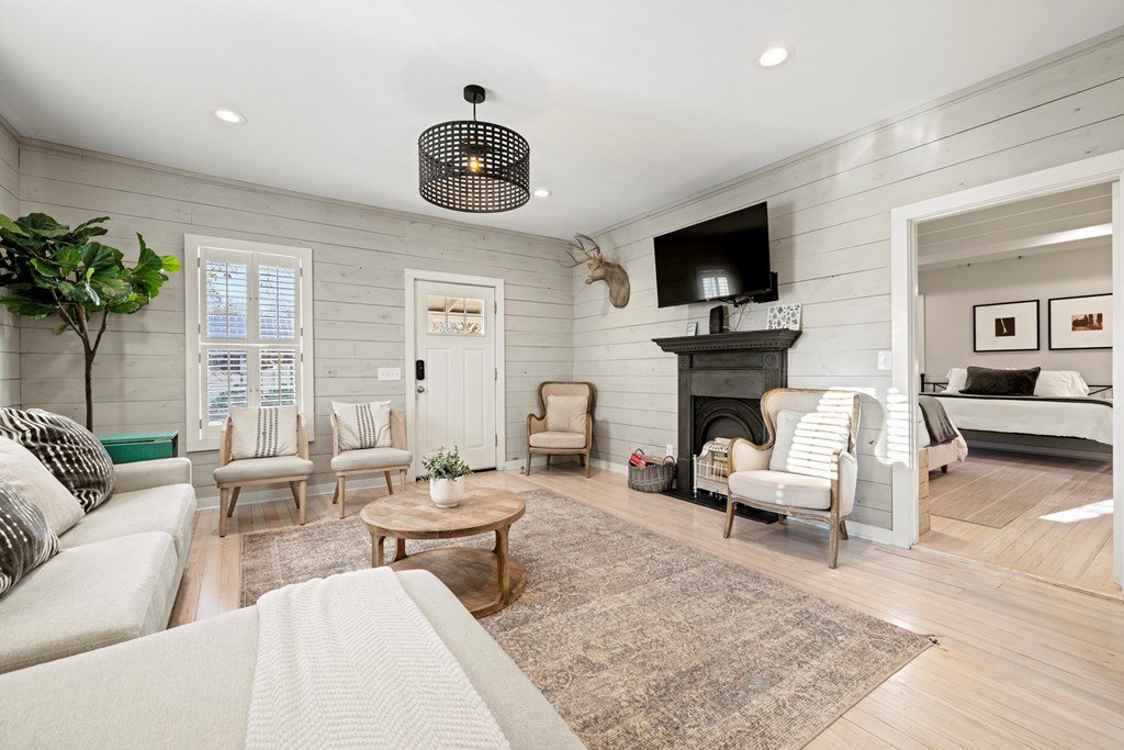 Presenting Moonstruck Manor — a rare opportunity to own a historic early 1900's luxury estate on one of Fredericksburg's most coveted streets. Just one minute from Main Street, this exceptional property offers the best of both worlds: a warm and inviting primary residence with timeless character, and/or a highly sought-after, licensed short-term rental that sleeps up to 12 guests. This estate includes a beautifully restored main house plus a charming 1-bedroom, 1-bath guest house, providing flexibility for an owner's retreat, multi-generational living, or additional rental income—whether short-term or long-term. Taken down to the studs in 2018, Moonstruck Manor retains its original soul with whitewashed wood floors, antique shiplap, and curated architectural details, while showcasing modern “new build” reliability with updated systems and high-end finishes throughout. Offered fully furnished with exquisite luxury pieces, the property is turn-key and revenue-ready. This is more than a home—it's a lifestyle and an investment rolled into one. Own a piece of Fredericksburg history reimagined for today, in a location that simply can't be replicated, and design that is unmatched.