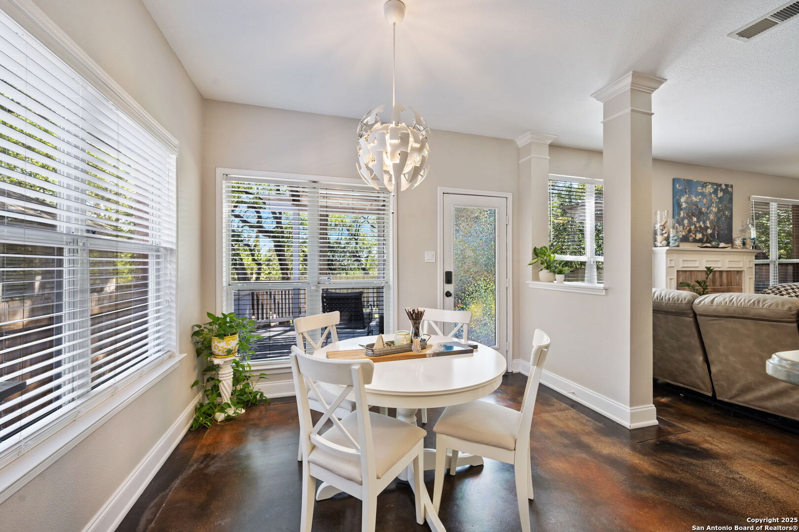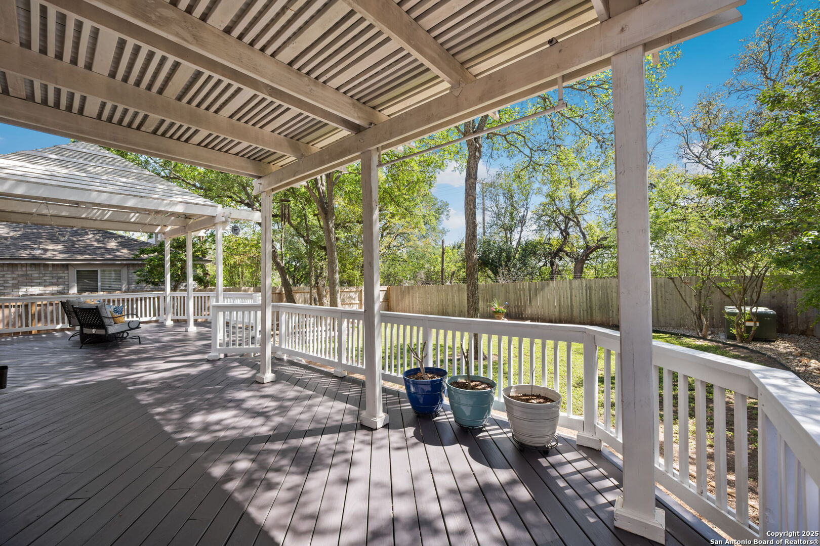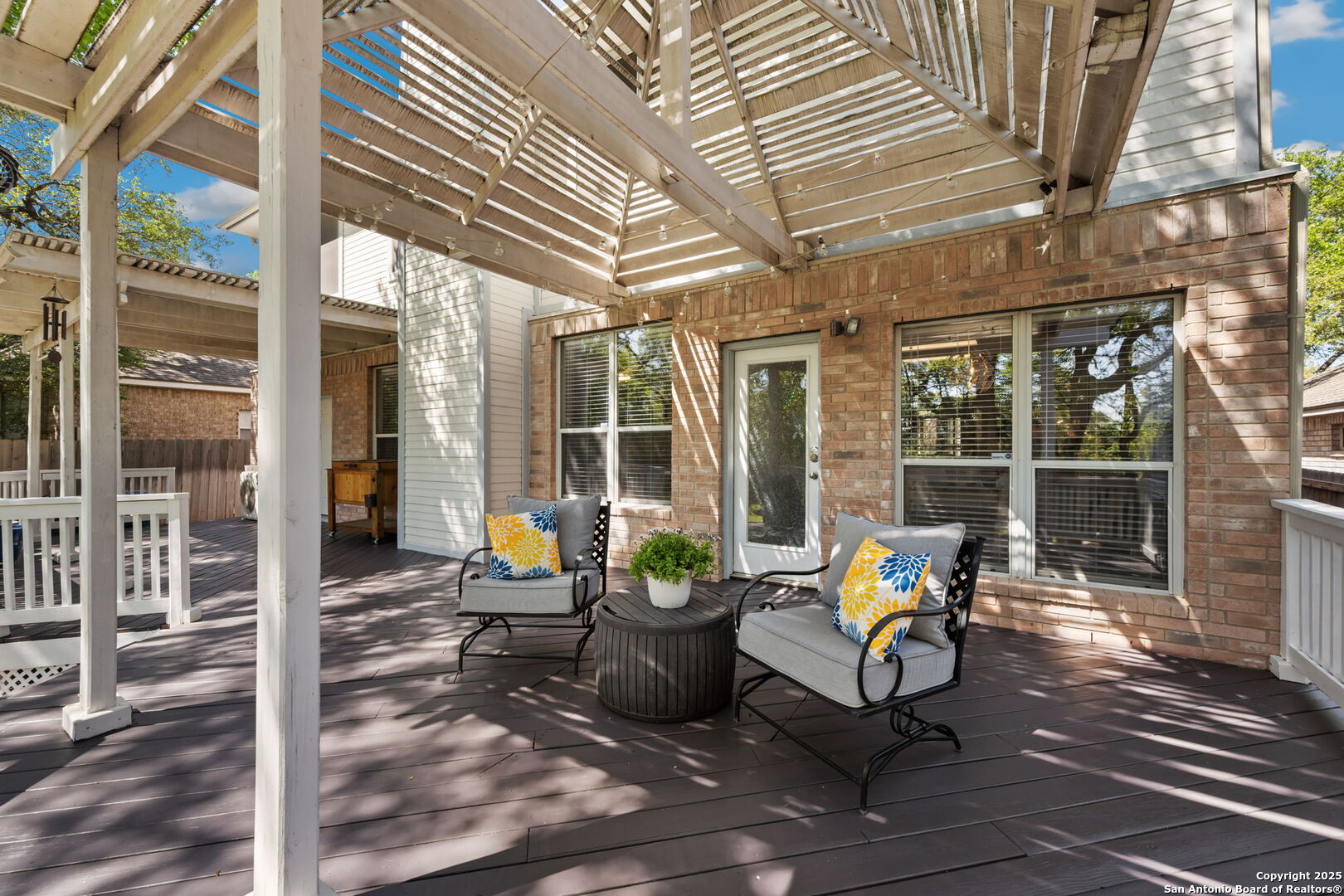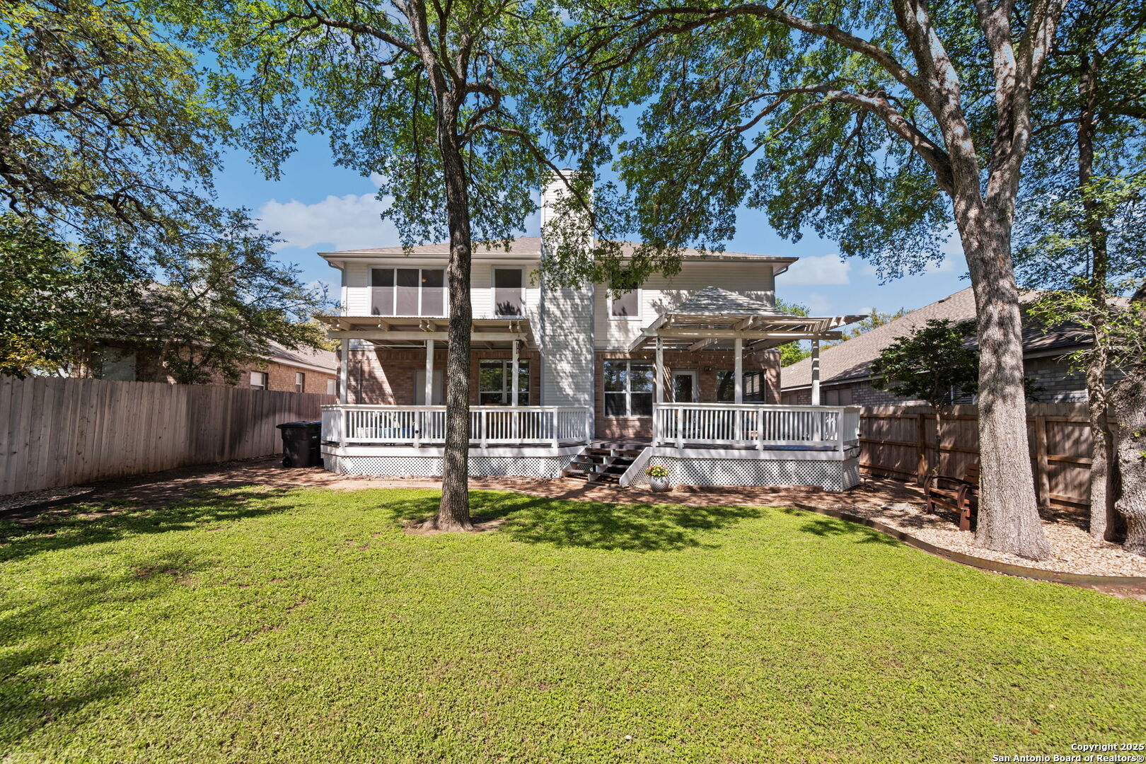 Welcome to this beautifully designed 3-bedroom home, perfectly blending comfort, functionality, and tranquility. Tucked in a peaceful setting with no backyard neighbors, this property offers rare privacy and serene views, ideal for relaxing or entertaining. Downstairs, you'll find beautiful stained concrete floors that add both warmth and durability to the main living areas. The living room features a cozy fireplace, creating a welcoming focal point ideal for relaxing evenings. The kitchen is both stylish and practical, featuring stainless steel appliances, a sleek subway tile backsplash, an island, and a large walk-in pantry for all your storage needs. A convenient utility room adds even more functionality. Adjacent to the kitchen is a charming breakfast area with big windows that overlook the peaceful backyard-a lovely spot to start your day and enjoy your morning coffee while taking in the private views. Step outside to the spacious deck, ideal for outdoor dining, lounging, or entertaining! BUT WAIT there's more! This home may look like a two car garage from the outside but don't be fooled! The oversized tandem garage, featuring a mini split system-making it the perfect year-round space for a home gym, workshop, or hobby area. Whether you're lifting weights, crafting, or building, you'll love the flexibility and comfort of this bonus space. Upstairs, you'll find an oversized primary suite that features an additional room perfect for a home office or nursery! The primary bathroom is complete with dual vanities, a luxurious walk-in shower, a soaking tub, and ample closet space. This home is a rare find that seamlessly blends comfort, mature trees, privacy, and versatility located in the highly desirable Shavano Forest!