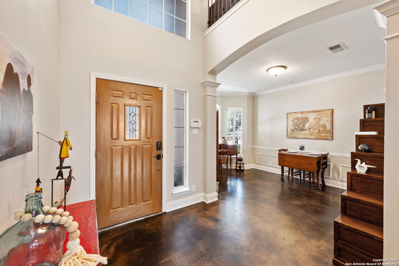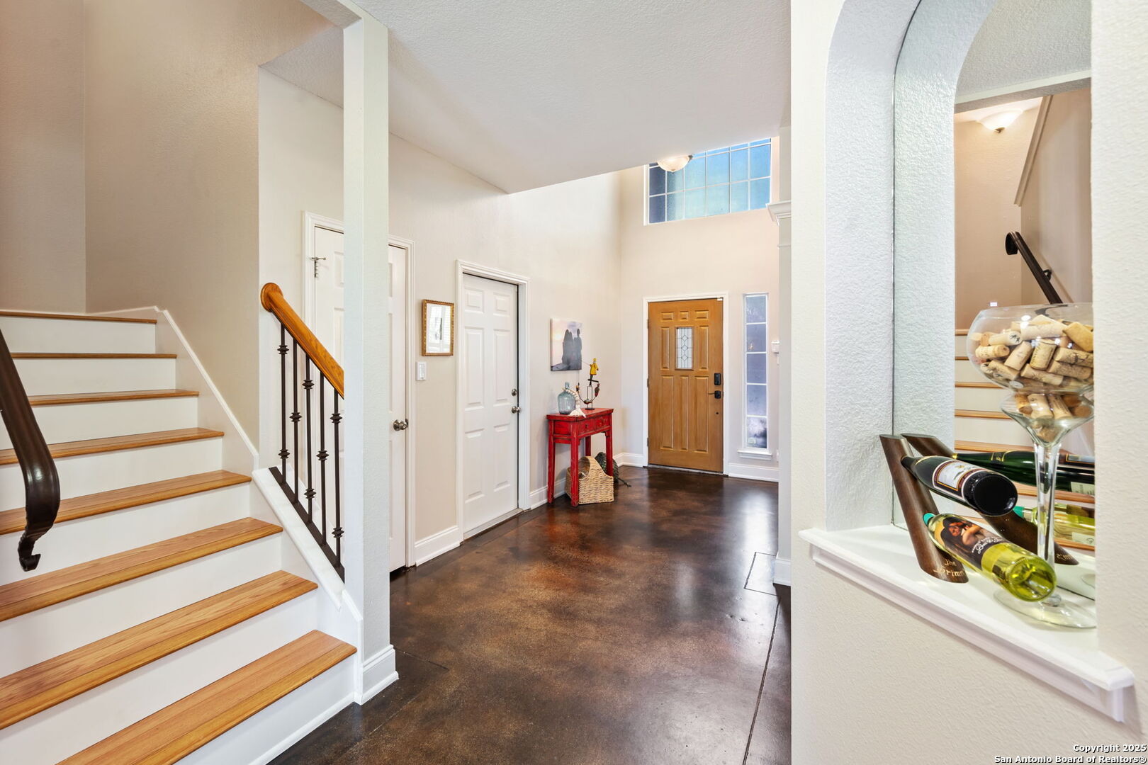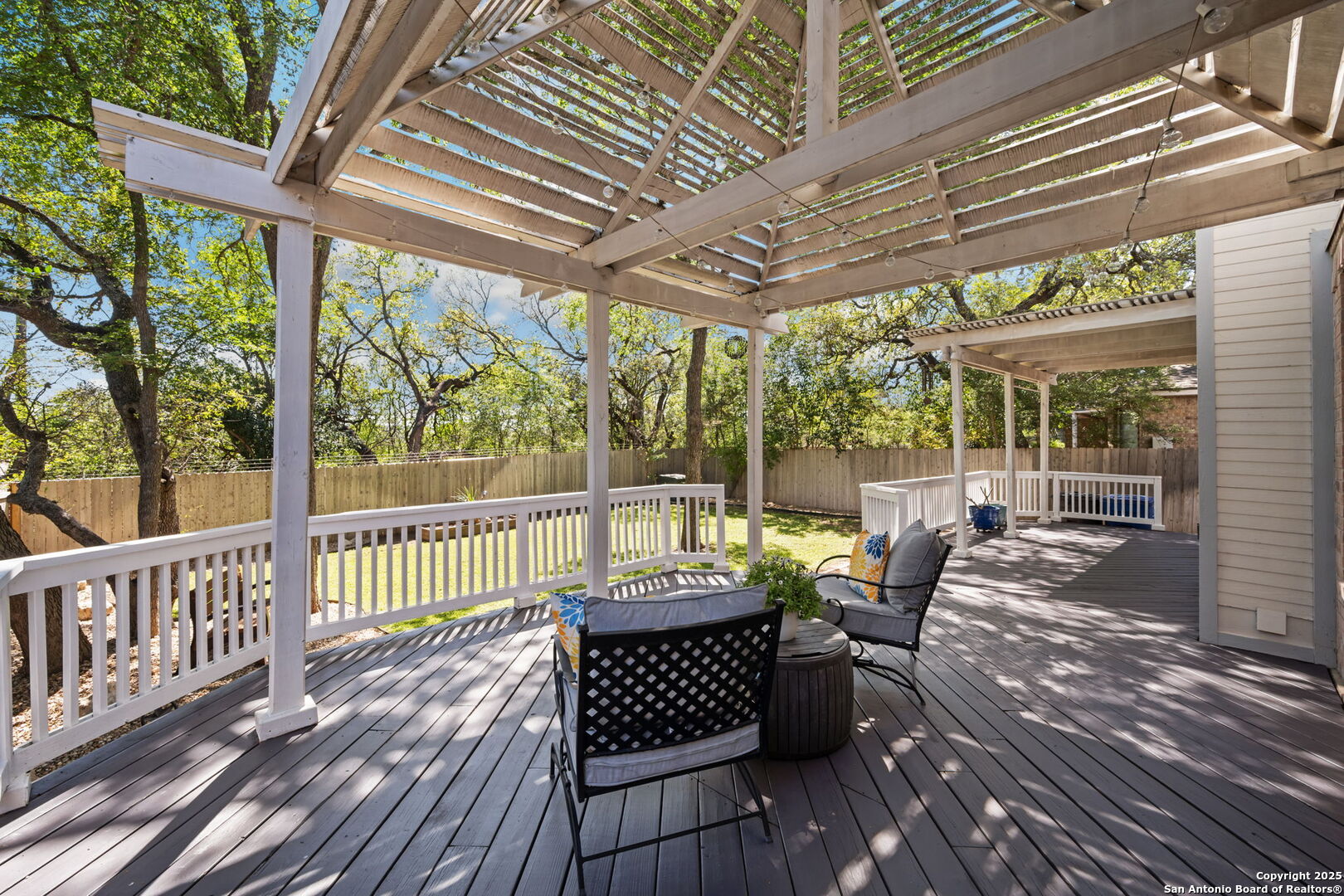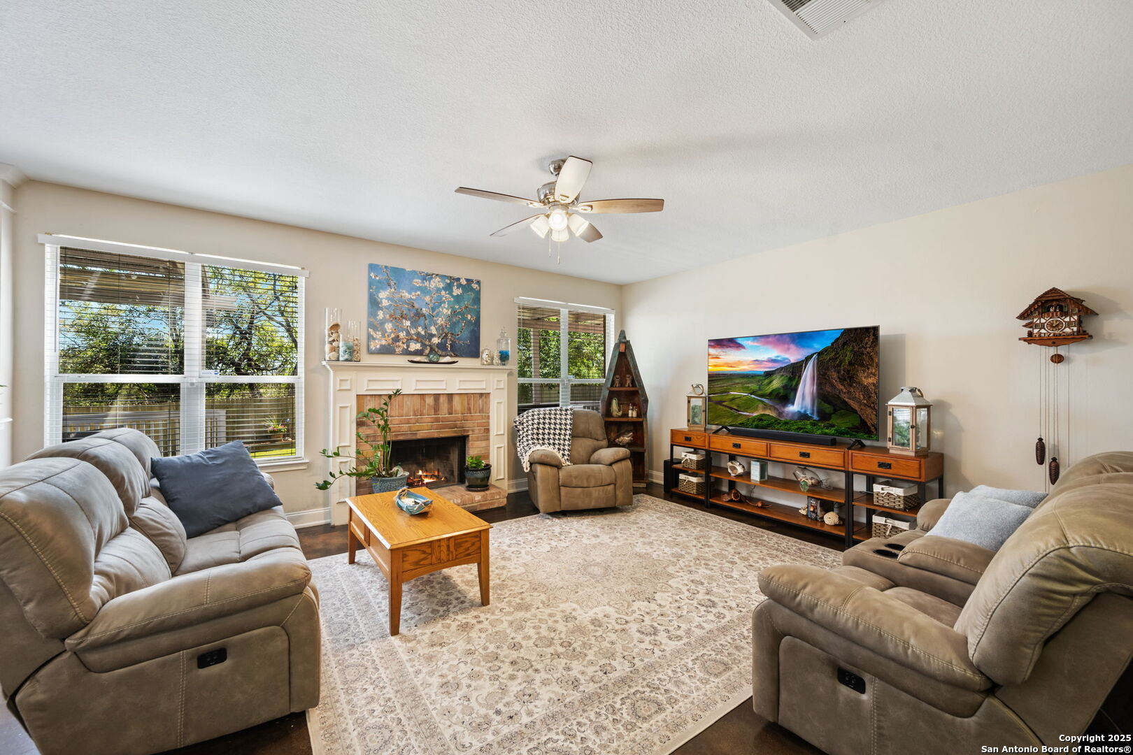 Welcome to this beautifully designed 3-bedroom home, perfectly blending comfort, functionality, and tranquility. Tucked in a peaceful setting with no backyard neighbors, this property offers rare privacy and serene views, ideal for relaxing or entertaining. Downstairs, you'll find beautiful stained concrete floors that add both warmth and durability to the main living areas. The living room features a cozy fireplace, creating a welcoming focal point ideal for relaxing evenings. The kitchen is both stylish and practical, featuring stainless steel appliances, a sleek subway tile backsplash, an island, and a large walk-in pantry for all your storage needs. A convenient utility room adds even more functionality. Adjacent to the kitchen is a charming breakfast area with big windows that overlook the peaceful backyard-a lovely spot to start your day and enjoy your morning coffee while taking in the private views. Step outside to the spacious deck, ideal for outdoor dining, lounging, or entertaining! BUT WAIT there's more! This home may look like a two car garage from the outside but don't be fooled! The oversized tandem garage, featuring a mini split system-making it the perfect year-round space for a home gym, workshop, or hobby area. Whether you're lifting weights, crafting, or building, you'll love the flexibility and comfort of this bonus space. Upstairs, you'll find an oversized primary suite that features an additional room perfect for a home office or nursery! The primary bathroom is complete with dual vanities, a luxurious walk-in shower, a soaking tub, and ample closet space. This home is a rare find that seamlessly blends comfort, mature trees, privacy, and versatility located in the highly desirable Shavano Forest!