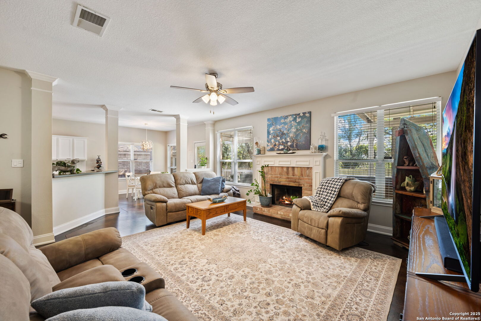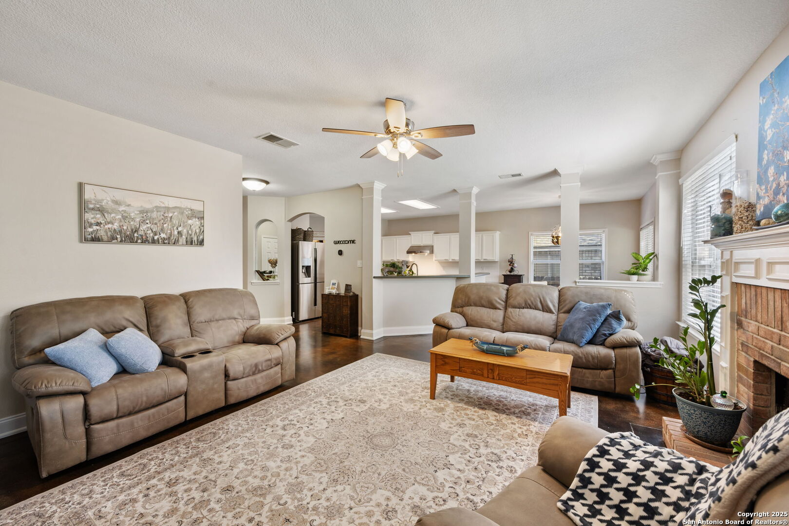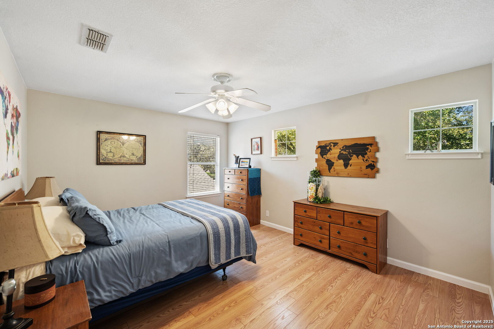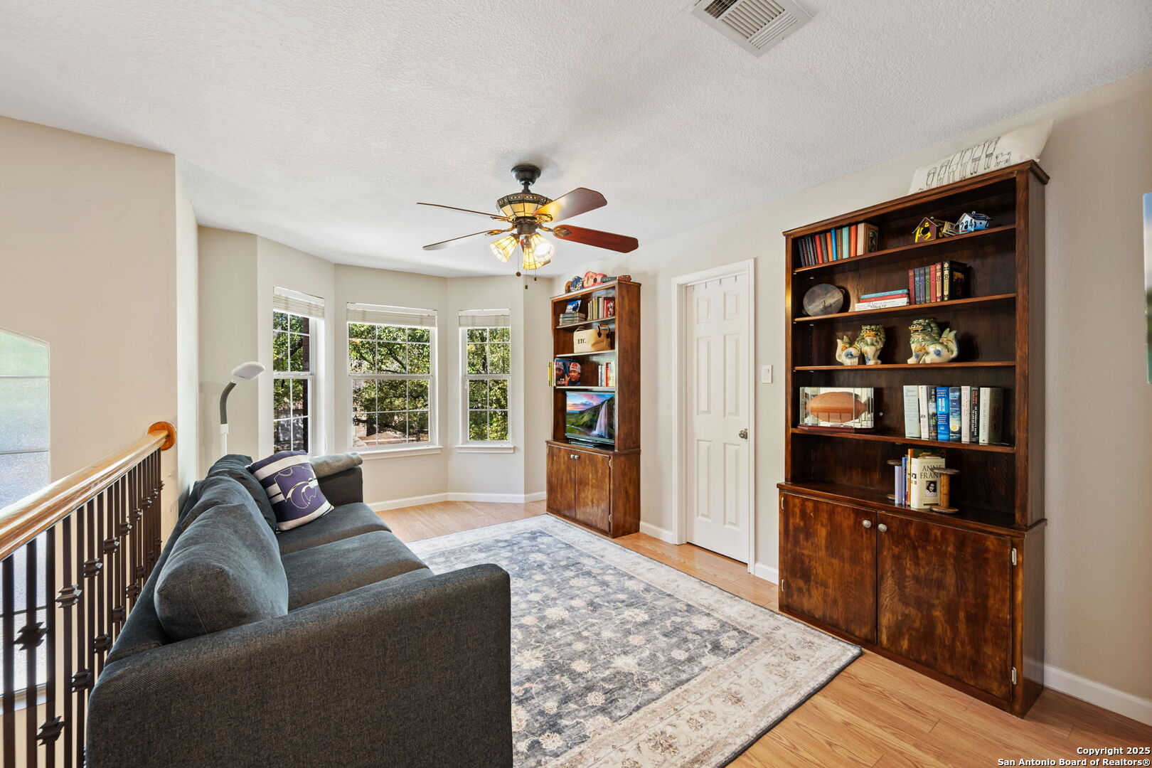 Welcome to this beautifully designed 3-bedroom home, perfectly blending comfort, functionality, and tranquility. Tucked in a peaceful setting with no backyard neighbors, this property offers rare privacy and serene views, ideal for relaxing or entertaining. Downstairs, you'll find beautiful stained concrete floors that add both warmth and durability to the main living areas. The living room features a cozy fireplace, creating a welcoming focal point ideal for relaxing evenings. The kitchen is both stylish and practical, featuring stainless steel appliances, a sleek subway tile backsplash, an island, and a large walk-in pantry for all your storage needs. A convenient utility room adds even more functionality. Adjacent to the kitchen is a charming breakfast area with big windows that overlook the peaceful backyard-a lovely spot to start your day and enjoy your morning coffee while taking in the private views. Step outside to the spacious deck, ideal for outdoor dining, lounging, or entertaining! BUT WAIT there's more! This home may look like a two car garage from the outside but don't be fooled! The oversized tandem garage, featuring a mini split system-making it the perfect year-round space for a home gym, workshop, or hobby area. Whether you're lifting weights, crafting, or building, you'll love the flexibility and comfort of this bonus space. Upstairs, you'll find an oversized primary suite that features an additional room perfect for a home office or nursery! The primary bathroom is complete with dual vanities, a luxurious walk-in shower, a soaking tub, and ample closet space. This home is a rare find that seamlessly blends comfort, mature trees, privacy, and versatility located in the highly desirable Shavano Forest!