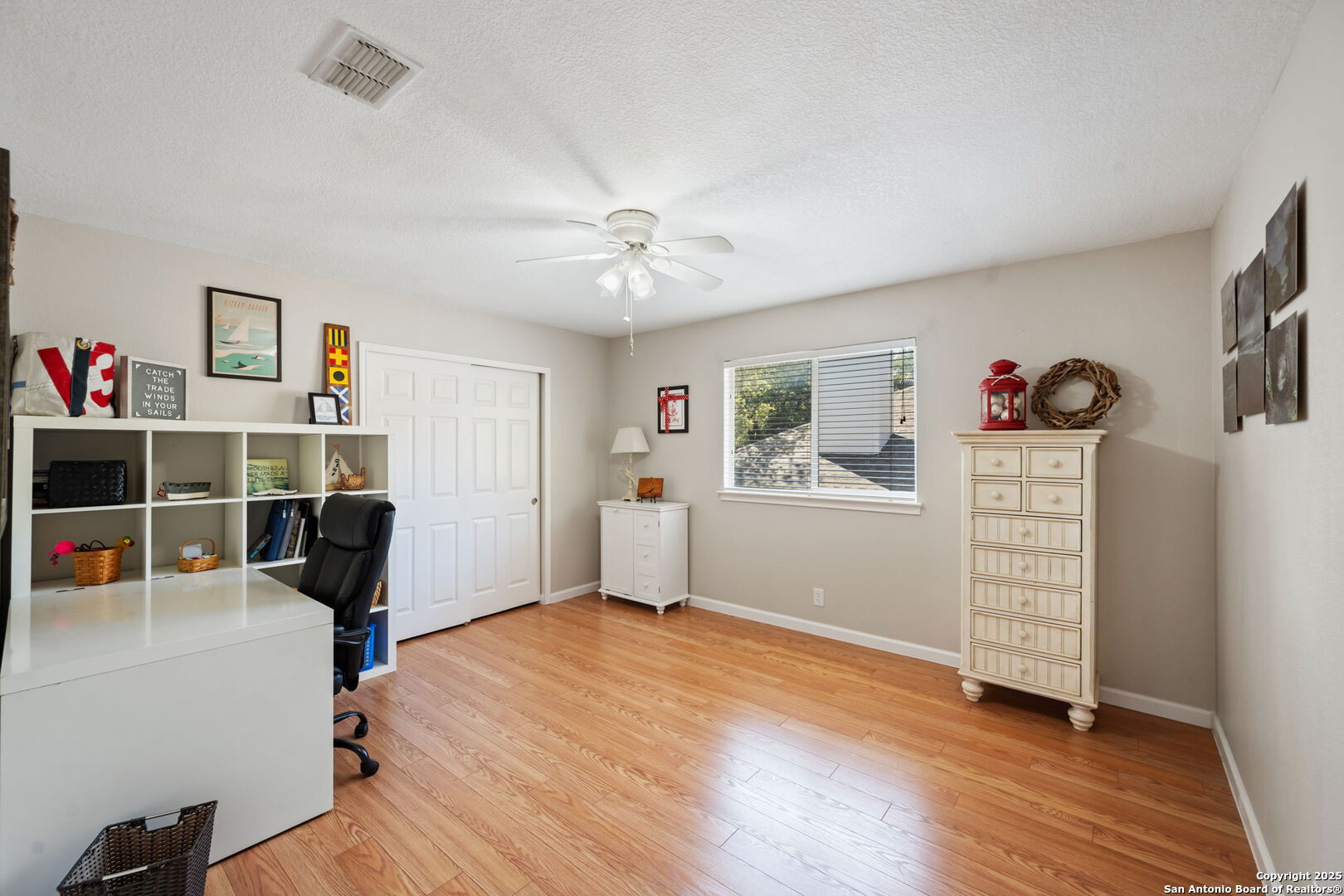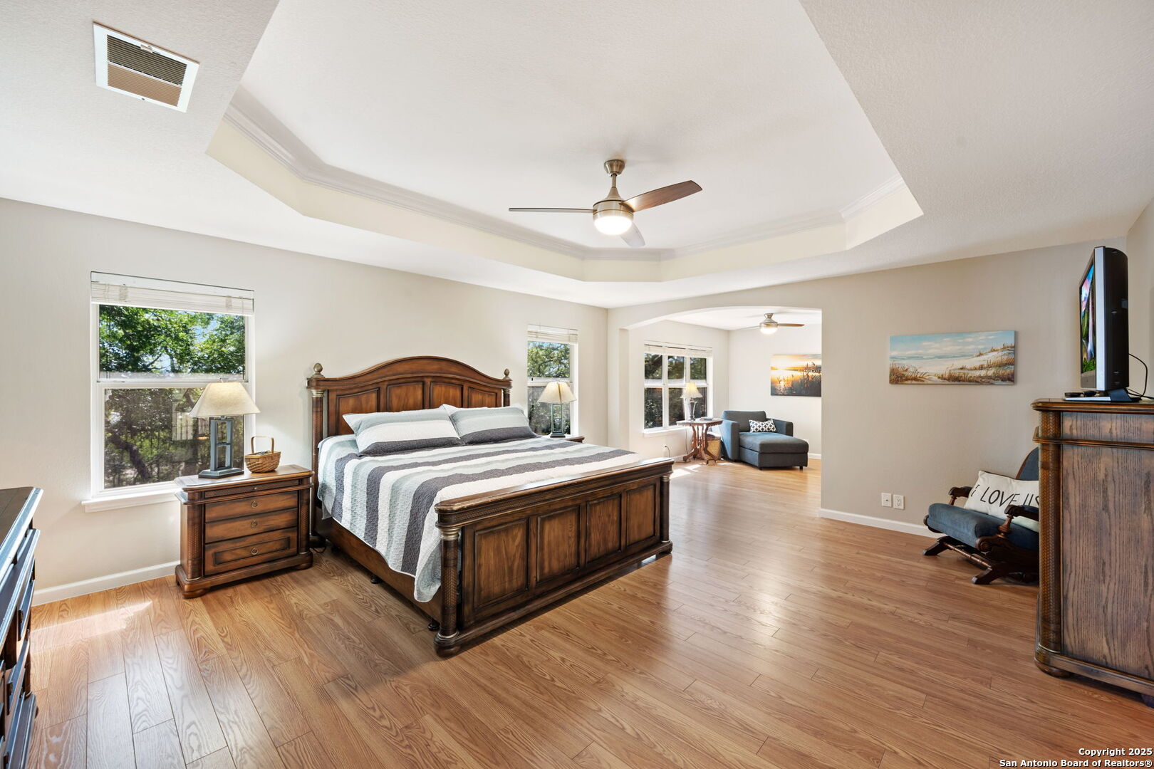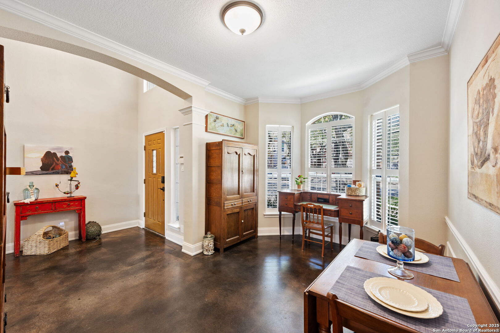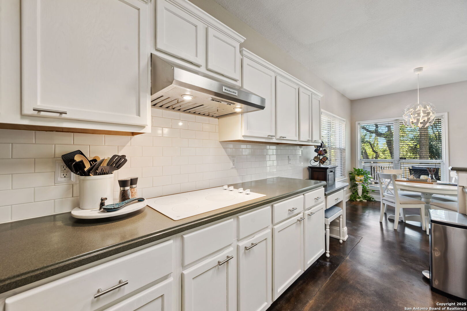 Welcome to this beautifully designed 3-bedroom home, perfectly blending comfort, functionality, and tranquility. Tucked in a peaceful setting with no backyard neighbors, this property offers rare privacy and serene views, ideal for relaxing or entertaining. Downstairs, you'll find beautiful stained concrete floors that add both warmth and durability to the main living areas. The living room features a cozy fireplace, creating a welcoming focal point ideal for relaxing evenings. The kitchen is both stylish and practical, featuring stainless steel appliances, a sleek subway tile backsplash, an island, and a large walk-in pantry for all your storage needs. A convenient utility room adds even more functionality. Adjacent to the kitchen is a charming breakfast area with big windows that overlook the peaceful backyard-a lovely spot to start your day and enjoy your morning coffee while taking in the private views. Step outside to the spacious deck, ideal for outdoor dining, lounging, or entertaining! BUT WAIT there's more! This home may look like a two car garage from the outside but don't be fooled! The oversized tandem garage, featuring a mini split system-making it the perfect year-round space for a home gym, workshop, or hobby area. Whether you're lifting weights, crafting, or building, you'll love the flexibility and comfort of this bonus space. Upstairs, you'll find an oversized primary suite that features an additional room perfect for a home office or nursery! The primary bathroom is complete with dual vanities, a luxurious walk-in shower, a soaking tub, and ample closet space. This home is a rare find that seamlessly blends comfort, mature trees, privacy, and versatility located in the highly desirable Shavano Forest!