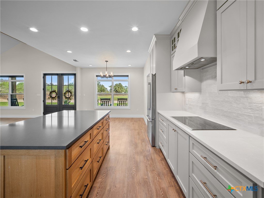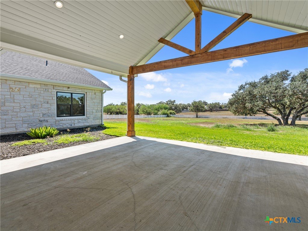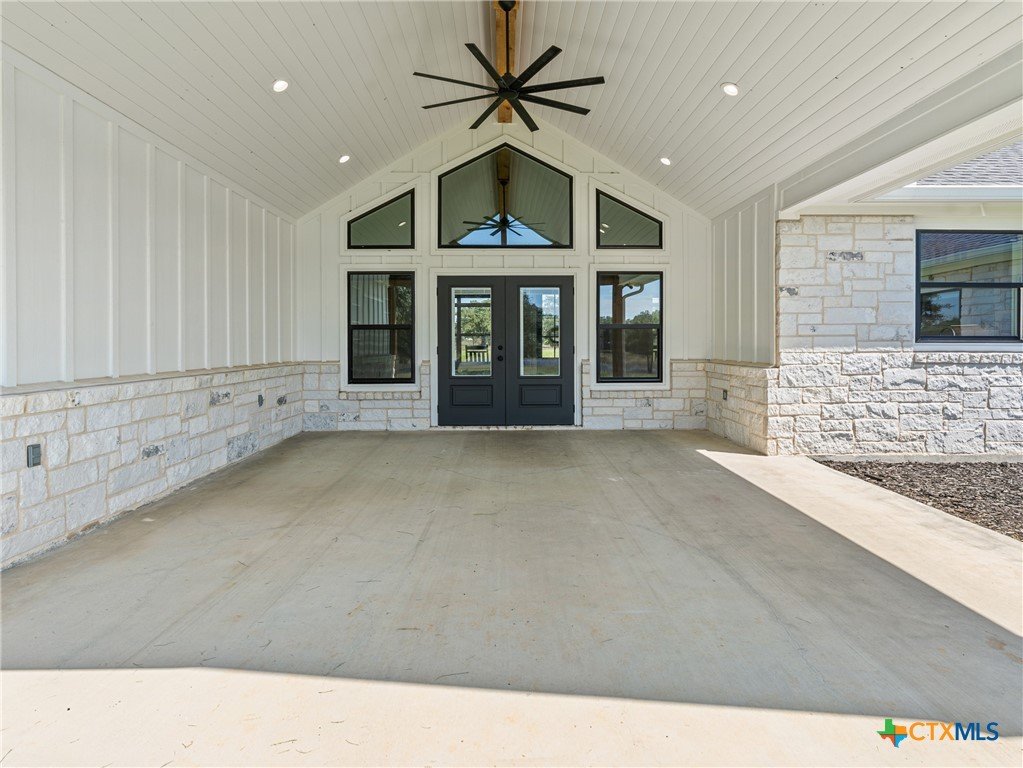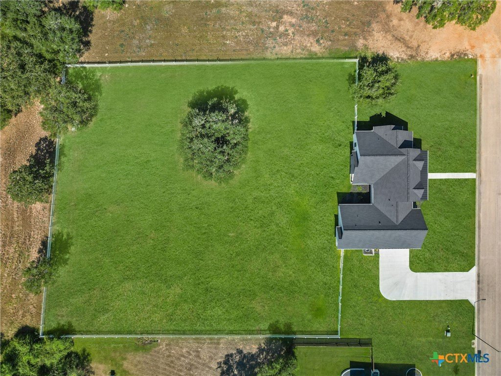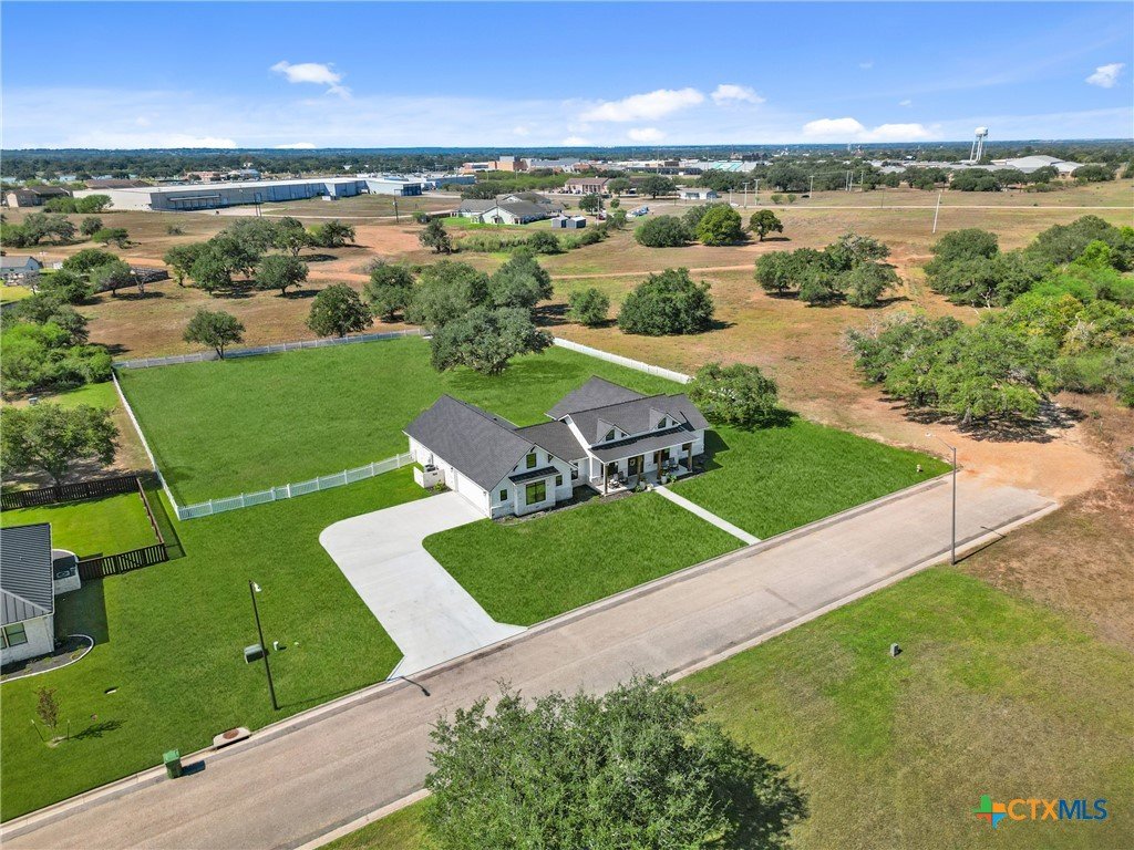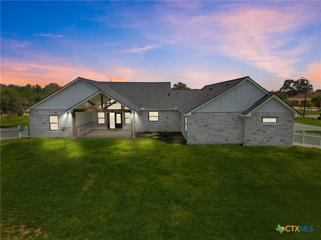 Luxury Living in Pebble Ridge – Double Lot with Oaks & Country Views. Immaculate board and batten & cream limestone home on a rare double lot, surrounded by stately live oaks and peaceful country views. Located on a quiet dead-end road with no neighbors across and city property behind, this property offers unmatched privacy and charm. White picket fencing, mature trees, and a welcoming covered porch create stunning curb appeal. Inside, soaring 10’ ceilings, French doors, and custom finishes elevate every space. The chef’s kitchen boasts Bosch & LG stainless appliances, quartz countertops, custom cabinetry, open shelving, vented hood, and a designer backsplash. Spacious Butler pantry with ample storage. The owner’s suite is a true retreat with spa-like bath featuring a freestanding tub, walk-in shower, double vanity, and expansive closet. Secondary bedrooms enjoy a Jack & Jill bath with upscale finishes. Additional highlights include an office nook, mudroom, ½ bath, Norman window coverings, and a 2-car side-entry garage. City utilities, trash service, and just 2 miles from schools.