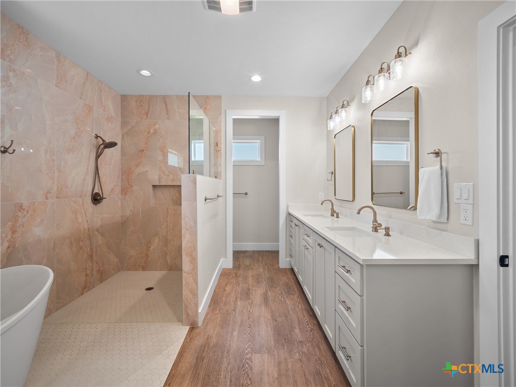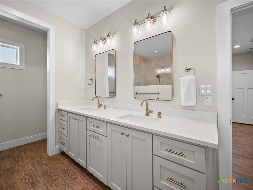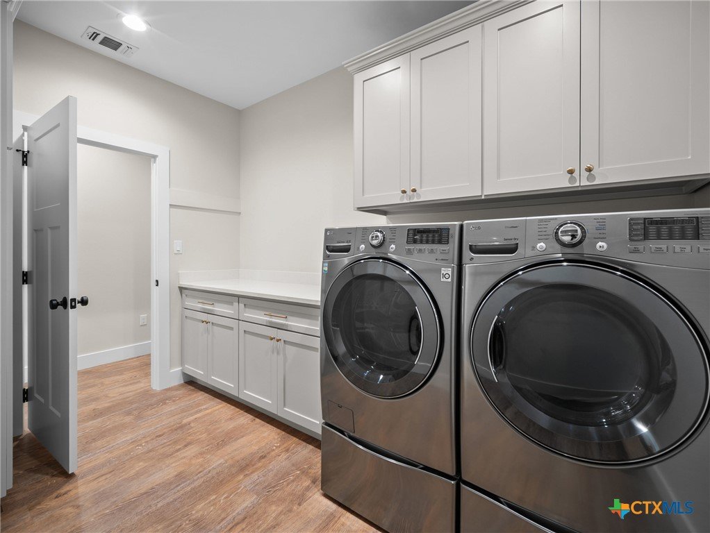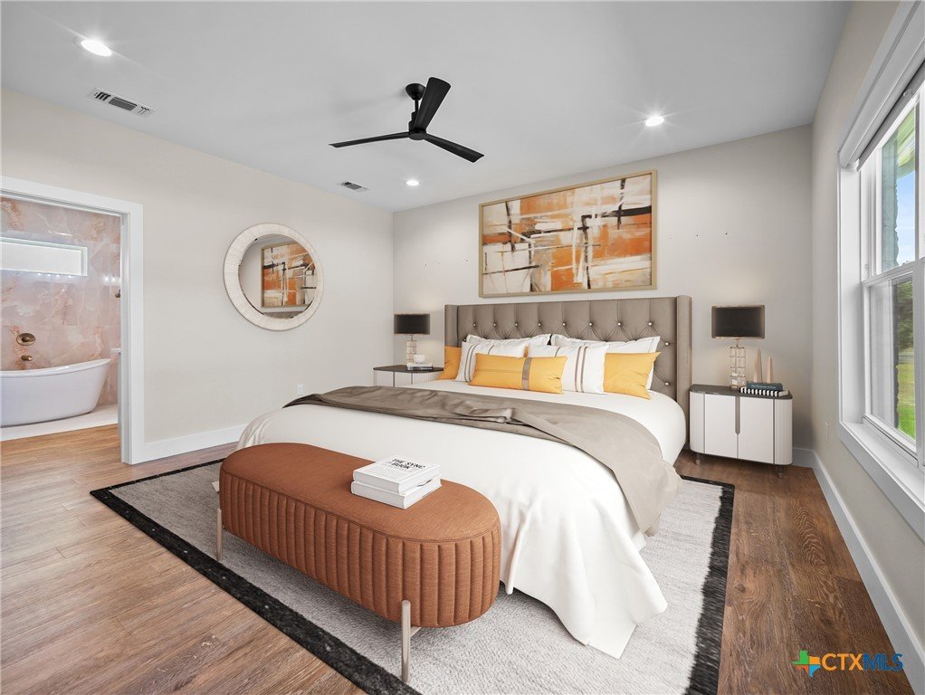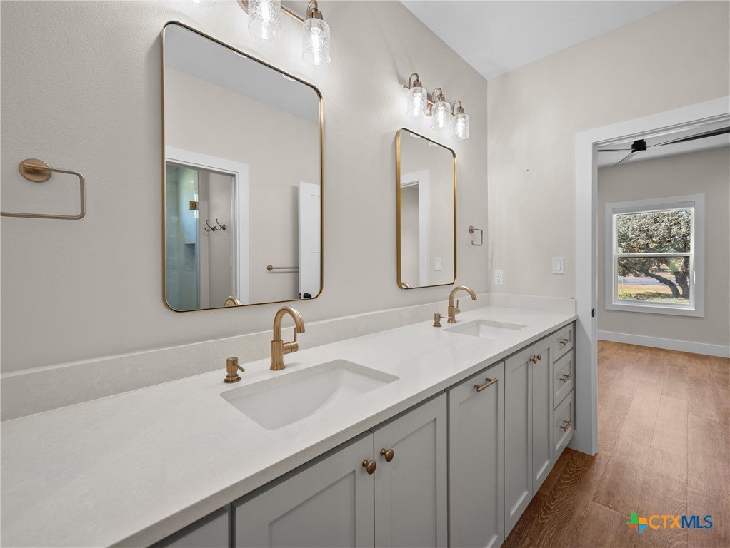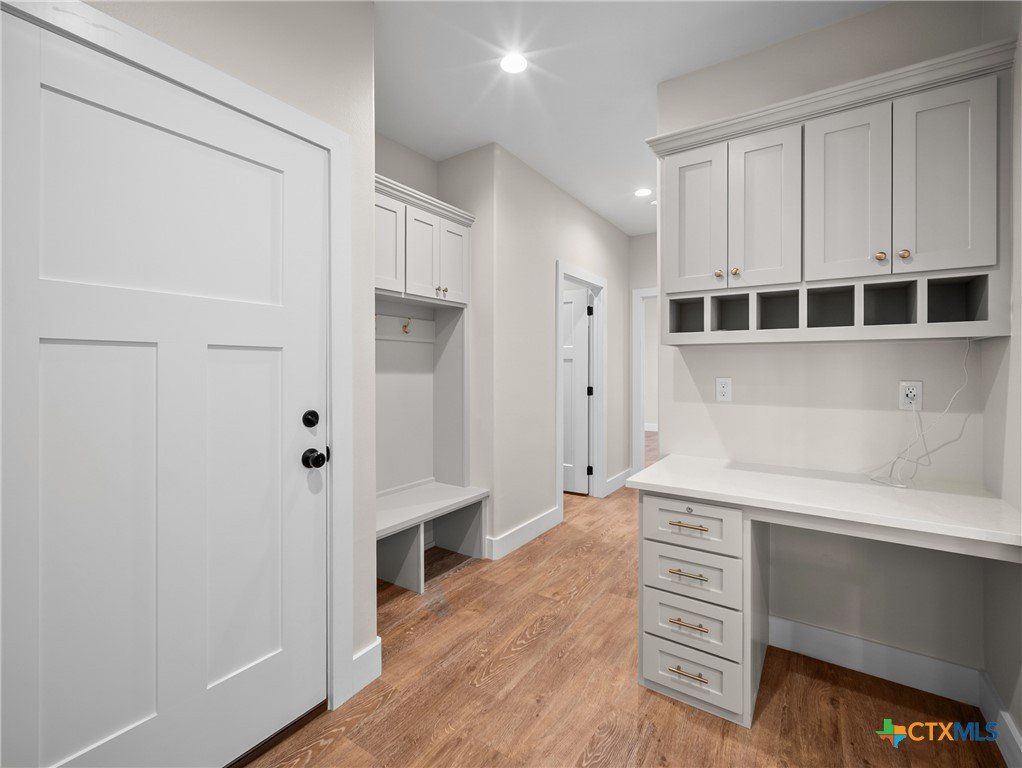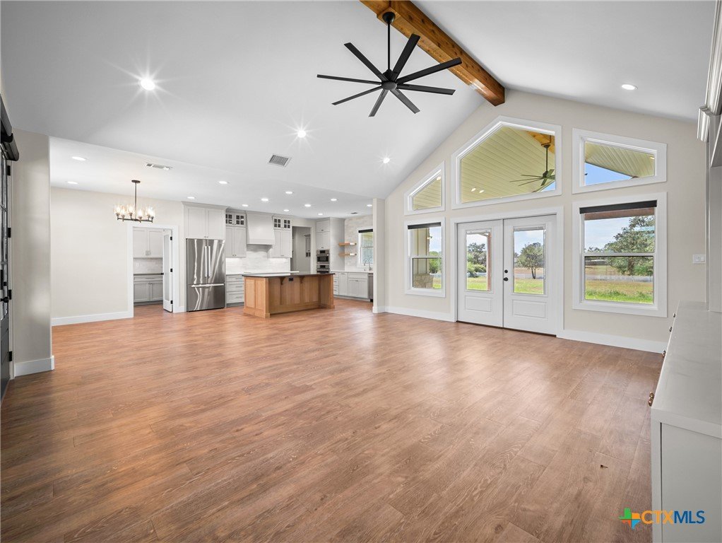 Luxury Living in Pebble Ridge – Double Lot with Oaks & Country Views. Immaculate board and batten & cream limestone home on a rare double lot, surrounded by stately live oaks and peaceful country views. Located on a quiet dead-end road with no neighbors across and city property behind, this property offers unmatched privacy and charm. White picket fencing, mature trees, and a welcoming covered porch create stunning curb appeal. Inside, soaring 10’ ceilings, French doors, and custom finishes elevate every space. The chef’s kitchen boasts Bosch & LG stainless appliances, quartz countertops, custom cabinetry, open shelving, vented hood, and a designer backsplash. Spacious Butler pantry with ample storage. The owner’s suite is a true retreat with spa-like bath featuring a freestanding tub, walk-in shower, double vanity, and expansive closet. Secondary bedrooms enjoy a Jack & Jill bath with upscale finishes. Additional highlights include an office nook, mudroom, ½ bath, Norman window coverings, and a 2-car side-entry garage. City utilities, trash service, and just 2 miles from schools.