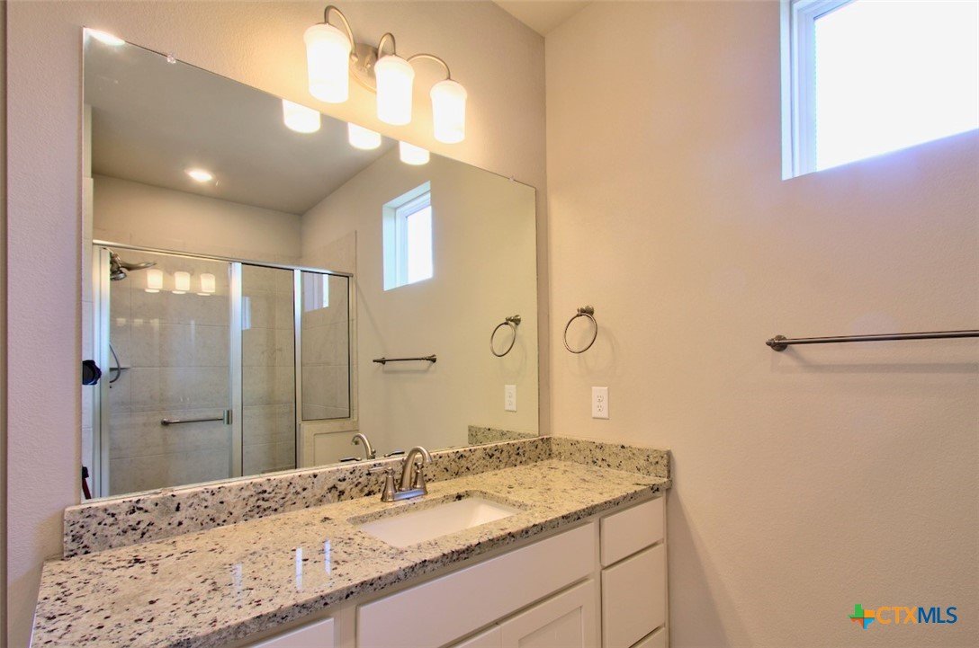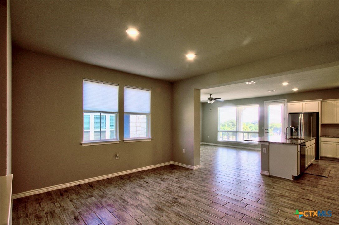 Welcome to the Trevino Plan in the vibrant 55+ community of Kissing Tree in San Marcos! This charming home blends comfort, style, and a lifestyle that’s second to none. From the moment you step inside, you’ll notice the thoughtful design—an open-concept living and dining area that flows into a stunning island kitchen. With gas cooking, a spacious walk-in pantry, and no carpet, this home was built for easy living and entertaining. The large primary suite features a roomy walk-in closet and a sleek walk-in shower, providing a retreat you’ll love coming home to. Step outside to the extended covered patio, perfect for morning coffee, evening wine, or hosting friends. With no steps and low-maintenance finishes, this home offers the “right-size” lifestyle you’ve been searching for. The oversized 2-car garage plus golf cart space is a bonus, especially since many neighbors use carts to cruise the community, meet friends, or head to activities. The real magic of Kissing Tree lies in the community itself. Life here is built around fun, friendship, and staying active. At the heart of it all is The Mix, a gathering place where residents connect. Whether it’s joining a club, attending a class, or meeting friends for coffee, you’ll always find something to do. For outdoor enthusiasts, there’s an 18-hole golf course, pickleball and bocce ball courts, a resort-style pool, and miles of trails. For those who love social time, the Biergarten, coffee bar, live entertainment, and bingo bring neighbors together in a unique way. The lifestyle is all about variety—you can be as active or as relaxed as you want. From fitness classes and workshops to happy hours and guest entertainers, there’s always something happening. With such a welcoming community, neighbors quickly become friends, making Kissing Tree one of the most rewarding places to call home. See why this Trevino Plan isn’t just a house, but the start of a new lifestyle full of energy, connection, and fun.