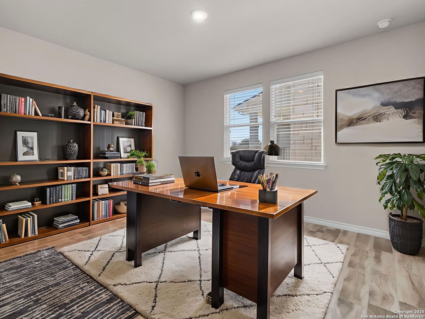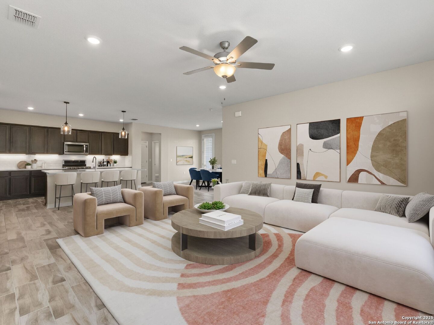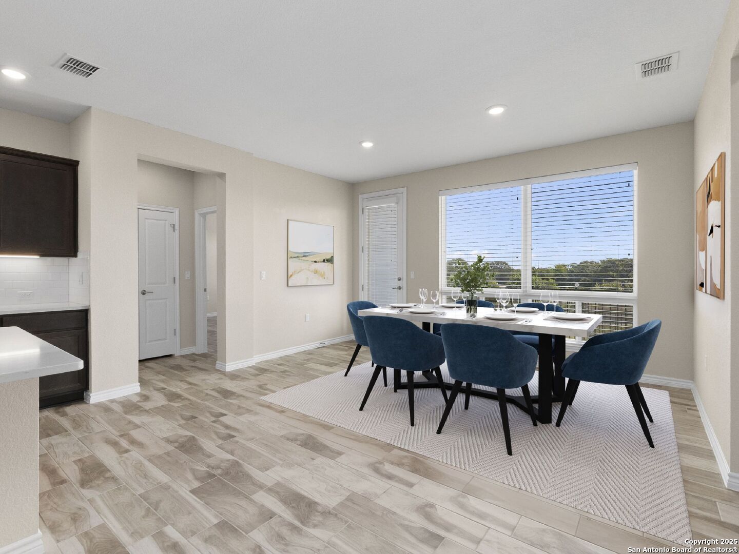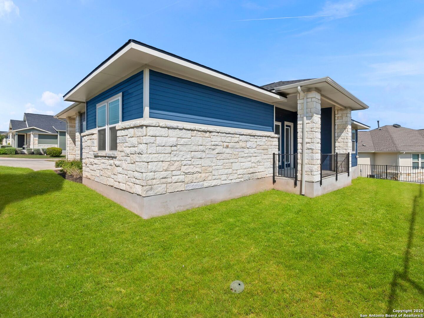 Nestled in Kissing Tree, this inviting cottage blends charm with thoughtful design. The Burke floor plan features three bedrooms and two-and-a-half baths, arranged with separation between each room to give everyone their own retreat. At the heart of the home, the island kitchen shines with abundant storage, sleek granite counters, and warm cabinetry, all bathed in natural light. Just steps away, the dining and living areas create a spacious hub for entertaining or quiet evenings in. A true highlight is the oversized laundry room showcasing one of the most generous layouts offered in the community. Outside your door, enjoy morning walks shaded by stately oaks, afternoons at the pickleball courts, or a quick stroll to the Dogwoods dog park and Art Studio. More than just a house, this home offers the perfect balance of comfort, convenience, and community.