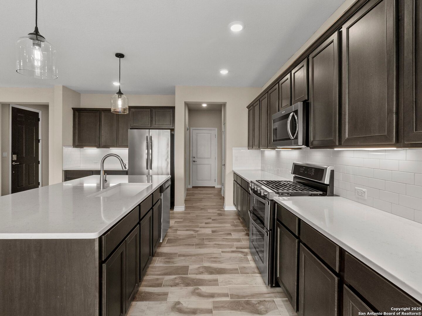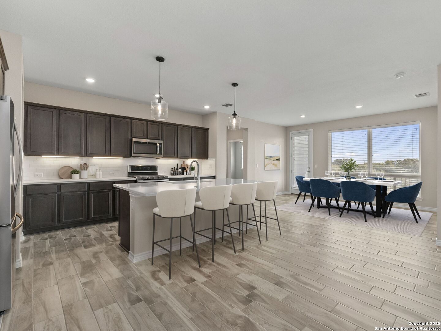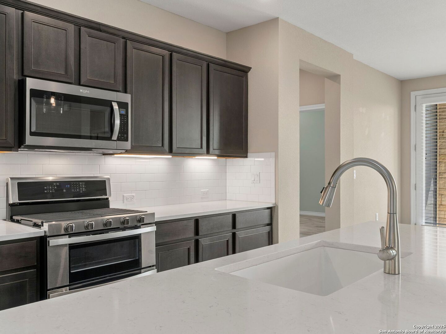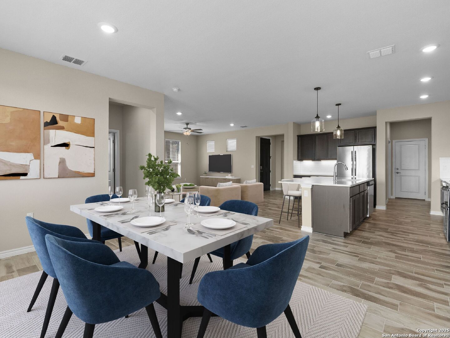 Nestled in Kissing Tree, this inviting cottage blends charm with thoughtful design. The Burke floor plan features three bedrooms and two-and-a-half baths, arranged with separation between each room to give everyone their own retreat. At the heart of the home, the island kitchen shines with abundant storage, sleek granite counters, and warm cabinetry, all bathed in natural light. Just steps away, the dining and living areas create a spacious hub for entertaining or quiet evenings in. A true highlight is the oversized laundry room showcasing one of the most generous layouts offered in the community. Outside your door, enjoy morning walks shaded by stately oaks, afternoons at the pickleball courts, or a quick stroll to the Dogwoods dog park and Art Studio. More than just a house, this home offers the perfect balance of comfort, convenience, and community.