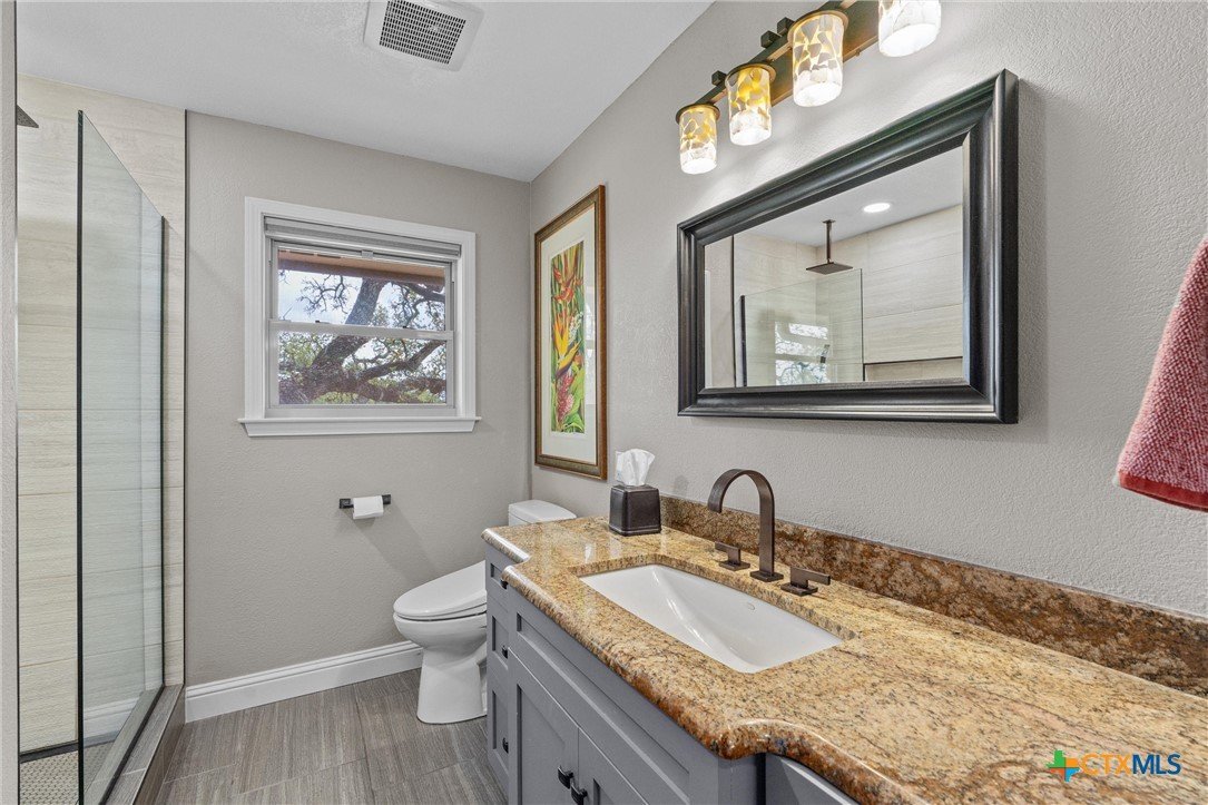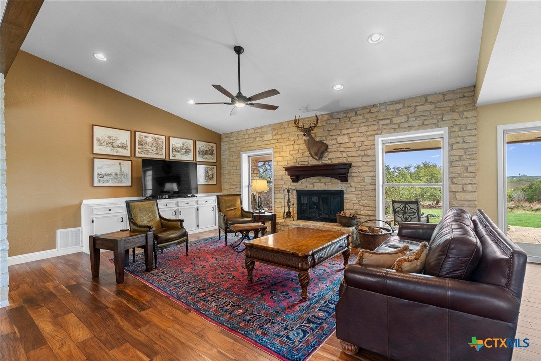 Looking for privacy, irreplaceable views, and an unbeatable Georgetown location? This beautiful home on an expansive 3.39 lot checks every box. Set in an established neighborhood with no HOA, this charming home located on a quiet cul-de-sac offers incredible space, mature trees, and a truly breathtaking and rare backdrop as it backs to the San Gabriel. With endless potential, the expansive backyard is ready for whatever you envision—whether it’s a casita, picnic area, garden, workshop, or open space to roam and raise animals. Take in stunning Hill Country views from the large covered patio, or follow the extended stonework patio and walkway to the fenced quarter-Olympic-sized lap pool and hot tub. Inside, an open floor plan filled with natural light highlights gorgeous wood floors, while the spacious living area—anchored by a beautiful stone fireplace & serene views of the backyard—flows seamlessly into the dining area & kitchen, where you’ll find concrete countertops, beautiful light wood cabinetry with pullout drawers, stainless steel appliances, & a convenient pantry. The large primary suite offers an ensuite with dual vanities, a frameless walk-in glass shower, & a generously sized walk-in closet with custom built-ins. Two additional bedrooms provide flexibility for guests or a home office—each with its own closet, including one with built-in shelving—& share a full bath, along with a convenient half bath. A dedicated laundry room with built-in cabinetry & a nearby room ideal for additional storage adds everyday practicality. Complete with a spacious shed and electric dog fence, this property blends beauty, privacy, and endless potential. Located just minutes from downtown Georgetown, Wolf Ranch Shopping Center, HEB, Walmart, Lake Georgetown, hospitals, & countless shopping, dining, & recreation options, this home also offers easy access to I-35 & State Highway 29 for convenient commuting.